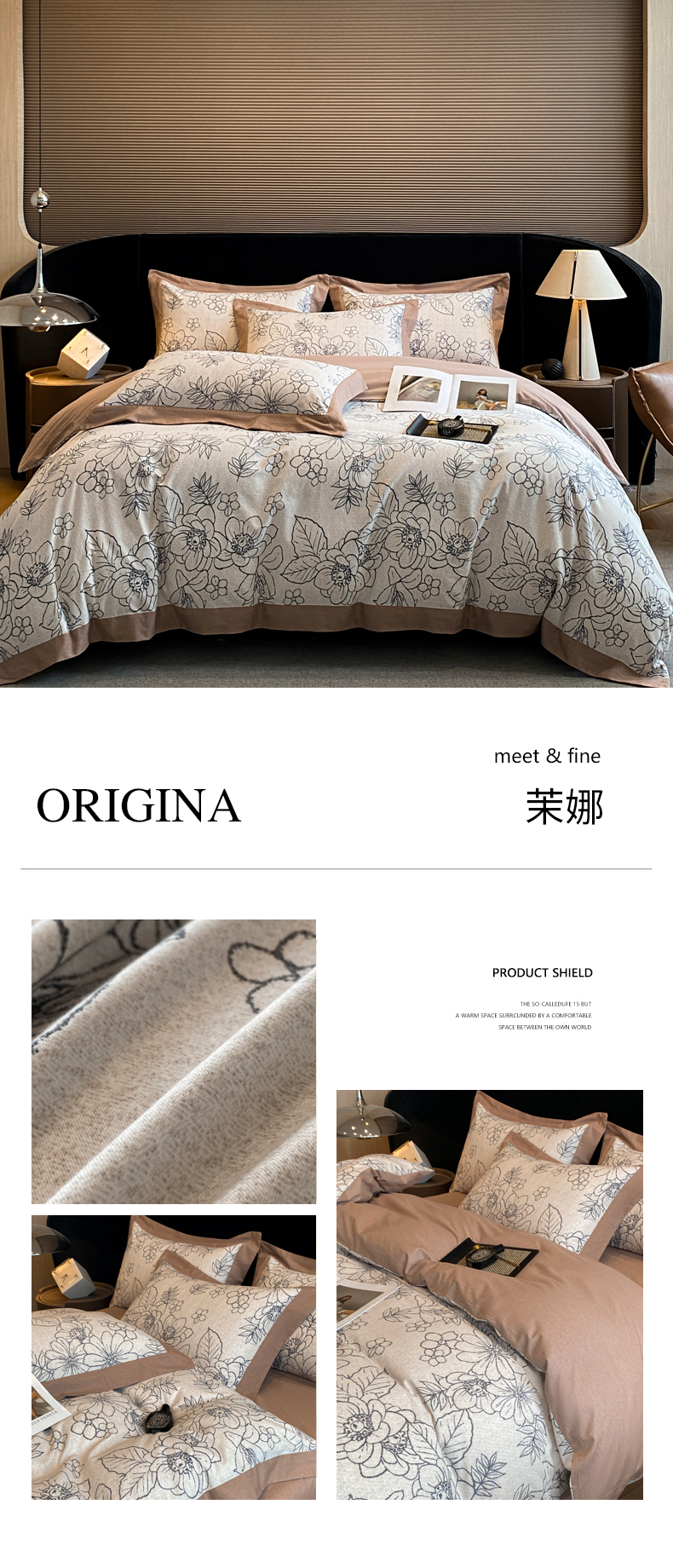 当前位置: 91家纺网 > 商品网购 > 床品套件 > 四件套 > 普通磨毛四件套 > 慕晨 2024新款A类全棉贡缎磨毛数码印花高级宽边简奢款中高端四件套直播爆款 茉娜