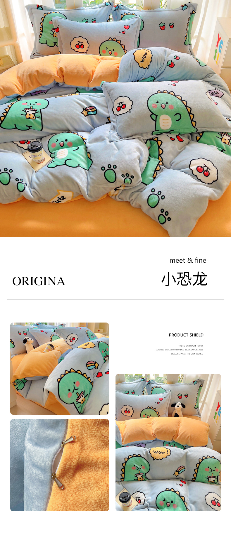 当前位置: 91家纺网 > 商品网购 > 床品套件 > 四件套 > 牛奶绒四件套 > 丝羽坊 2024新款加厚小清新牛奶绒印花四件套单被套床笠四件套-场景二 小恐龙