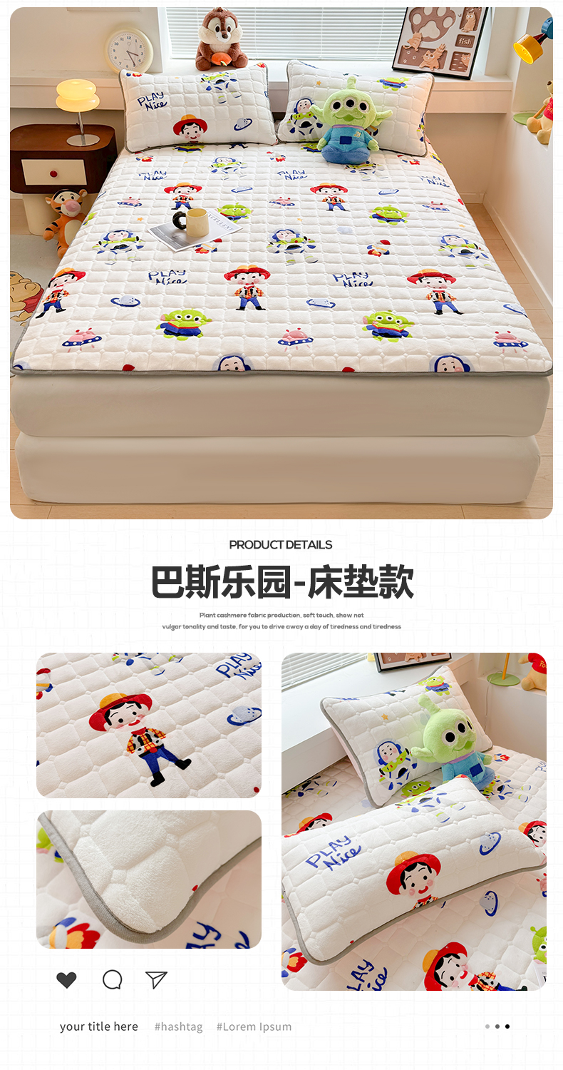 (总)迪梦思家纺 2025新款A类正版授权卡通印花水洗棉夹棉学生床护垫,爱心草莓能,比露比,冰雪艾莎,黛西女上,飞船巴斯,粉粉凯蒂,汉堡海绵,火箭奥特蓝,可爱玉桂狗,满天星玉桂狗,米奇妙妙屋,蜜罐小熊,暖心奇奇带带,苹果白雪,气球库洛米紫,贪吃库洛来,晚安帕恰狗,勇气奥特灰,云朵鸭鸭