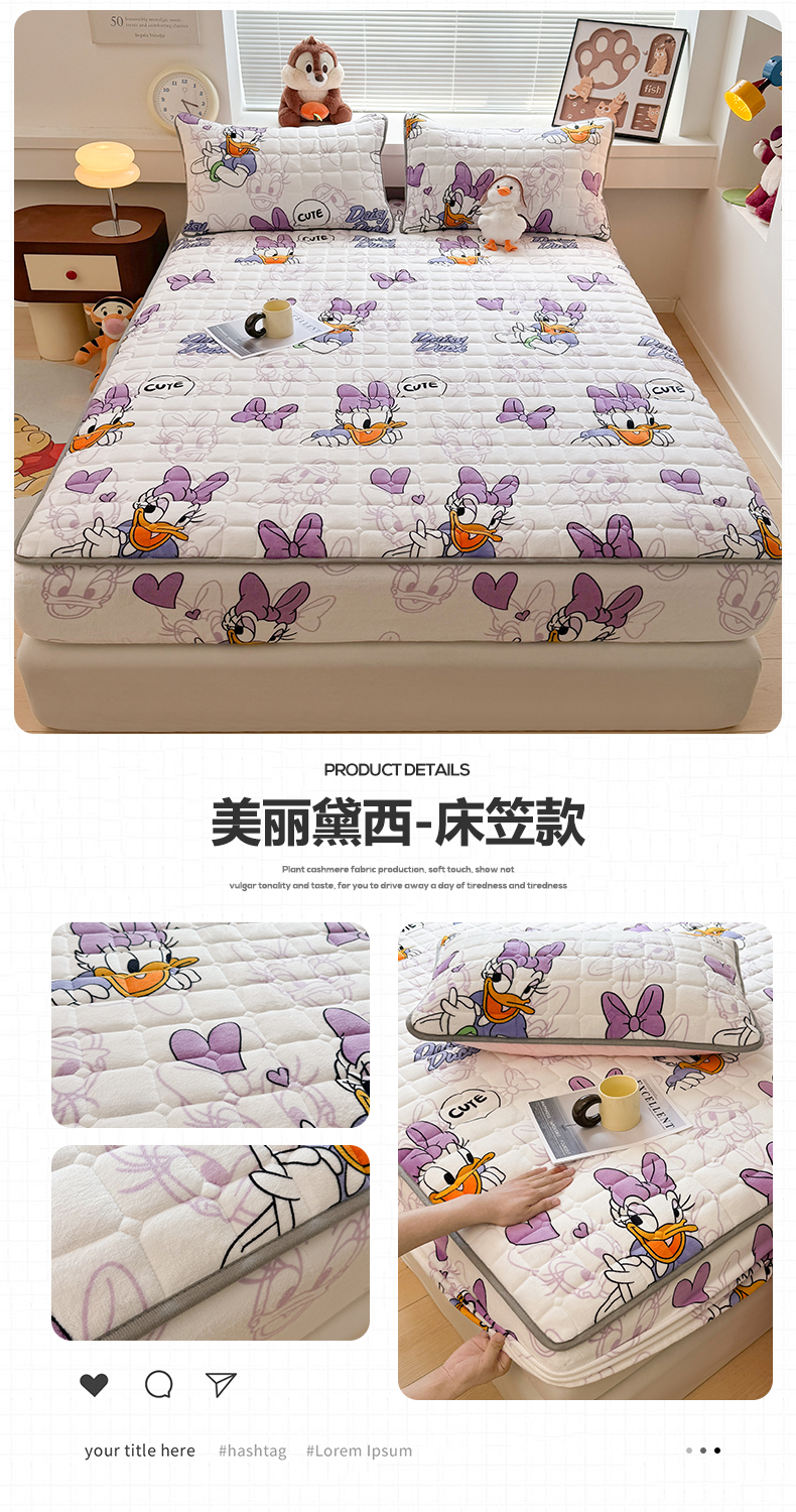 迪梦思 2024新款正版授权卡通牛奶绒床垫床护垫 学生床垫床笠 美丽黛西-床笠款