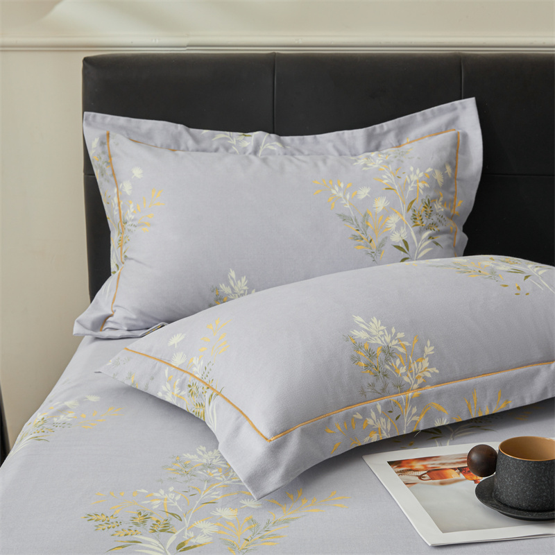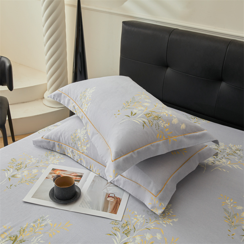 商品名称:2024新款纯棉加厚磨毛一字绣枕套一对 抒情花季-灰