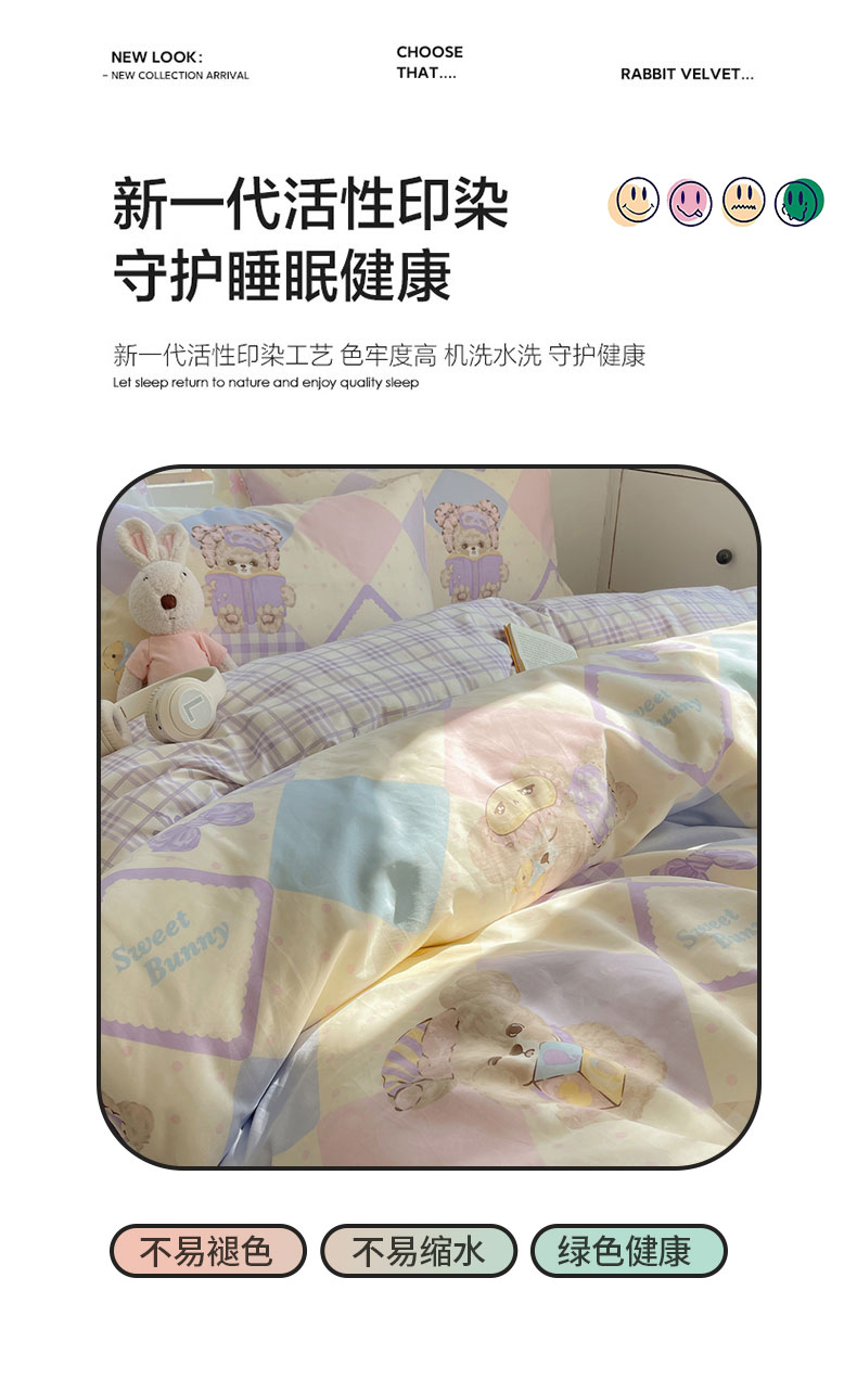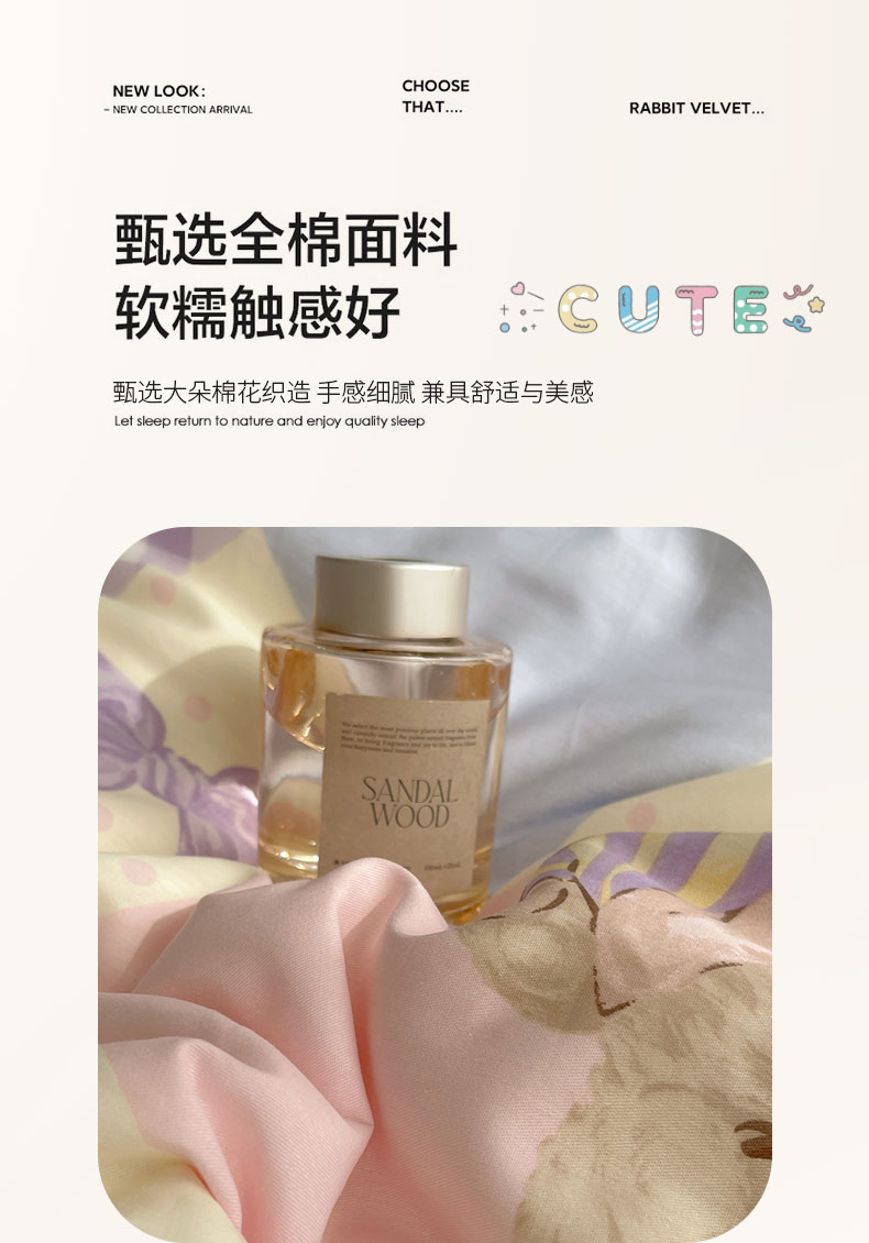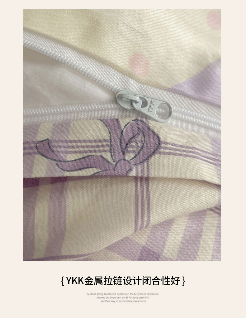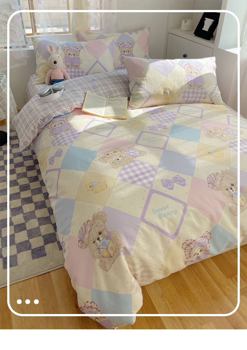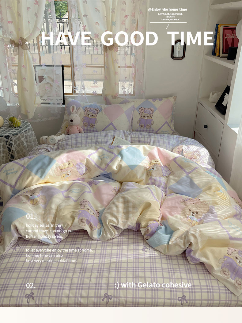商品名称:六巷胡同 2024新款40支全棉纯棉INS洛丽塔卡通甜美少女心系列四件套 紫色贪睡熊