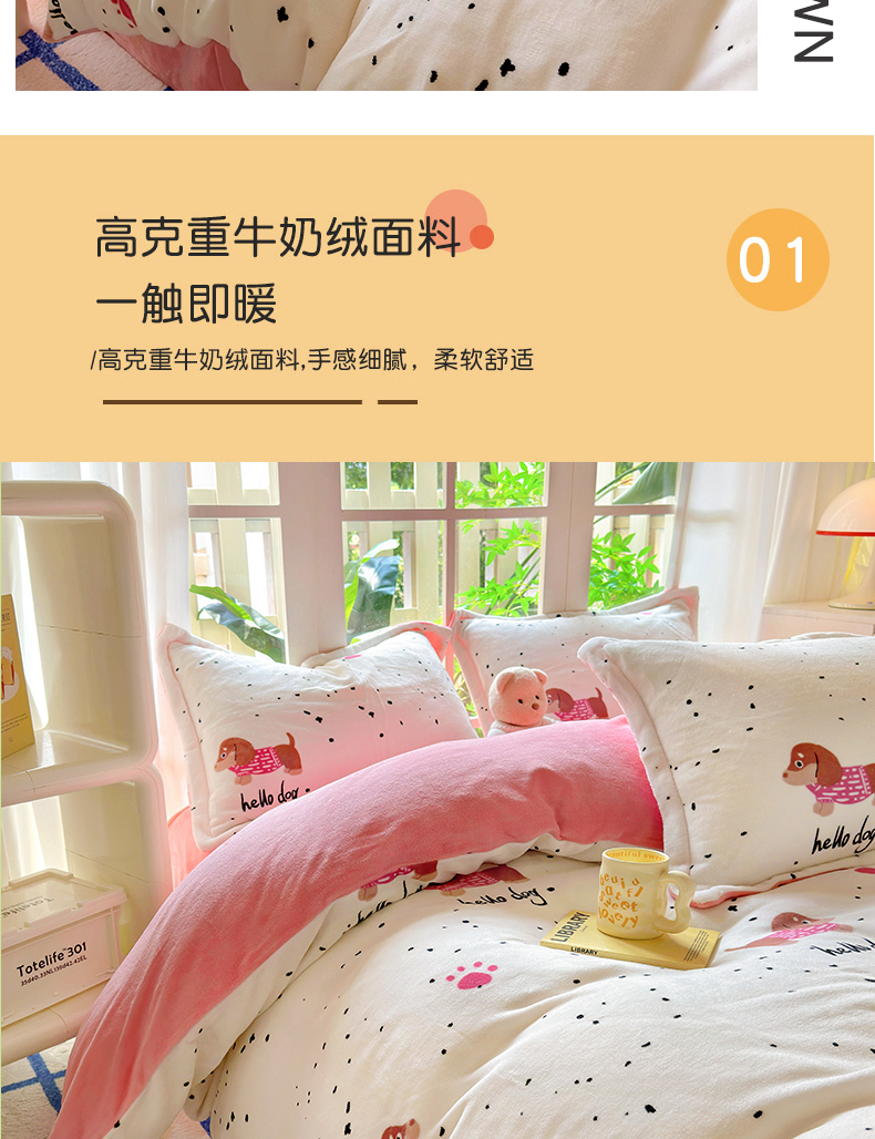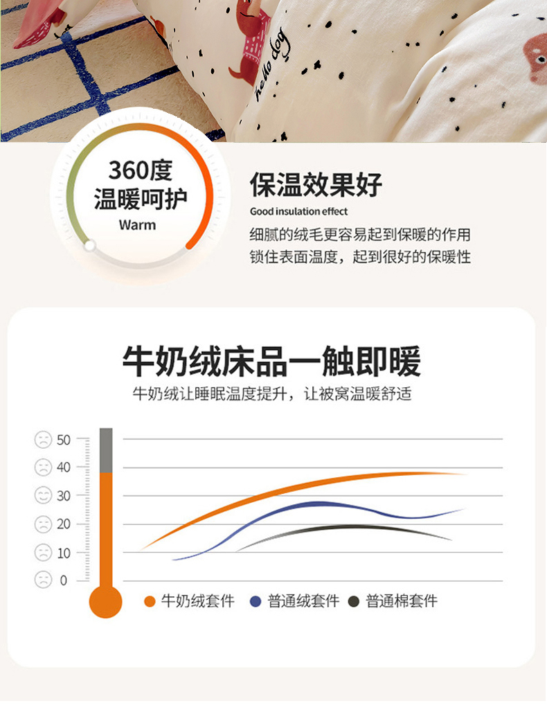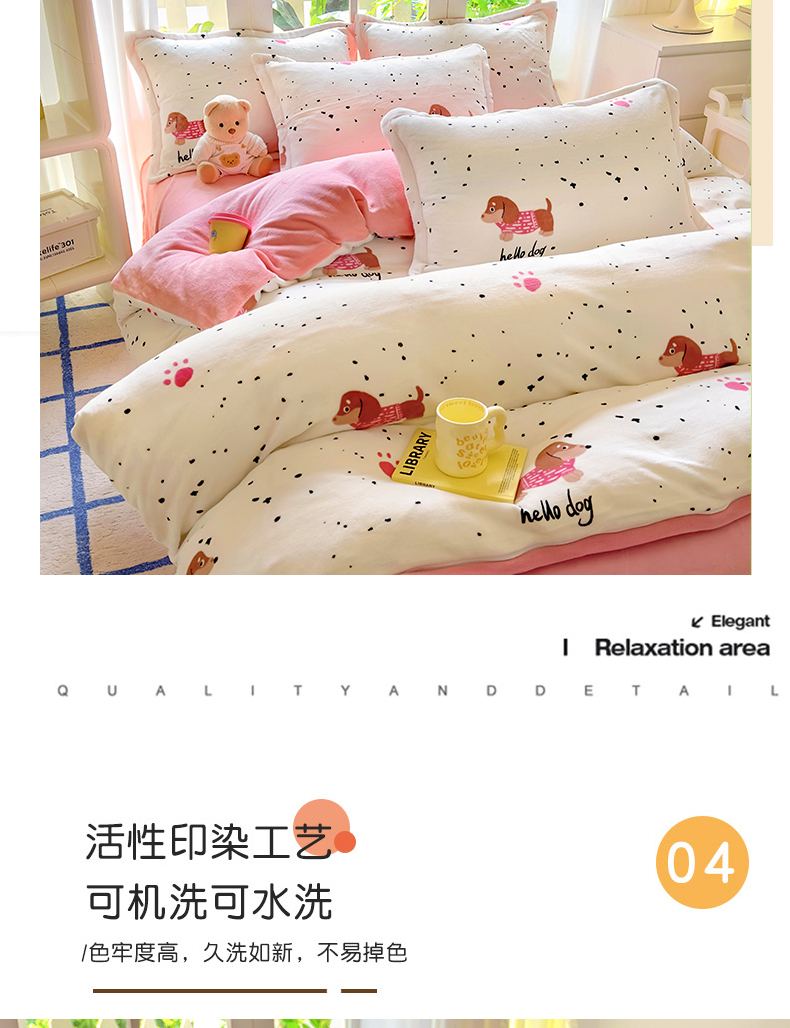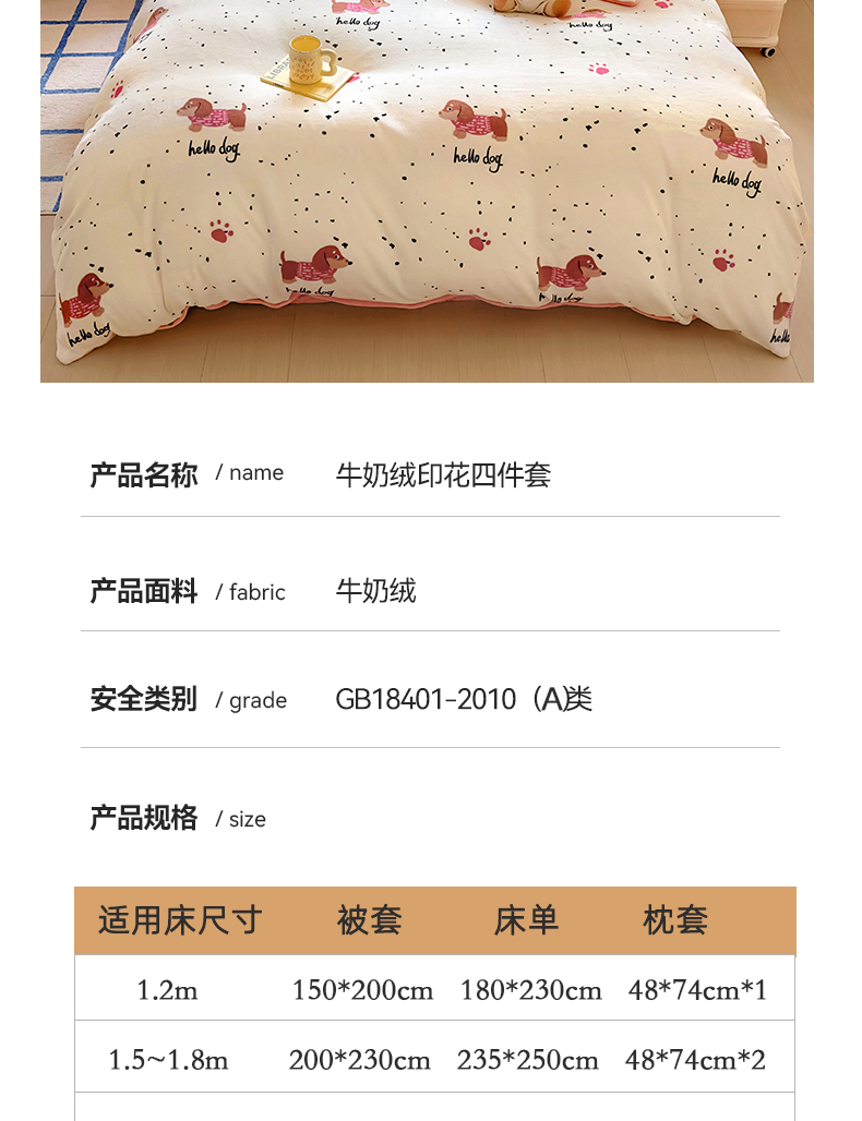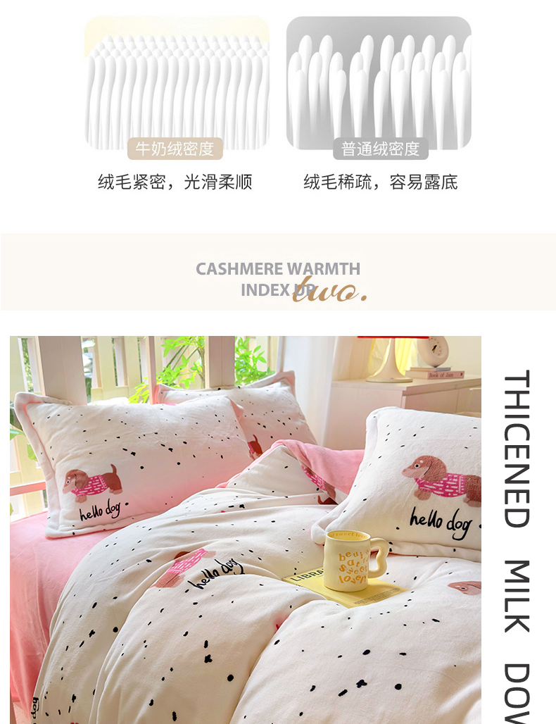 当前位置: 91家纺网 > 商品网购 > 床品套件 > 四件套 > 牛奶绒四件套 > 百寐 2024新款加厚A类牛奶绒印花卡通床单床笠四件套三件套 点点狗