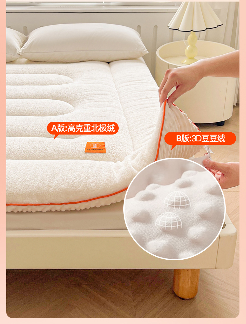 当前位置: 91家纺网 > 商品网购 > 床垫/床褥 > 普通床垫 > 2024新款加厚保暖北极绒加厚床褥床垫(背面豆豆绒)-大床图 北极绒床褥-米白