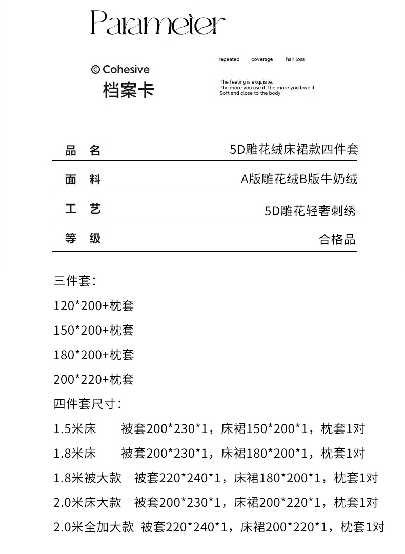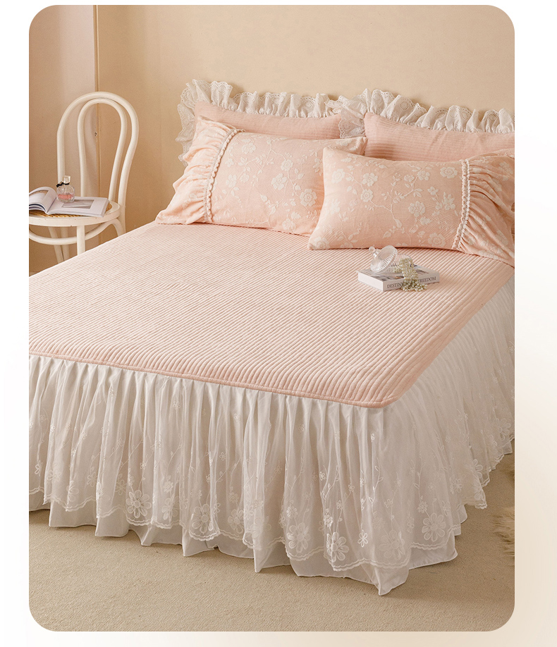 商品名称:胜权家纺 2024秋冬新款5D雕花着色牛奶绒法式奶油风夹棉床裙四件套 蜜粉