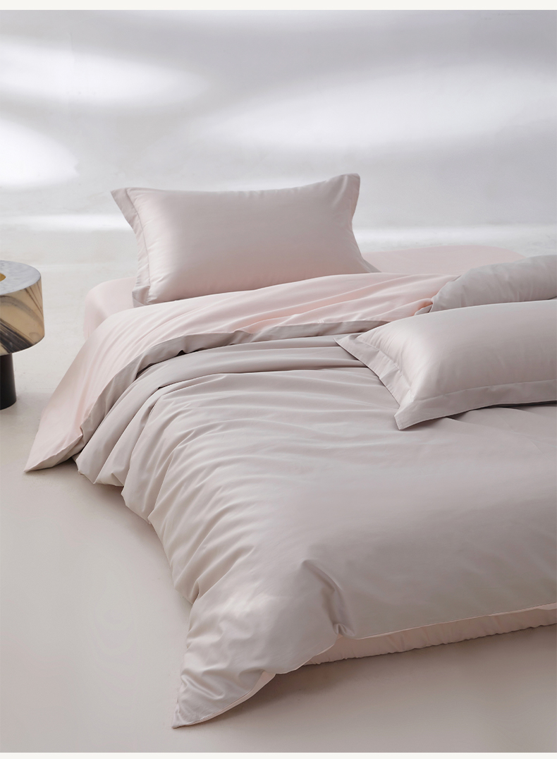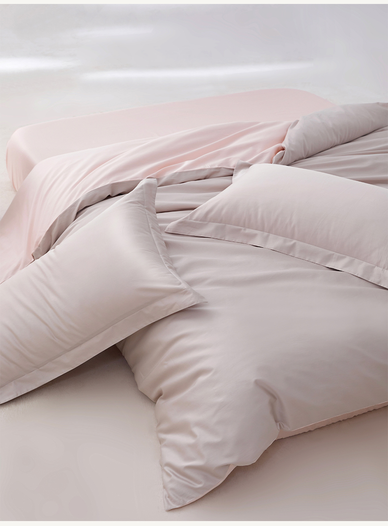 当前位置: 91家纺网 > 商品网购 > 床品套件 > 四件套 > 长绒棉四件套 > 轩和家居 2024新款简约纯色50s长绒棉贡缎四件套 迷雾灰+夏恋粉