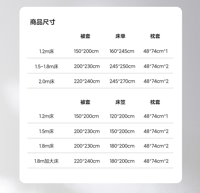 1.8m被套加大床笠款四件套 | ¥190.00 |