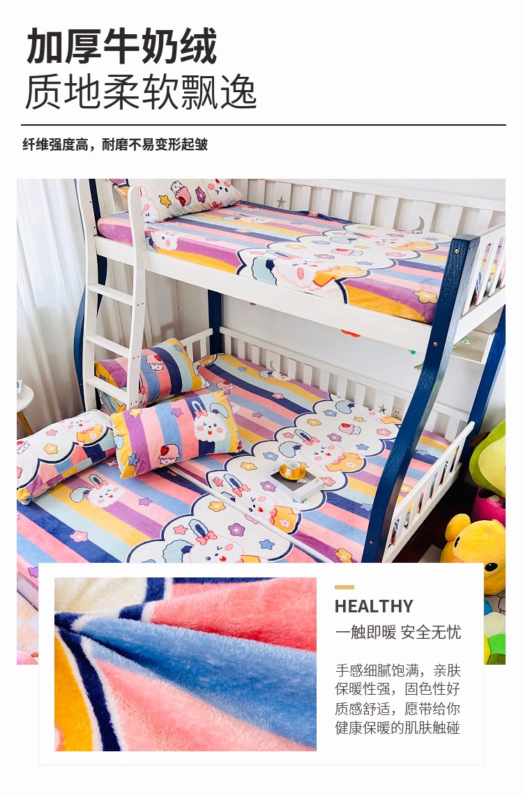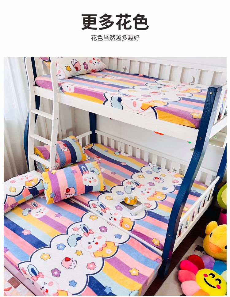 • 91家纺网 家纺一手货源 找家纺 小虾米 2024新款加厚上下床牛奶绒床笠款 彩虹兔