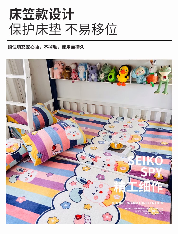 小虾米 2024新款加厚上下床牛奶绒床笠款 彩虹兔