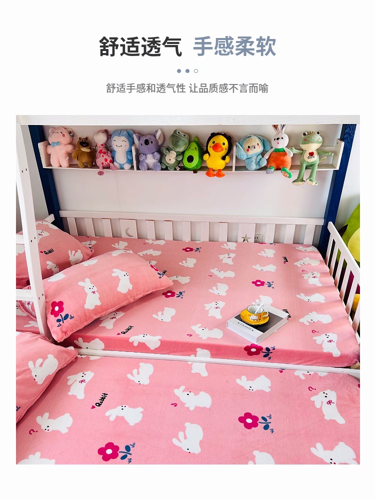 小虾米 2024新款加厚上下床牛奶绒床笠款 欢乐兔
