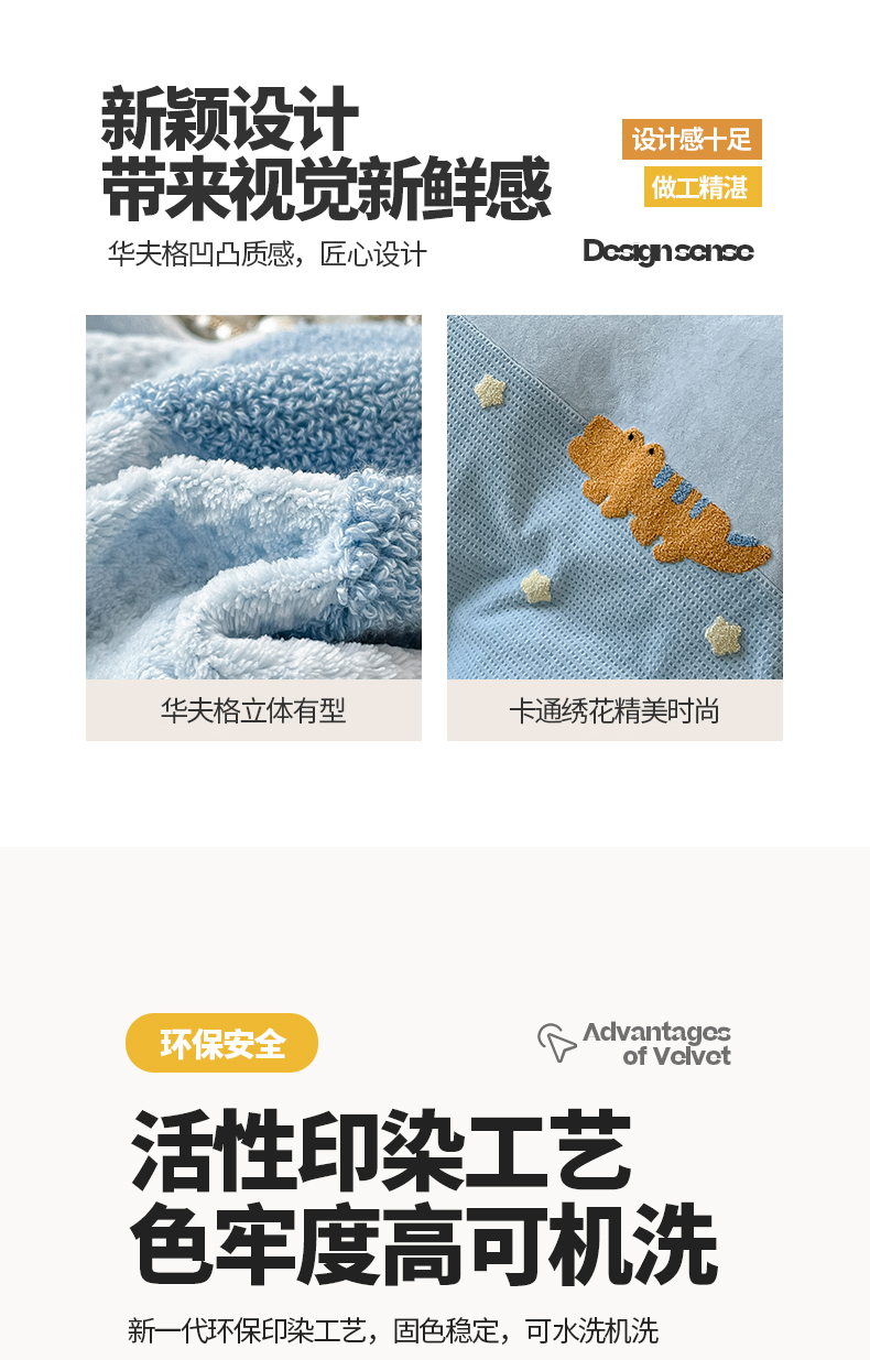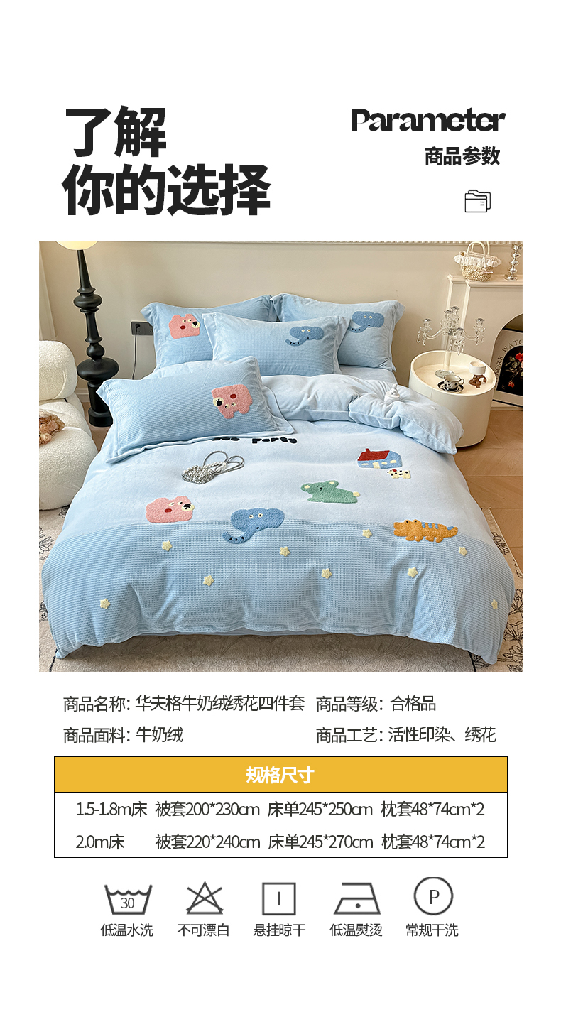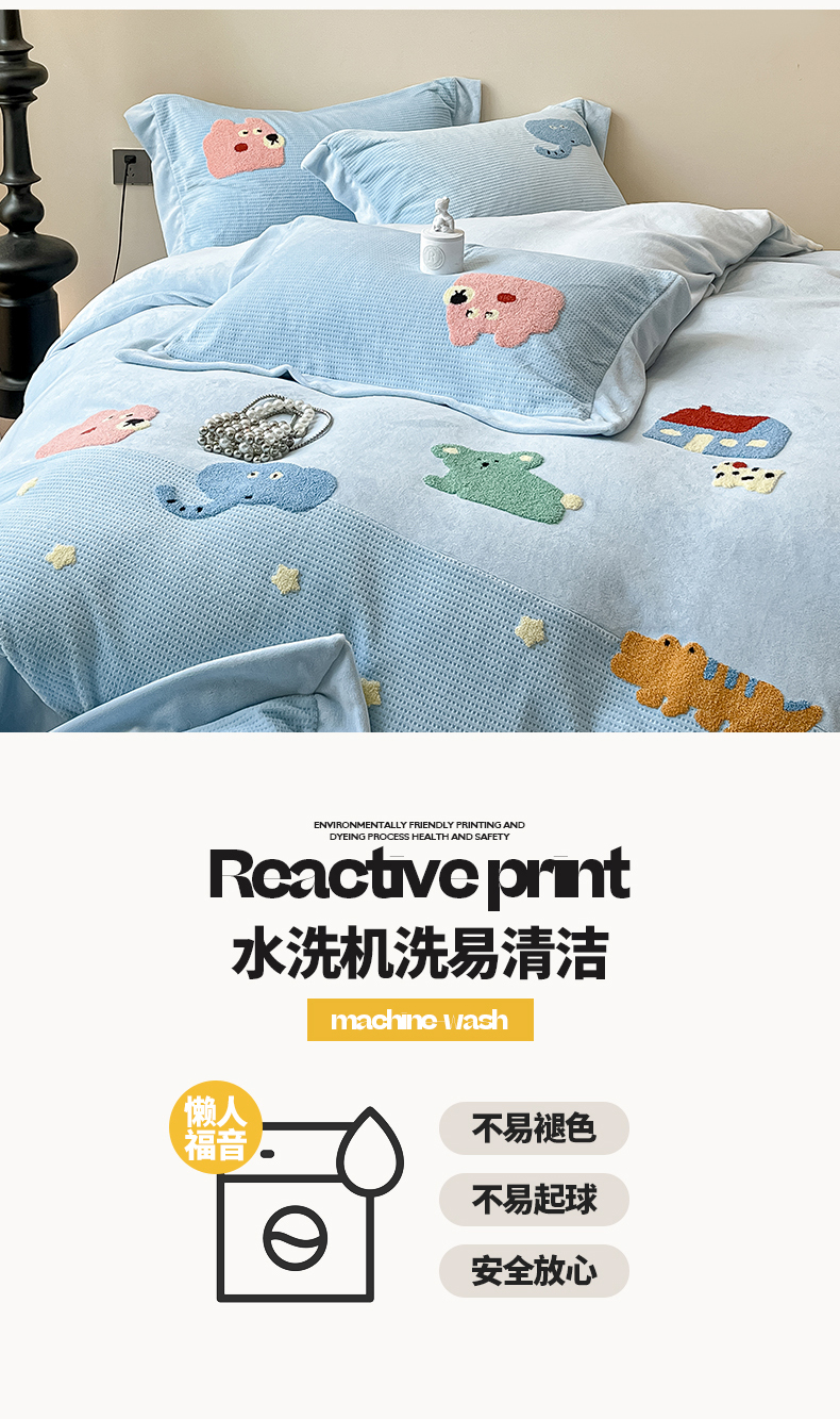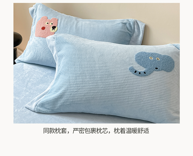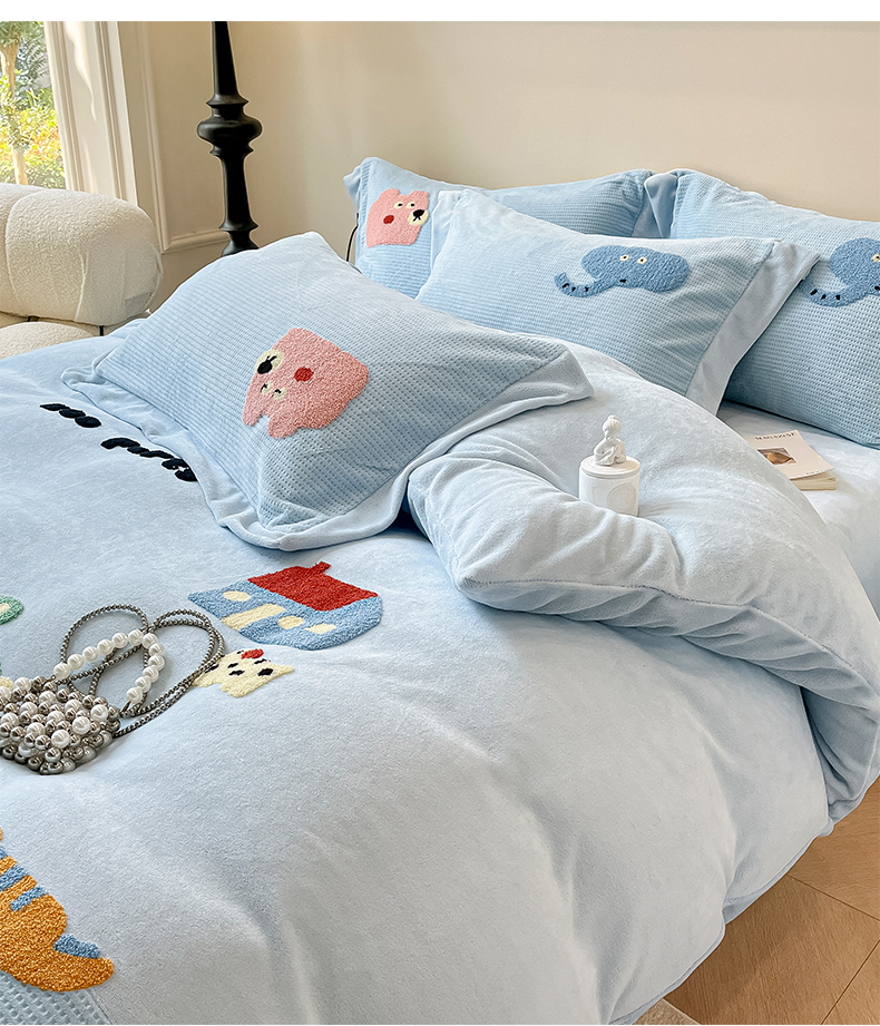 商品名称:典曼家纺 2024新款【华夫格绣花】牛奶绒四件套 奇趣乐园
