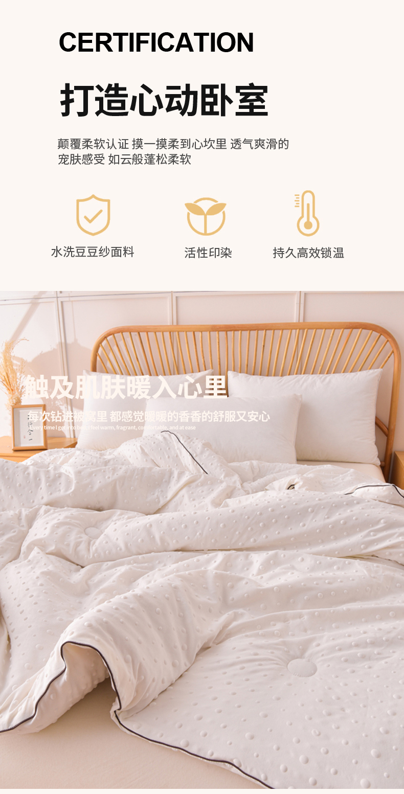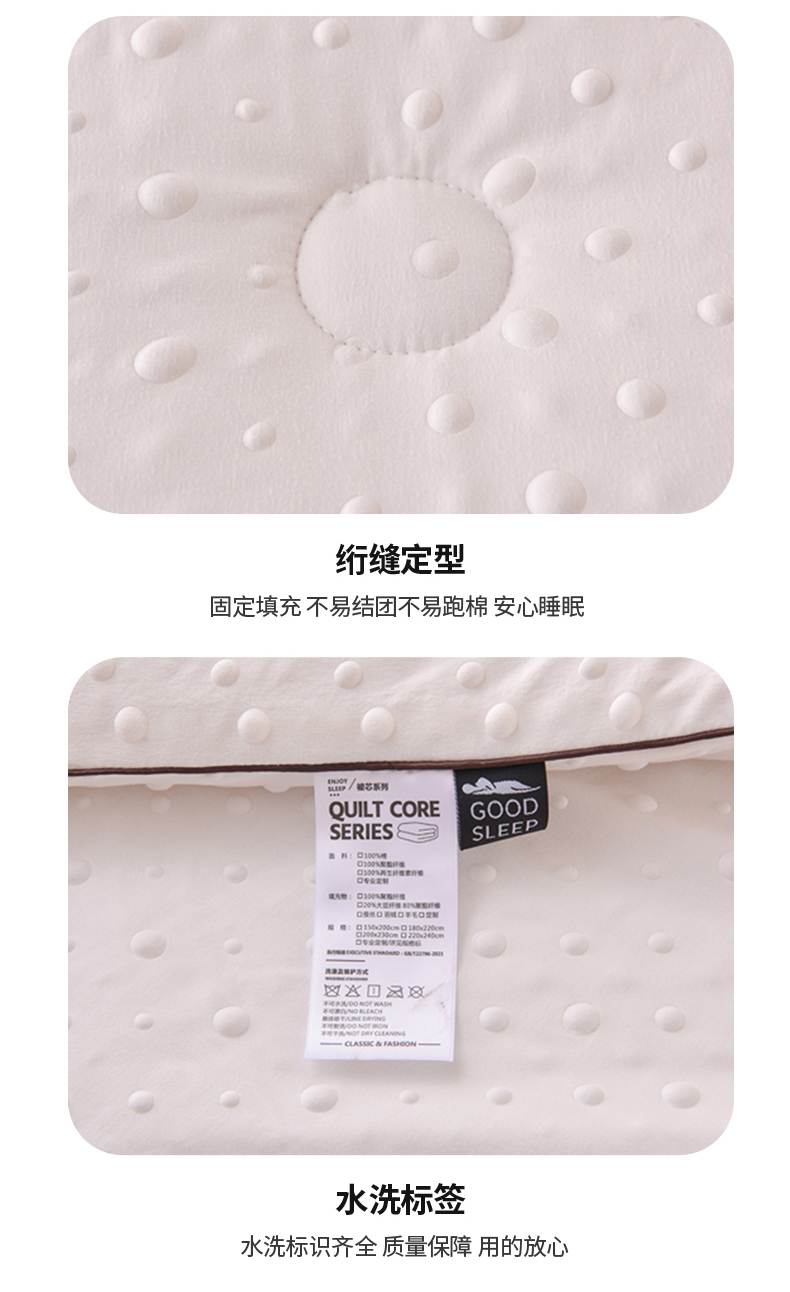 • 填充纤维种类: 大豆蛋白改性聚酯纤维