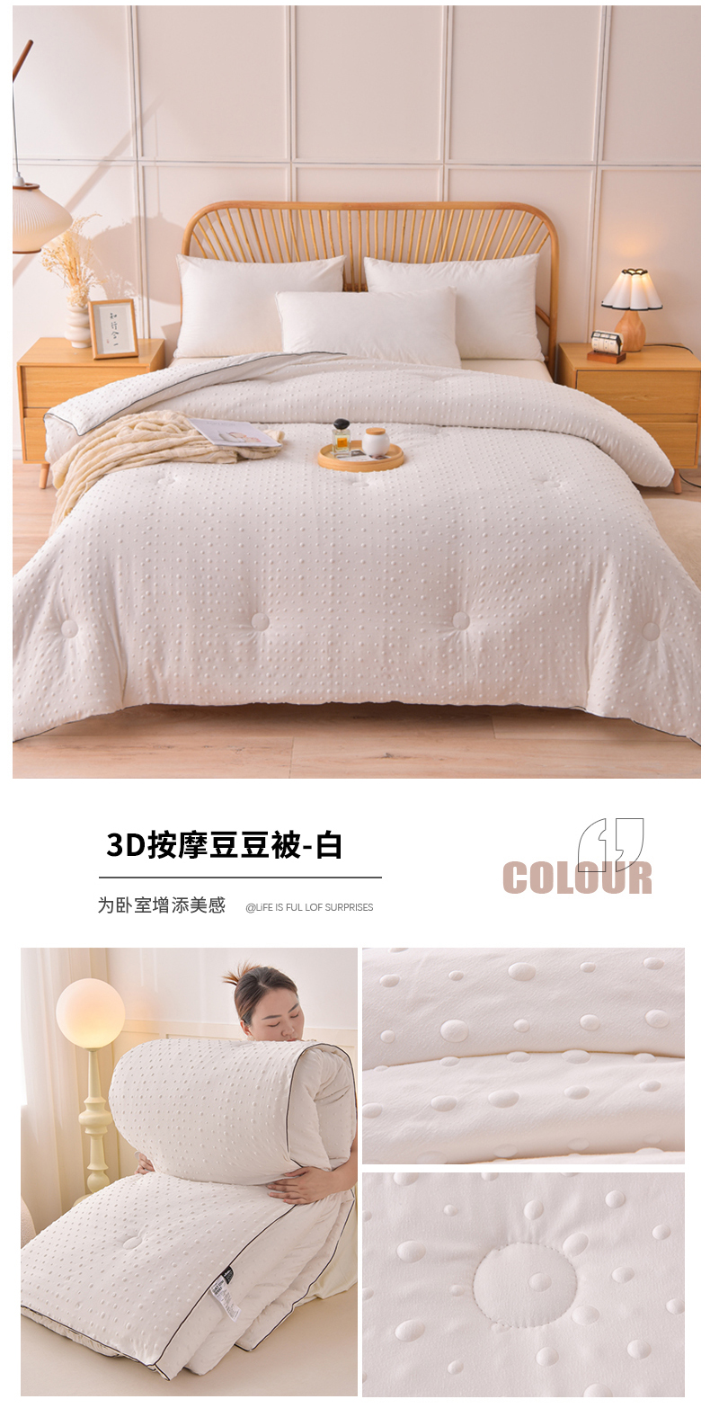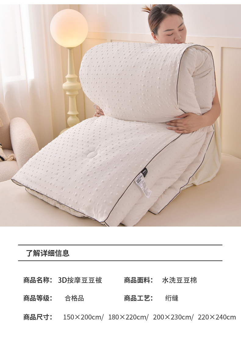 • 91家纺网 家纺一手货源 找家纺 苏迪 2025新款冬被亲肤保暖3D按摩豆豆被被子被芯 3D按摩豆豆被-白