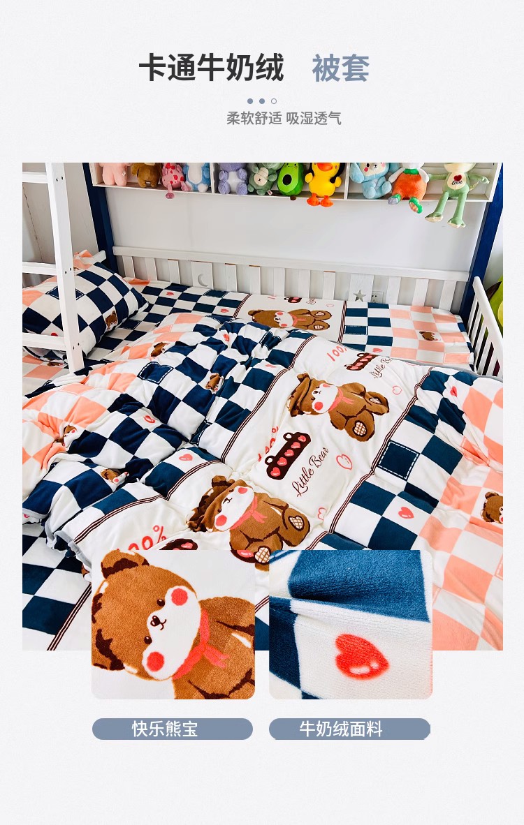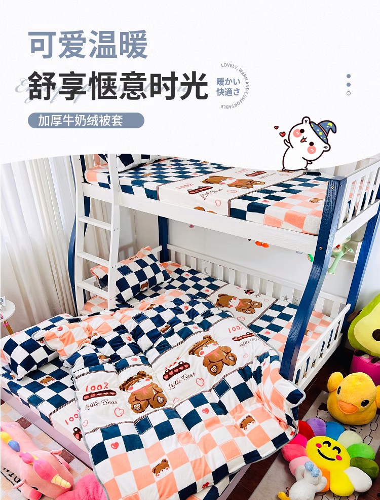 商品名称:小虾米 2024新款加厚上下床牛奶绒单被套 快乐熊宝