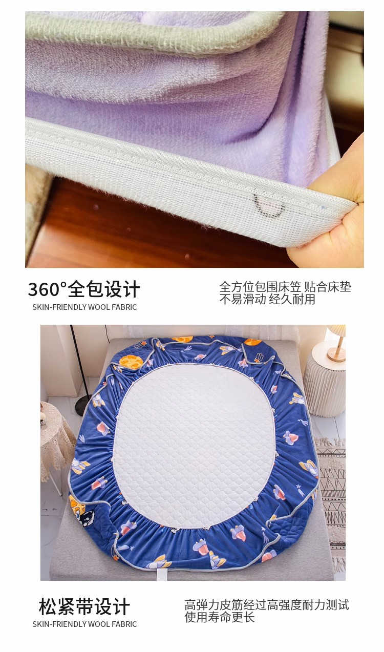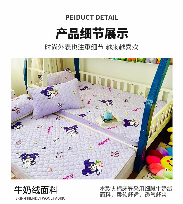 • 91家纺网 家纺一手货源 找家纺 小虾米 2024新款加厚上下床牛奶绒夹棉床笠款 小精灵
