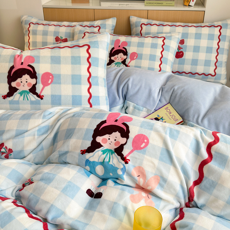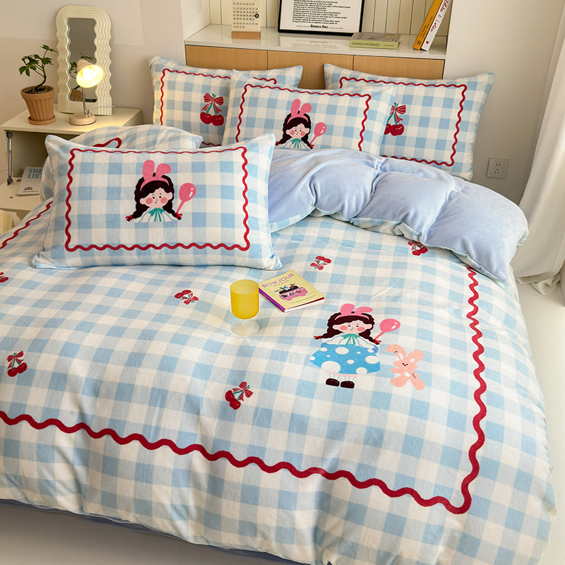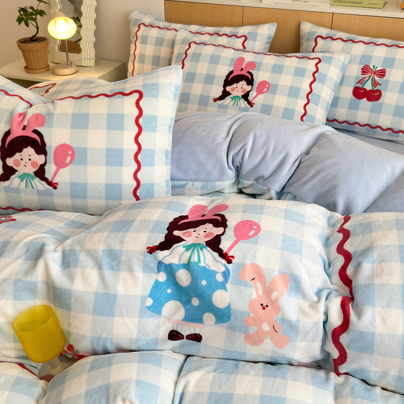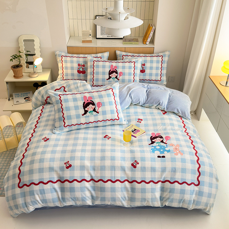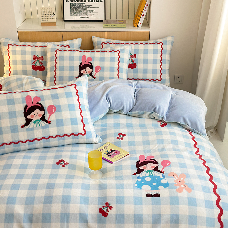 2024新款大版卡通双面高克重牛奶绒床单款四件套 小女孩