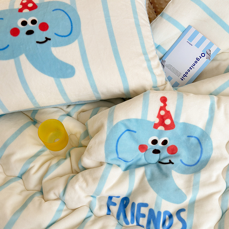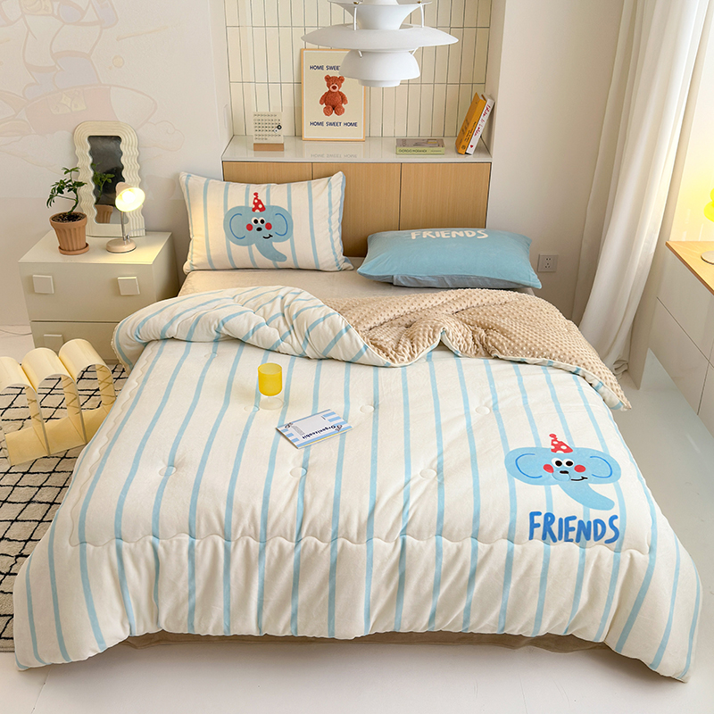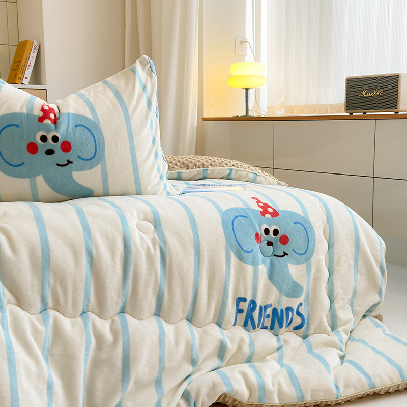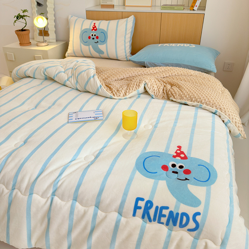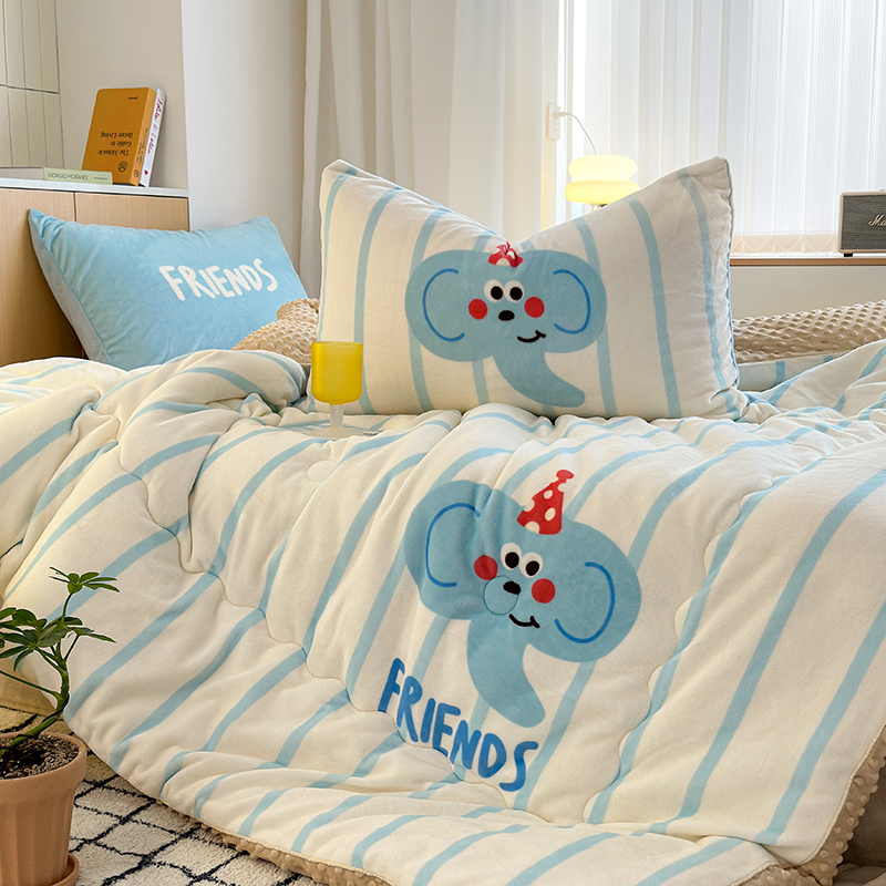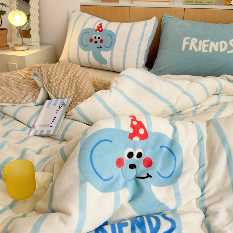 2024新款卡通大版高克重牛奶绒豆豆被四件套 小象