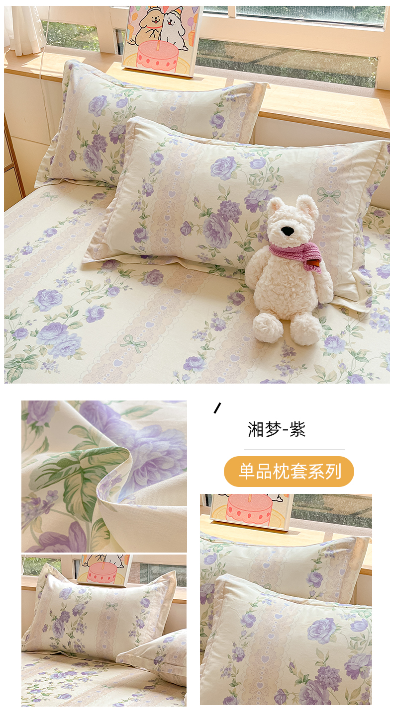 商品名称:铭成家纺 2024新款新疆棉喷气印花小清新系列单品枕套 湘梦-紫