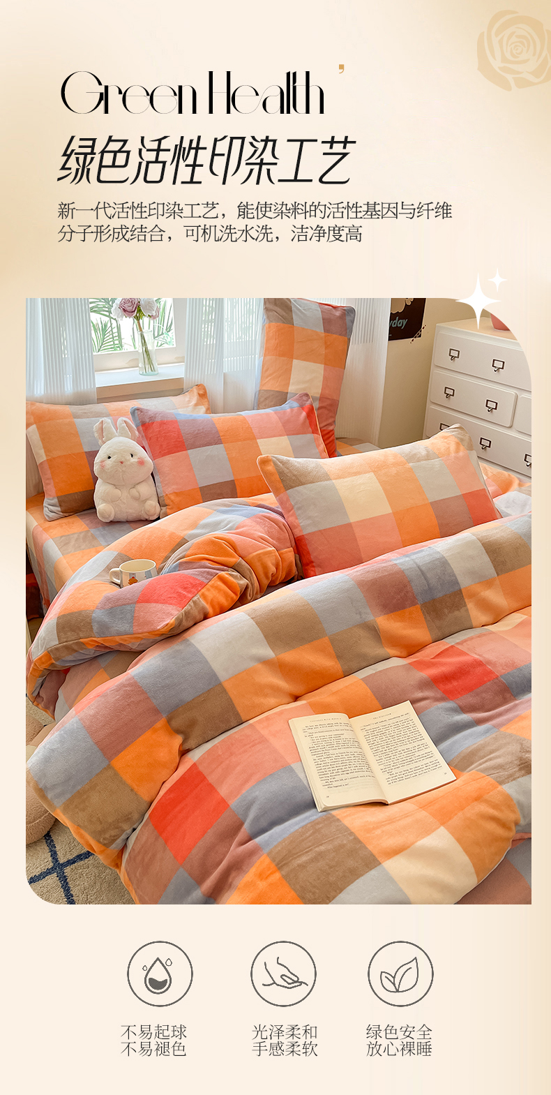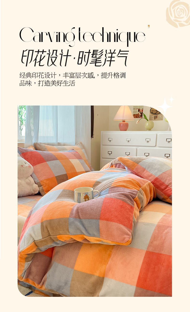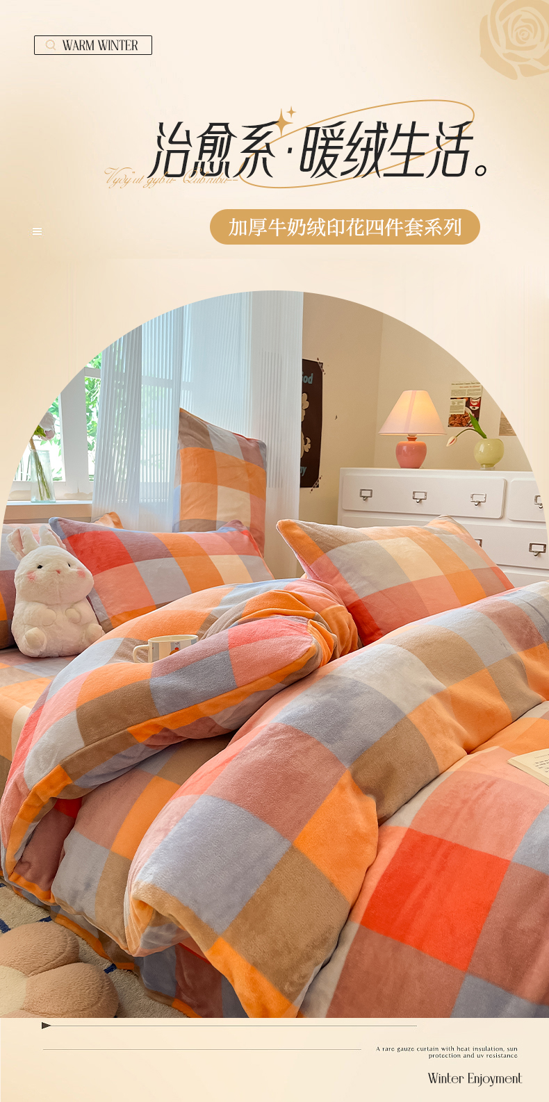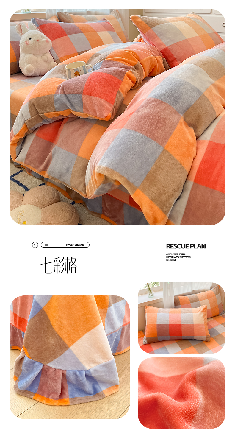 绘萱家居 2025新款高克重印花牛奶绒四件套 七彩格