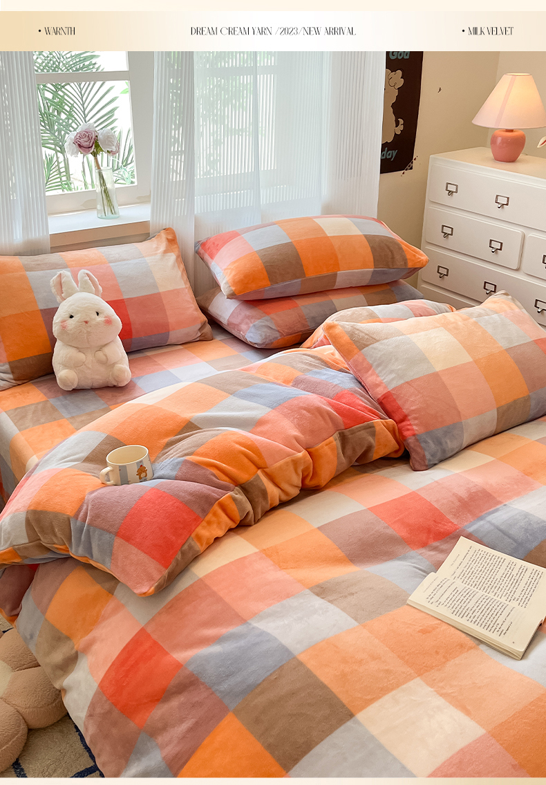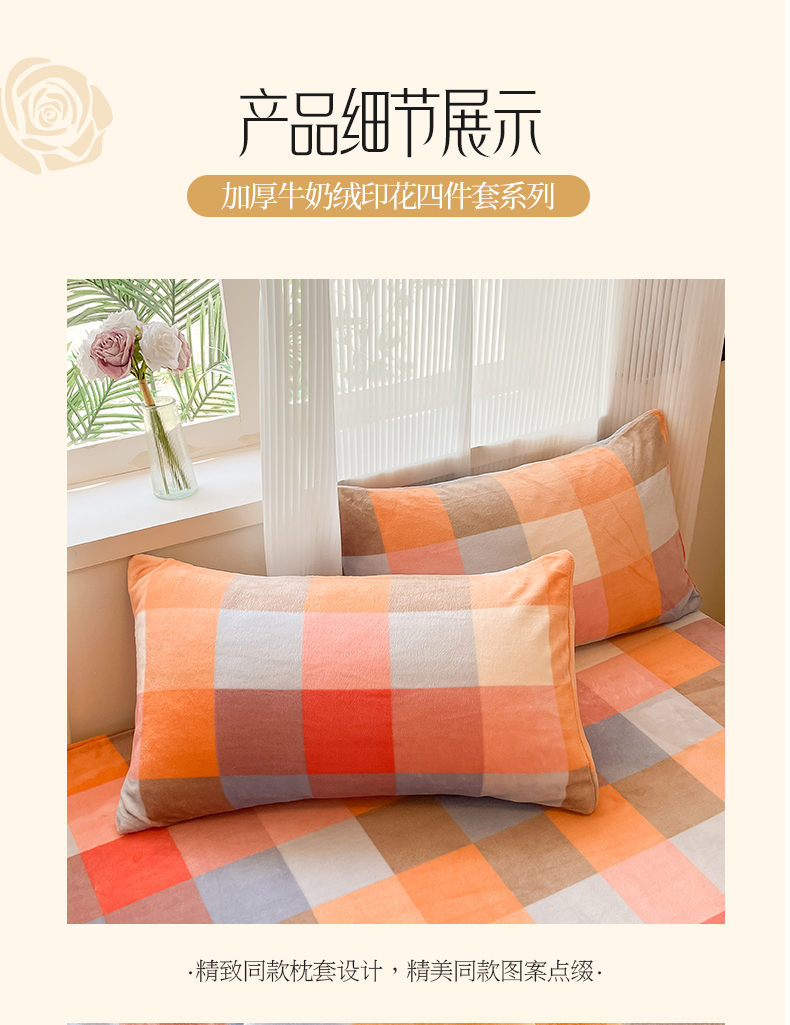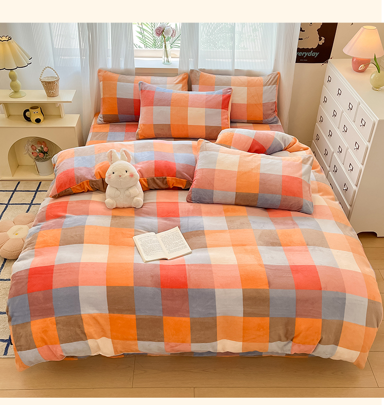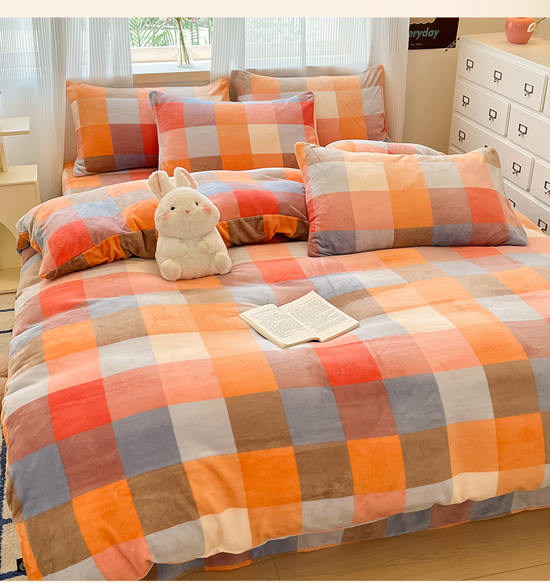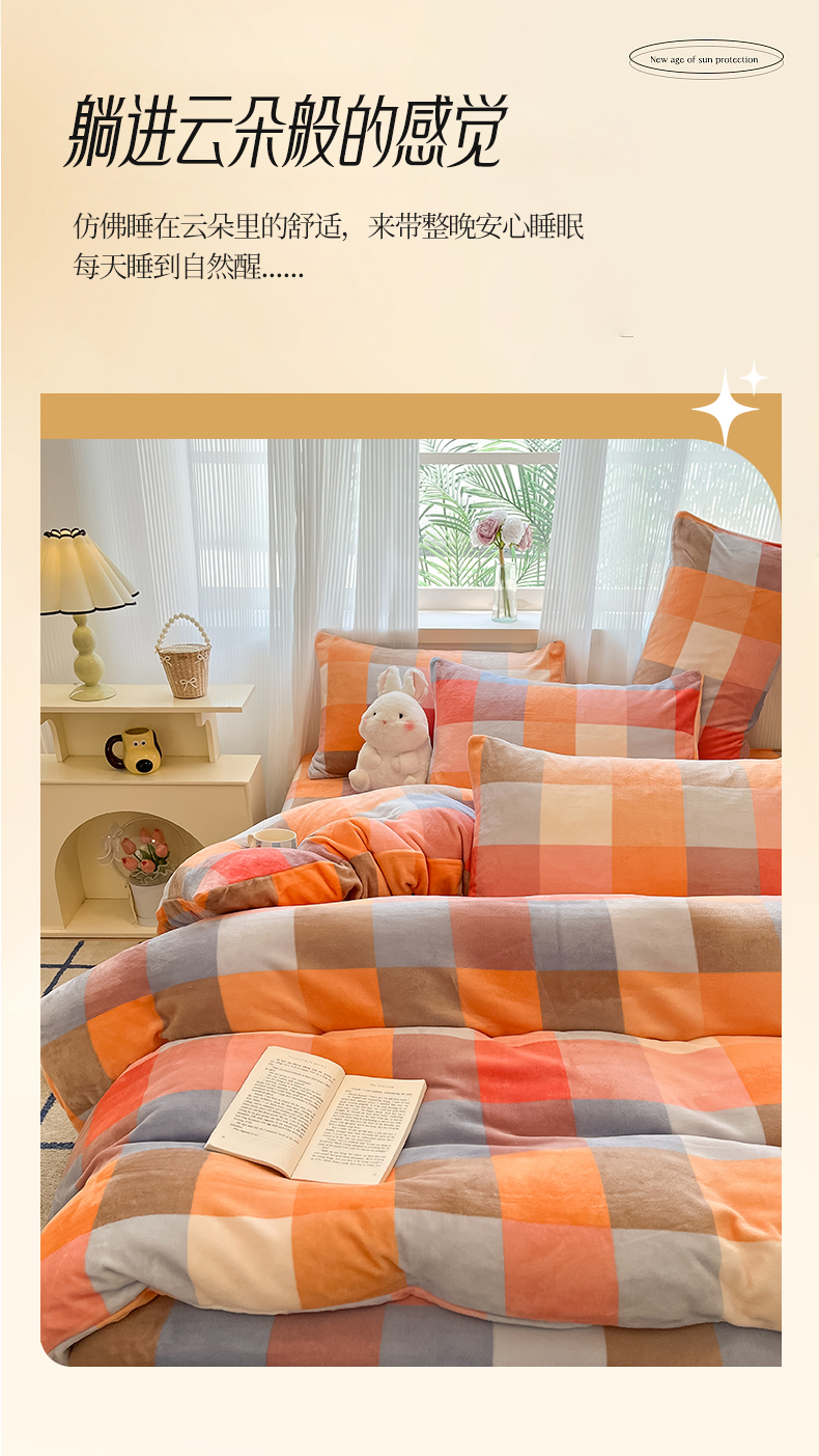绘萱家居 2025新款高克重印花牛奶绒四件套 七彩格
