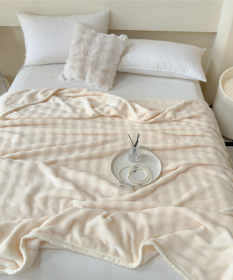 凡客 2024新款全工艺加厚仿獭兔毛牛奶绒泡泡毛毯 泡泡毯-白色