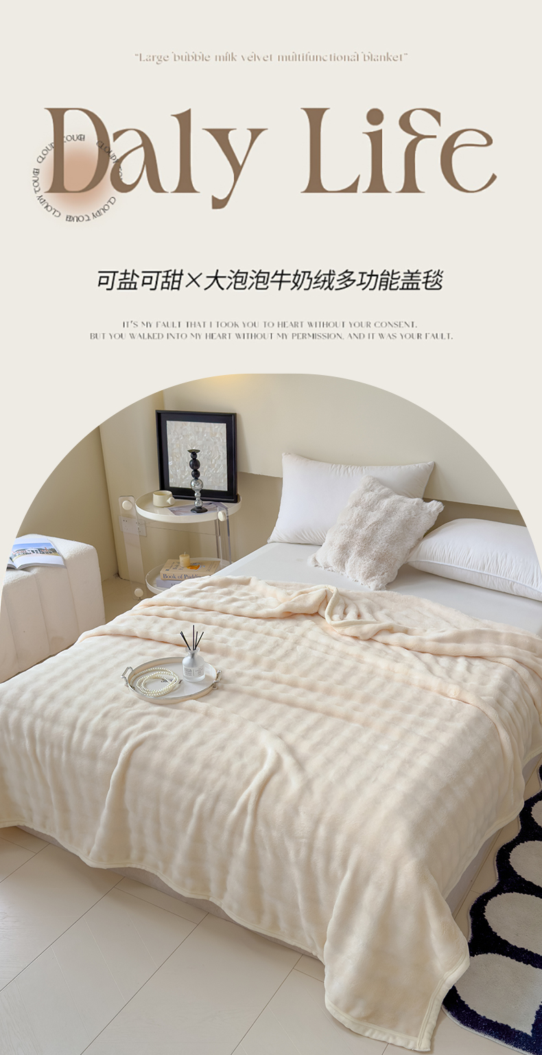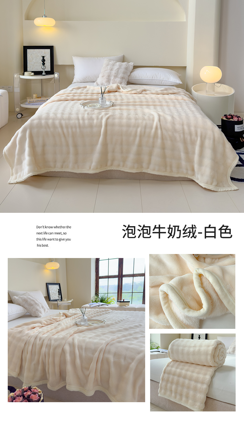 (总)凡客 2024新款全工艺加厚仿獭兔毛牛奶绒泡泡毛毯,泡泡毯-白色,泡泡毯-咖色,泡泡毯-蓝灰,泡泡毯-玉粉