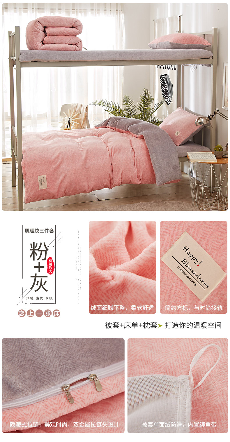 商品名称:爱港家纺 2024新款牛奶绒法兰绒加厚保暖三件套床笠床单款 粉+灰