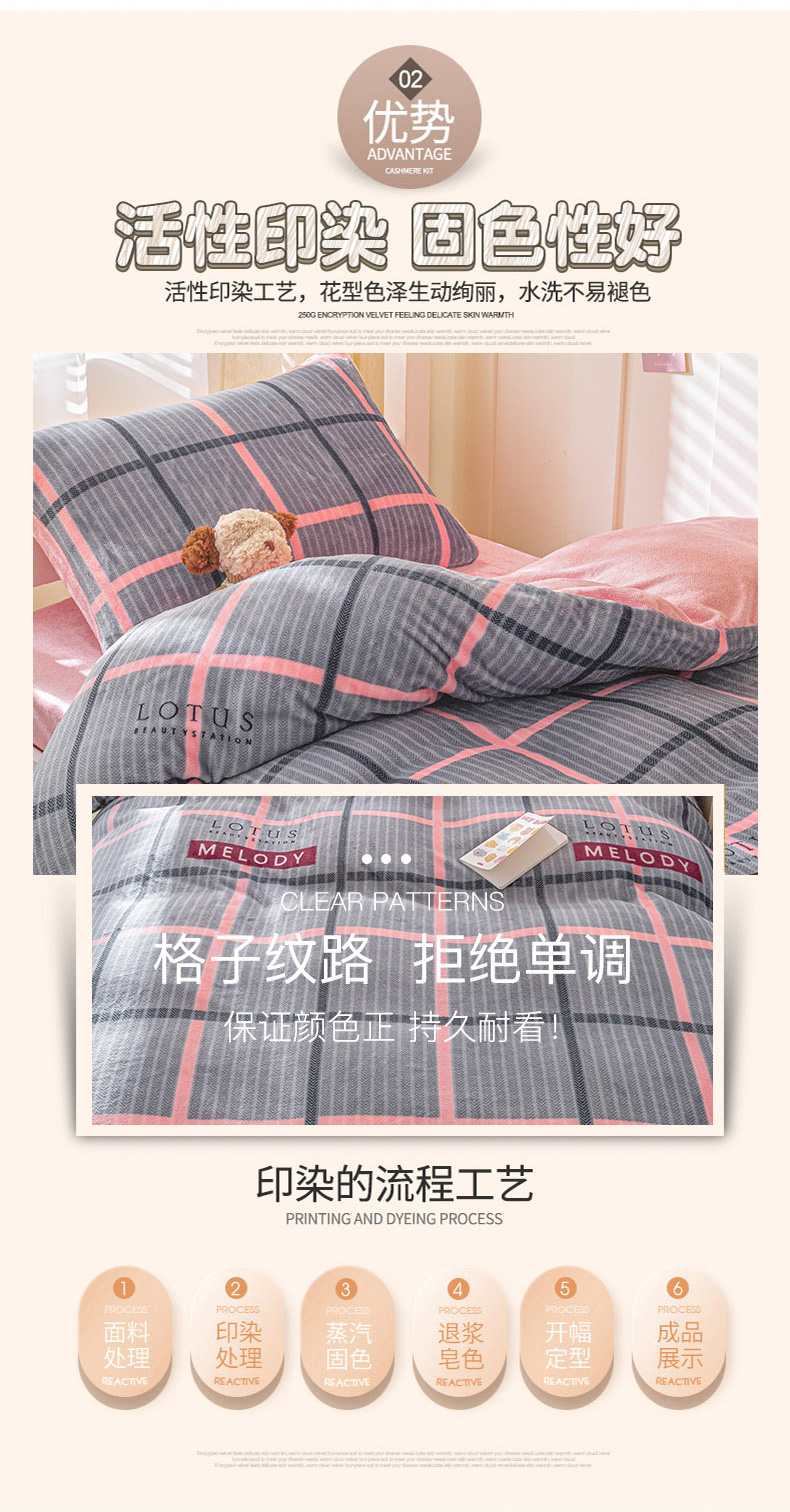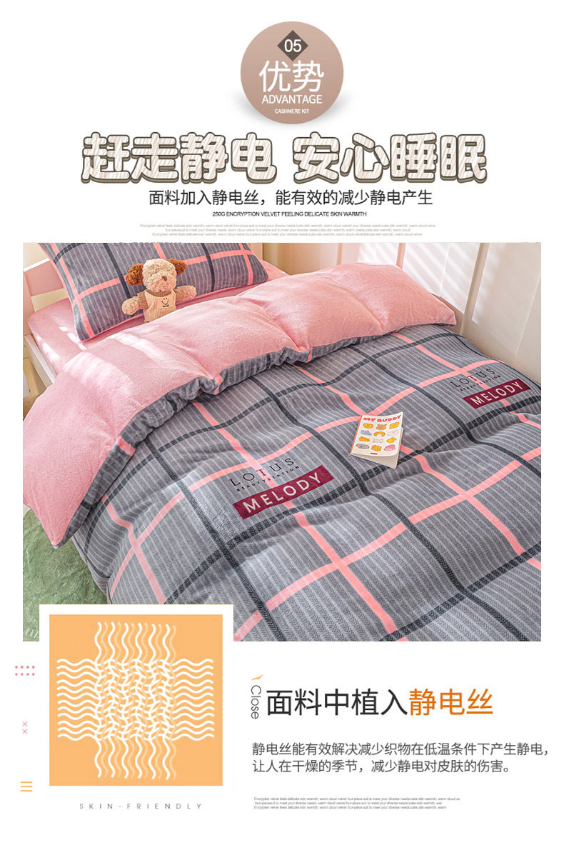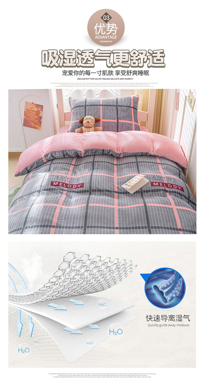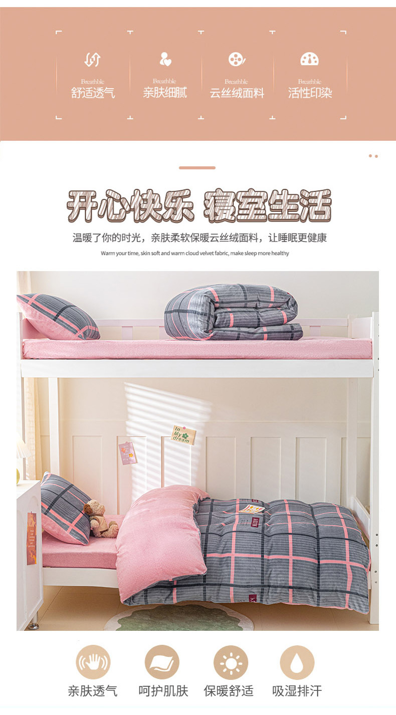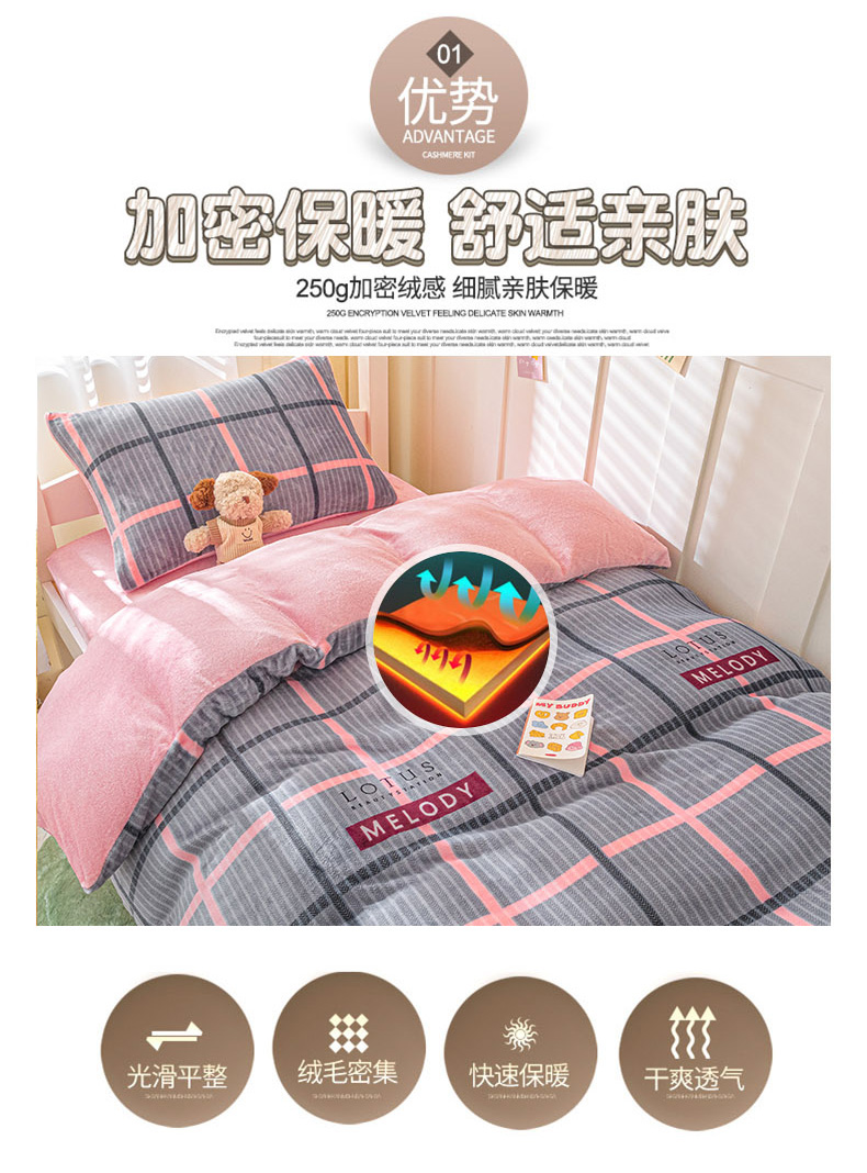 商品名称:爱港家纺 2024新款牛奶绒法兰绒加厚保暖三件套床笠床单款 校园旋律