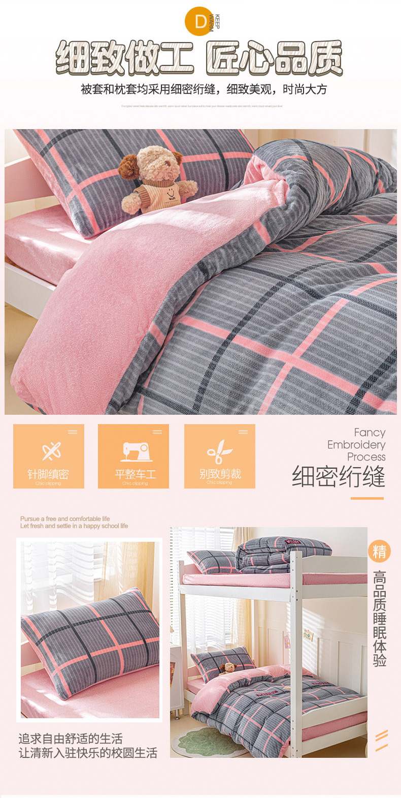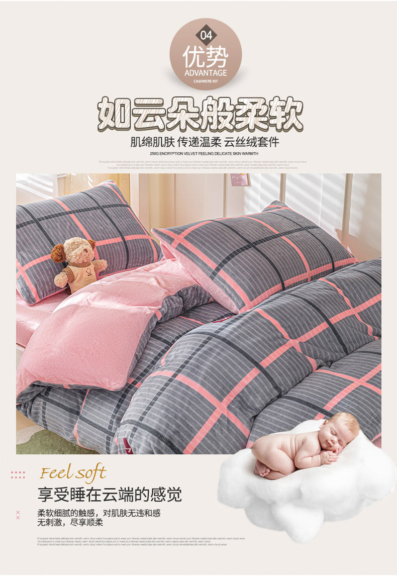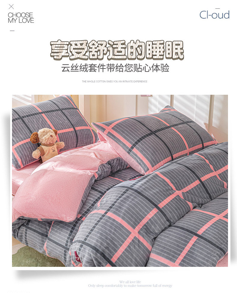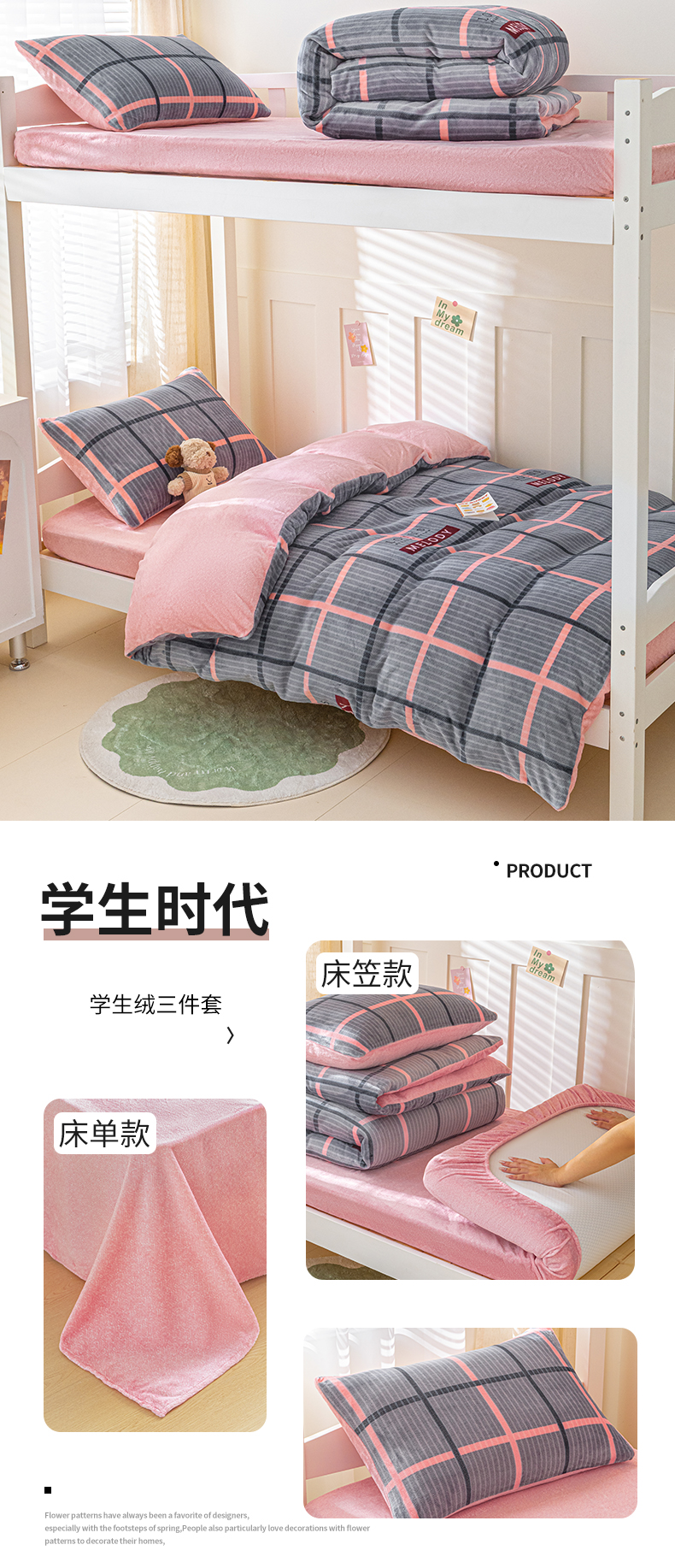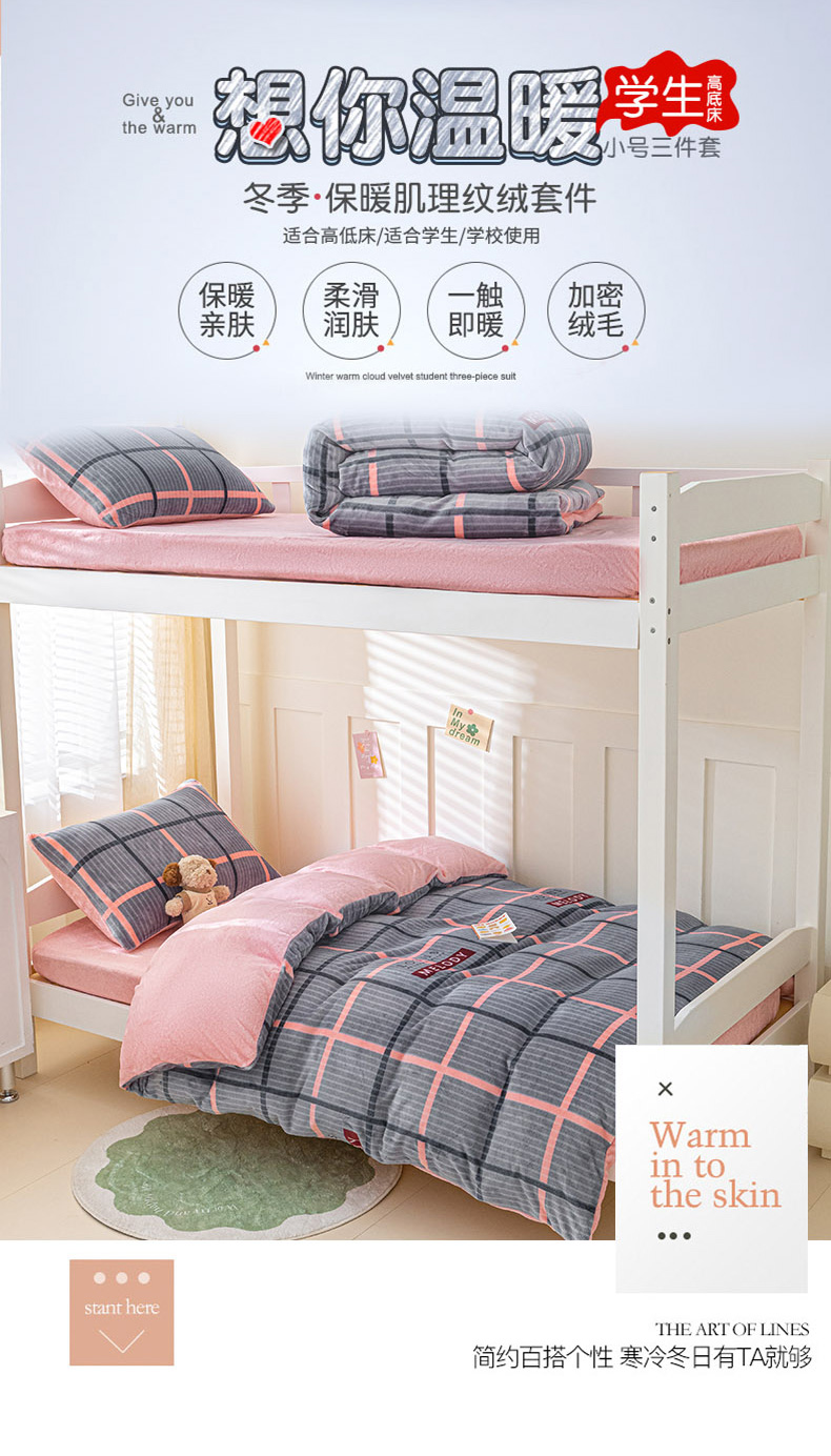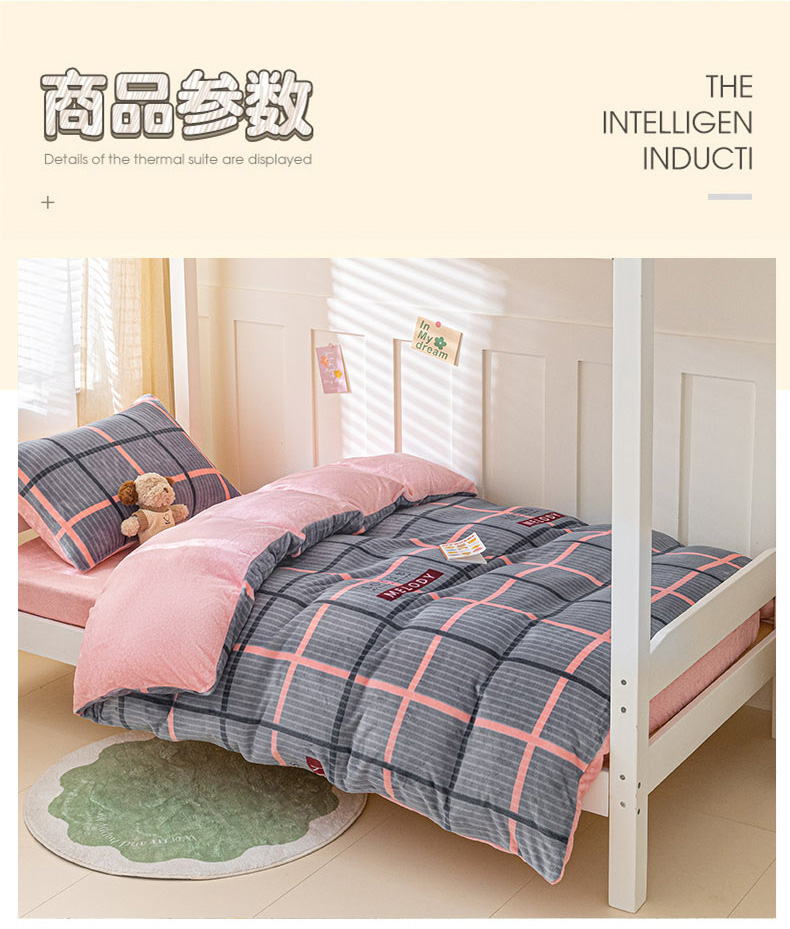 商品名称:爱港家纺 2024新款牛奶绒法兰绒加厚保暖三件套床笠床单款 校园旋律