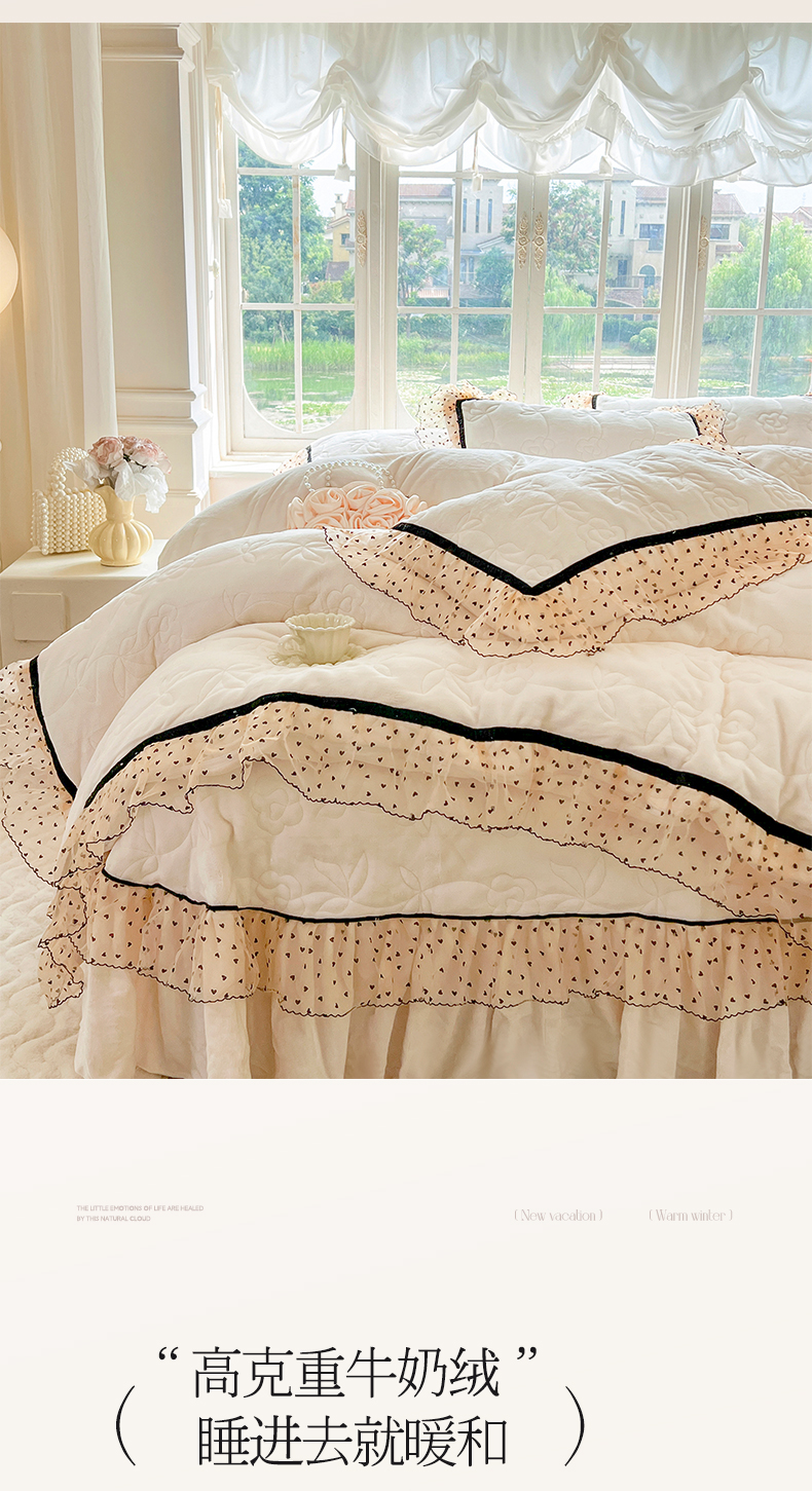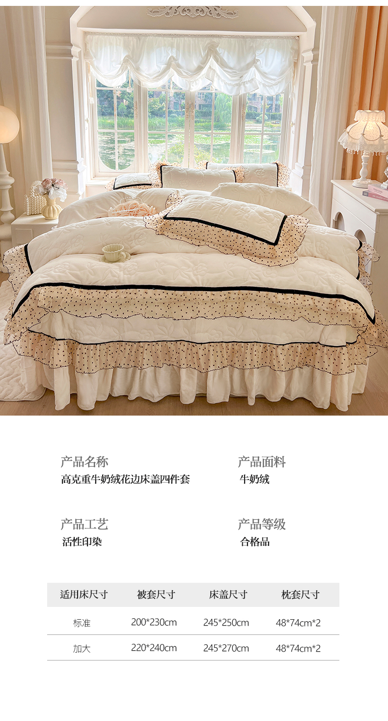 (总)网红馆(ck家纺) 2025新款牛奶绒花边床盖四件套-甜蜜蜜,甜蜜蜜-粉,甜蜜蜜-咖,甜蜜蜜-绿,甜蜜蜜-米,甜蜜蜜-紫