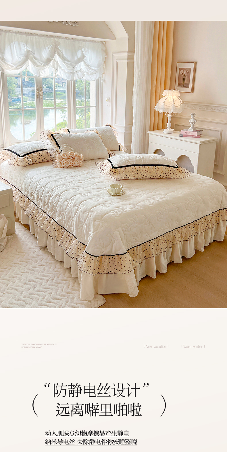 (总)网红馆(ck家纺) 2025新款色织提花牛奶绒床裙四件套-洛丽塔系列,洛丽塔-豆沙,洛丽塔-蓝色,洛丽塔-米色