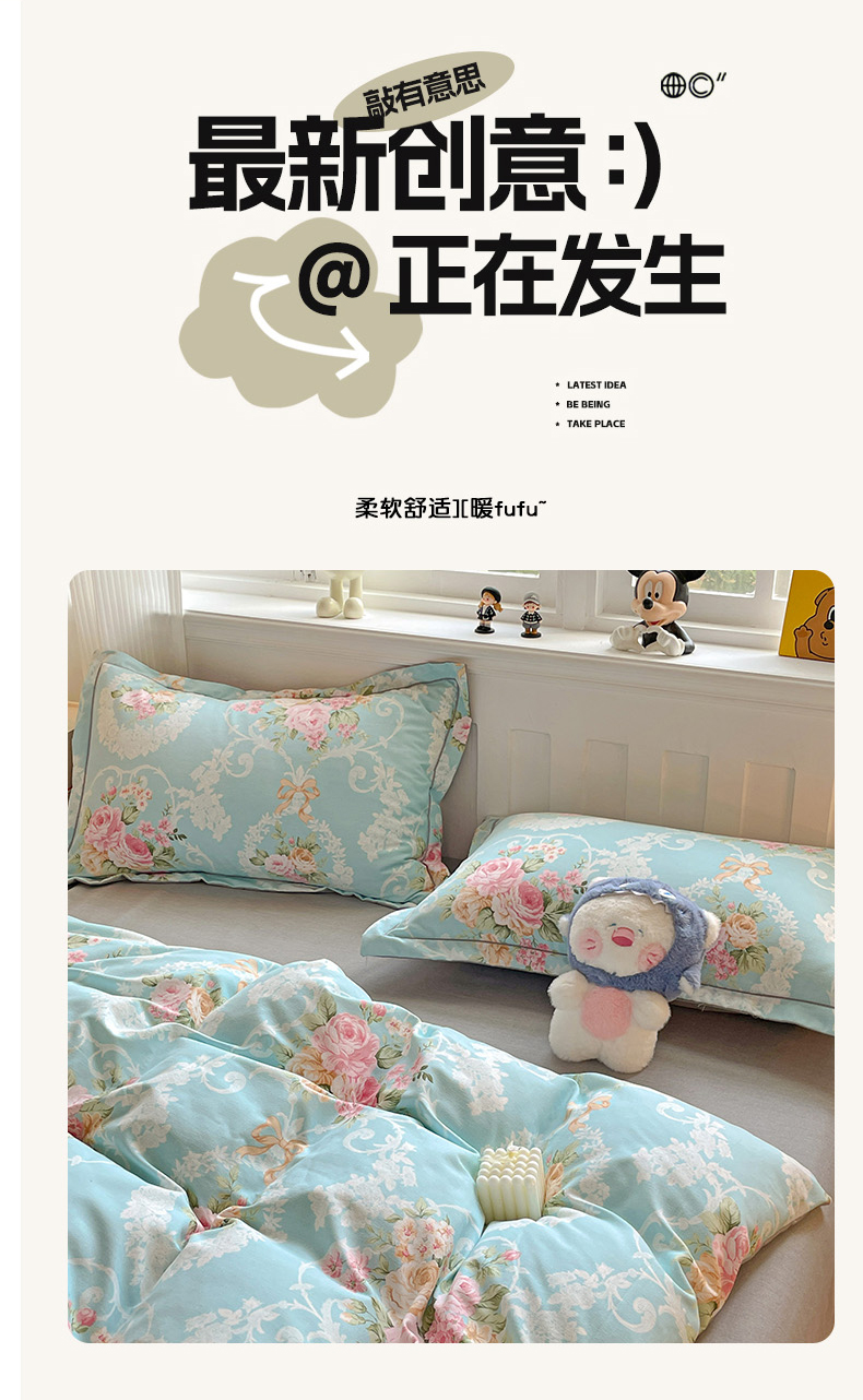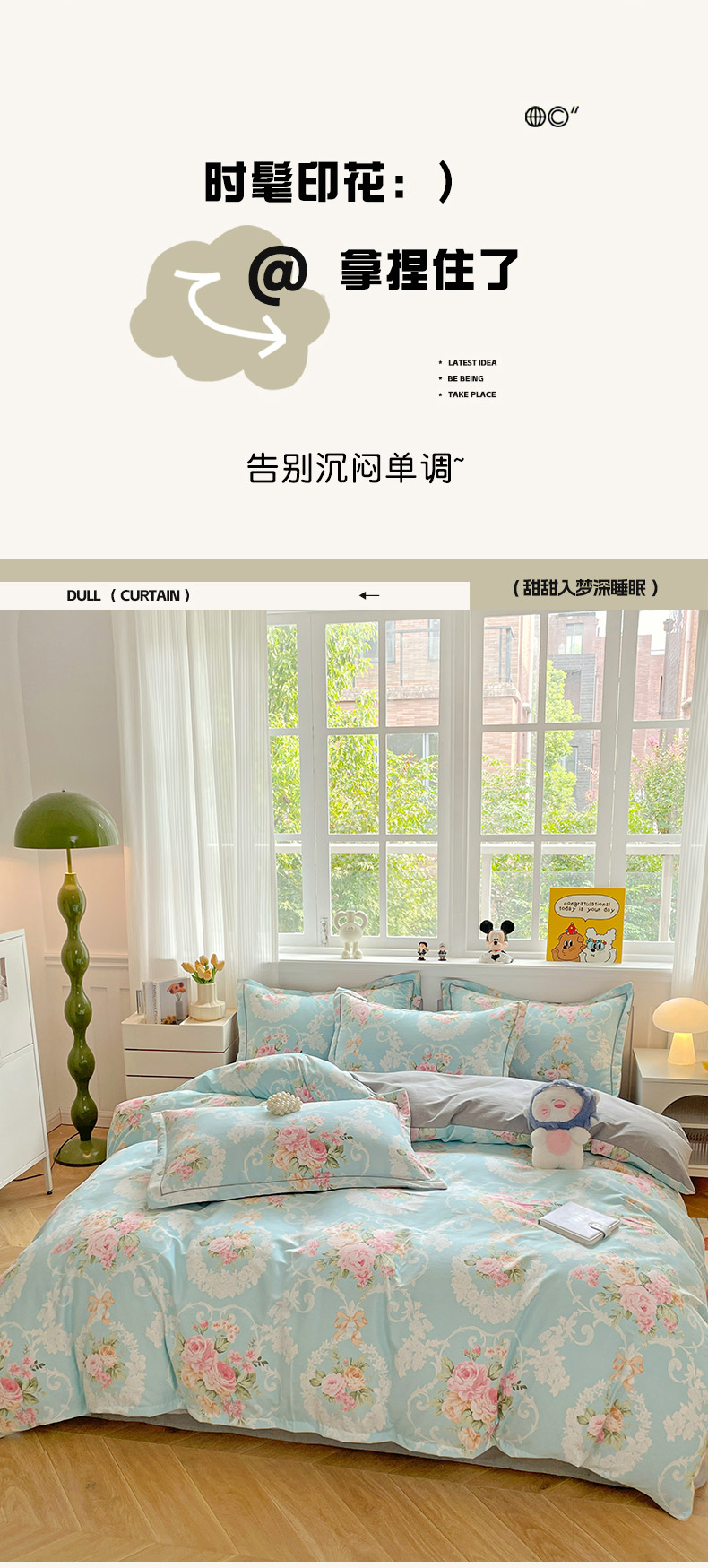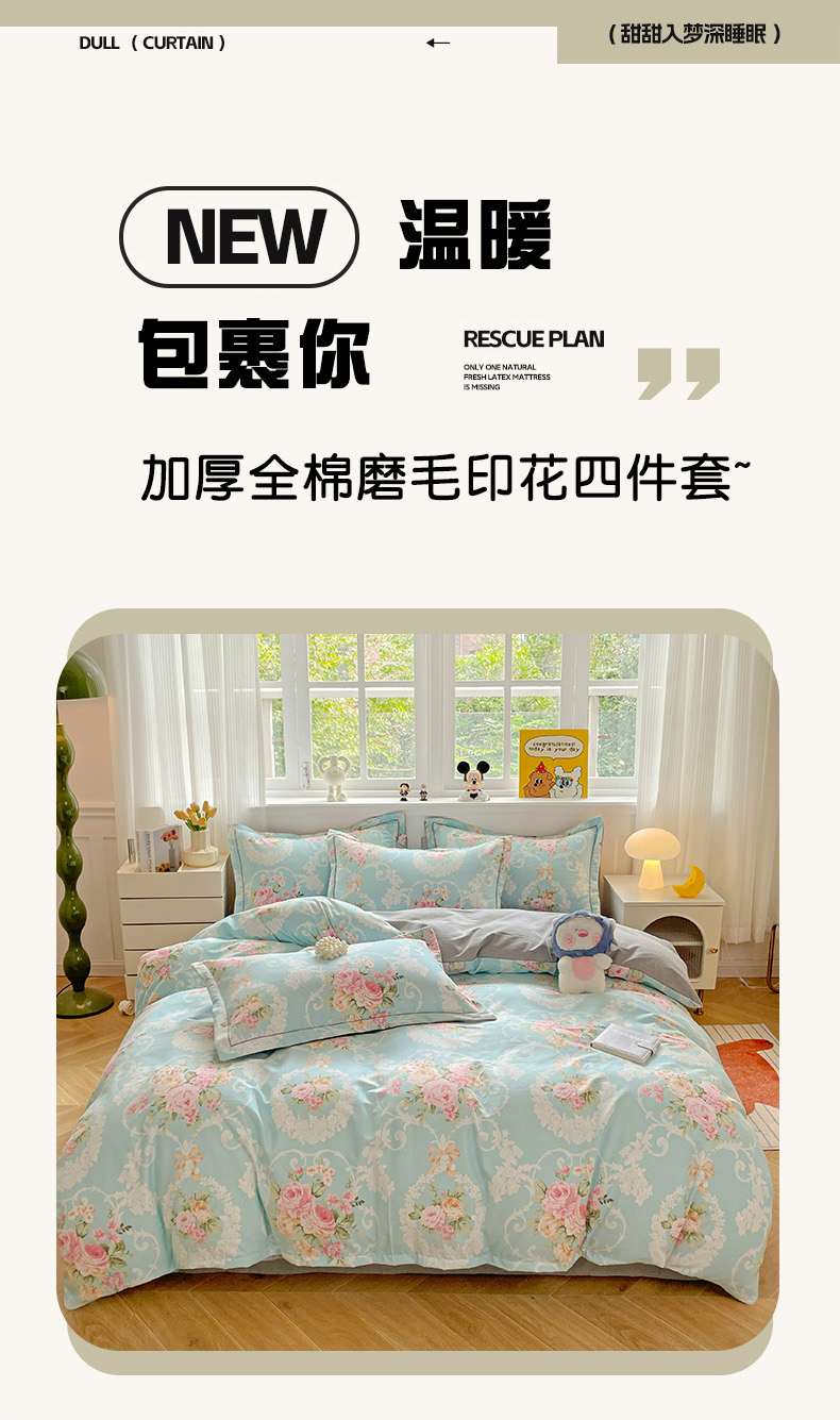 暖芯优选 2025直播热款加厚全棉磨毛四件套喷气印花纯棉(一字绣工艺款)学生三件套9月上新 流年
