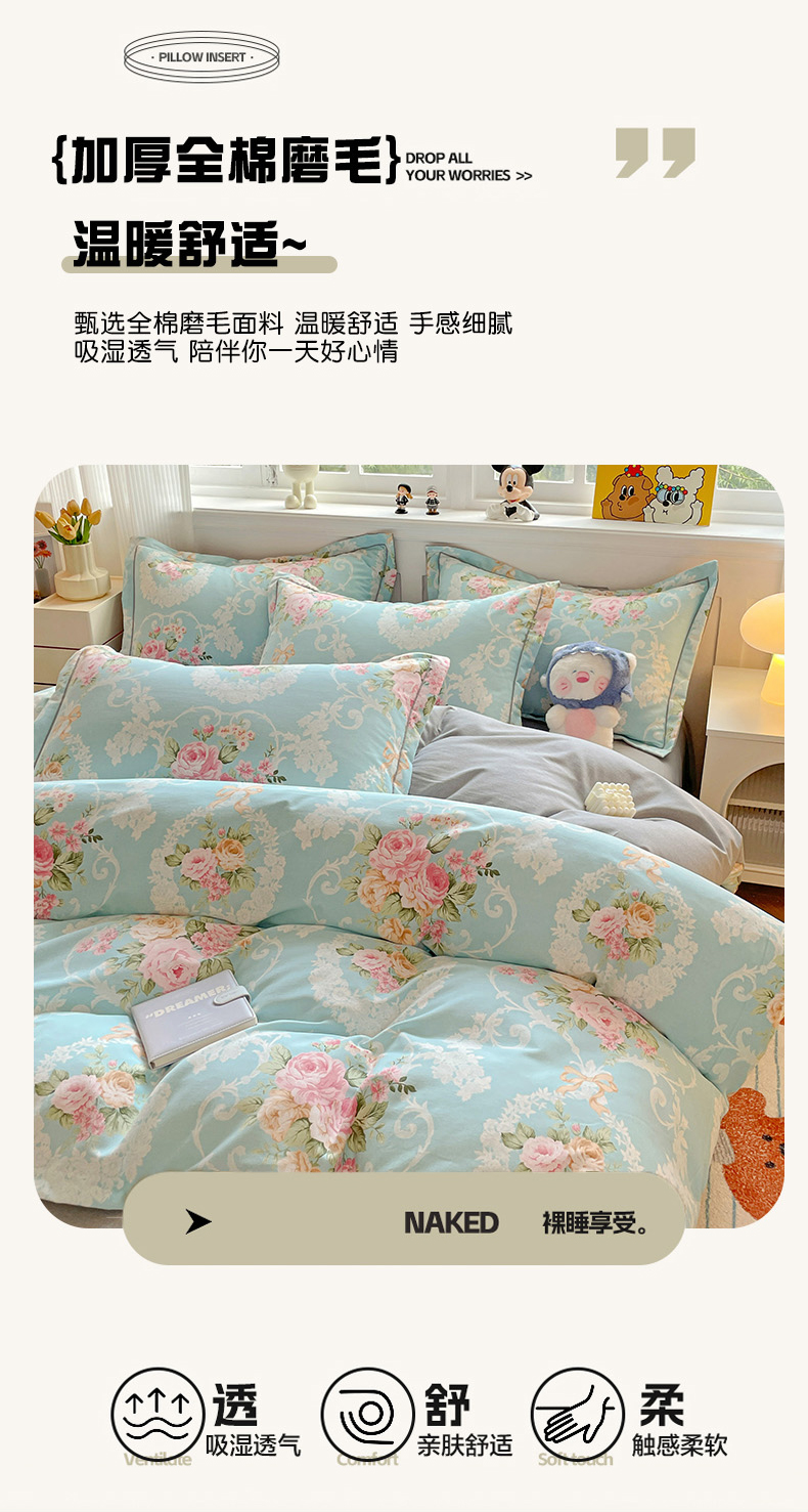 暖芯优选 2025新款小清新印花全棉磨毛四件套 芬迪,芬迪
