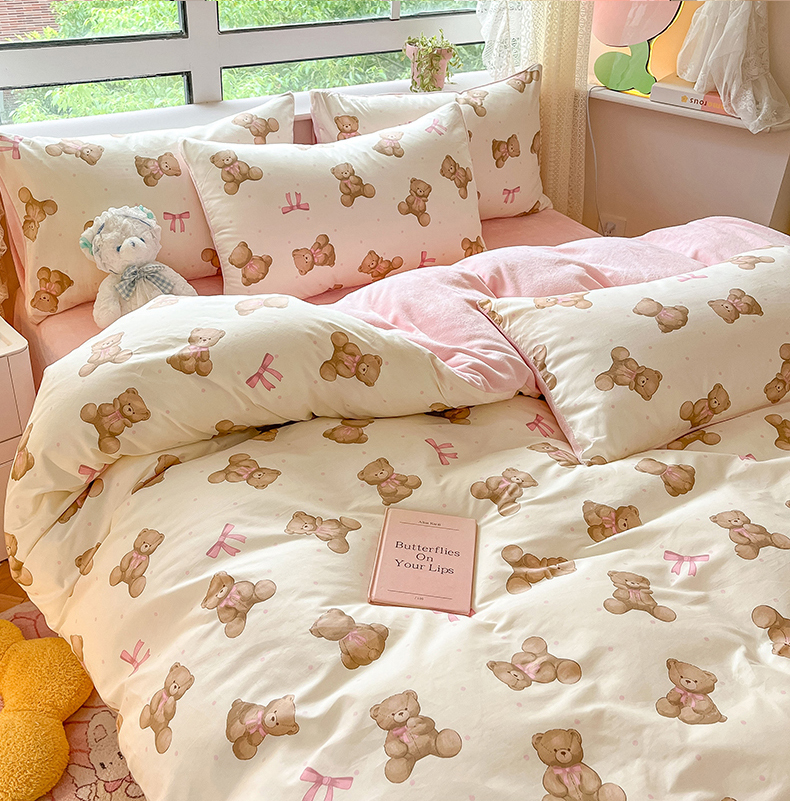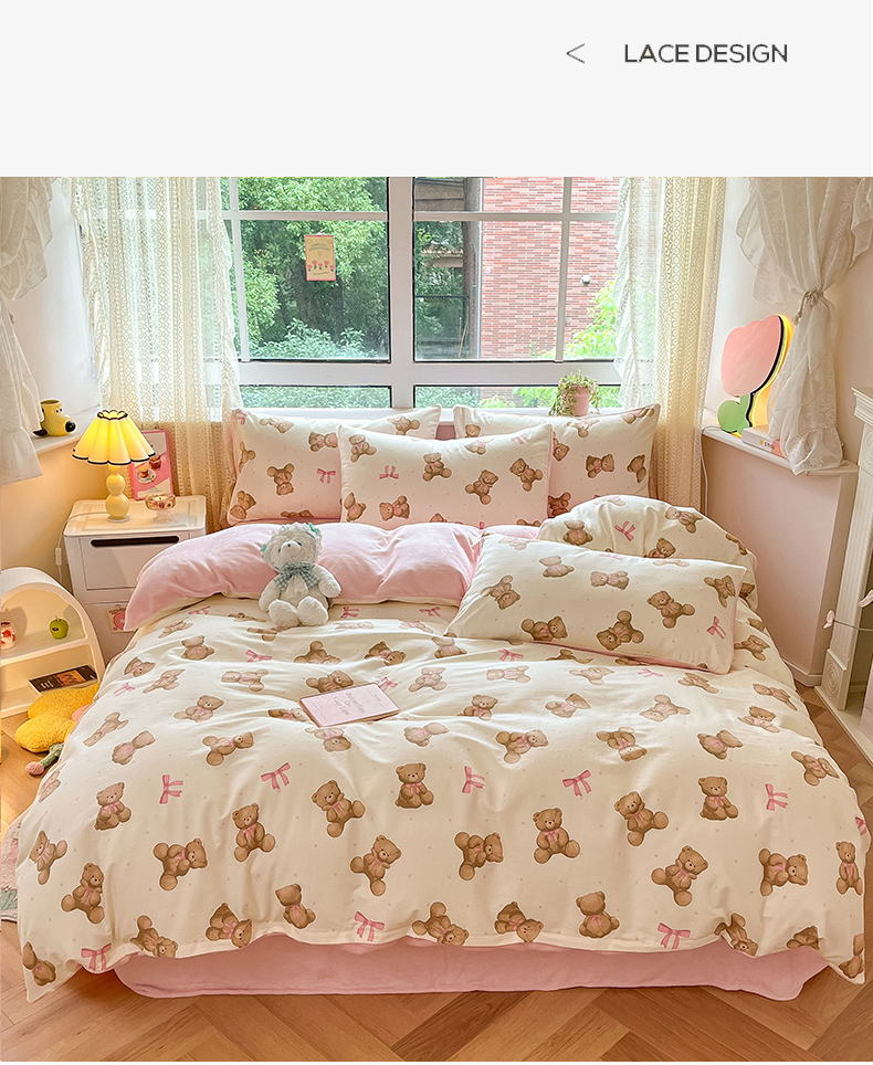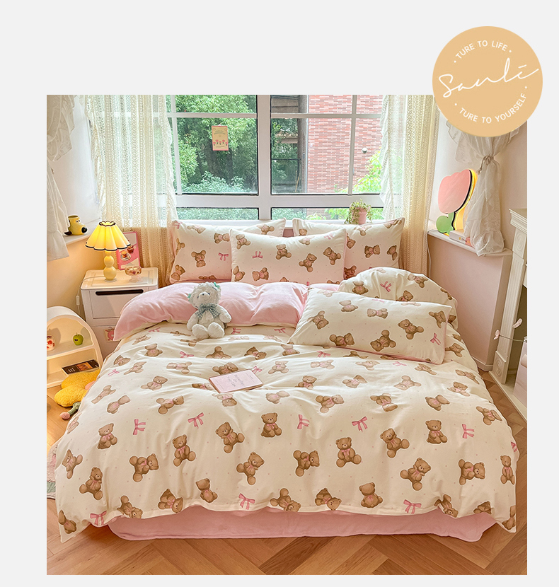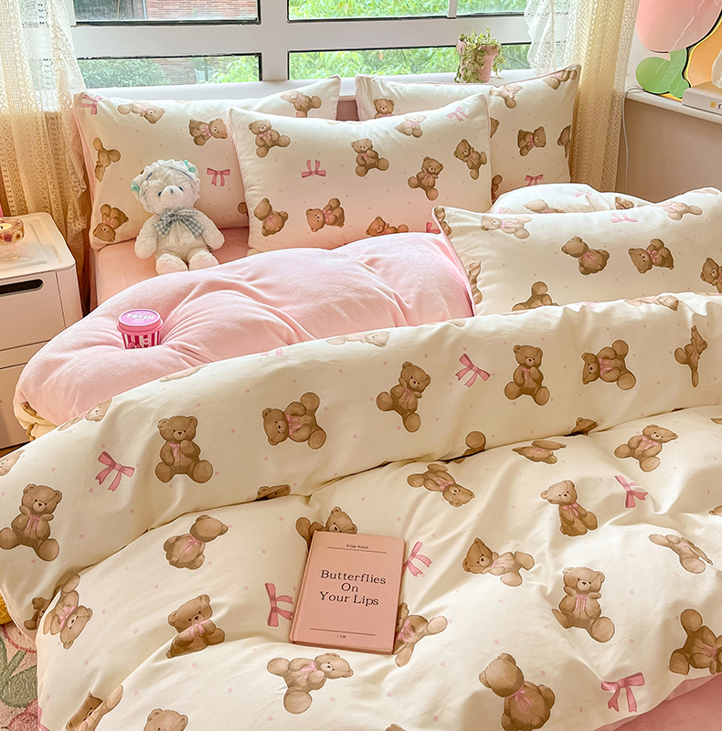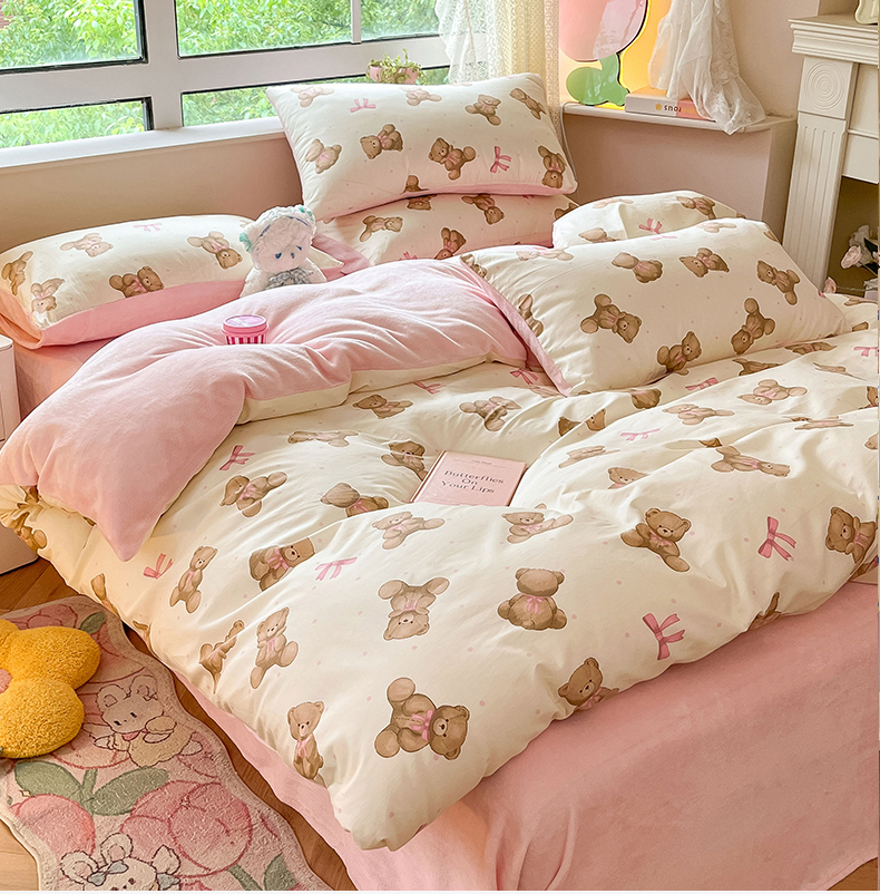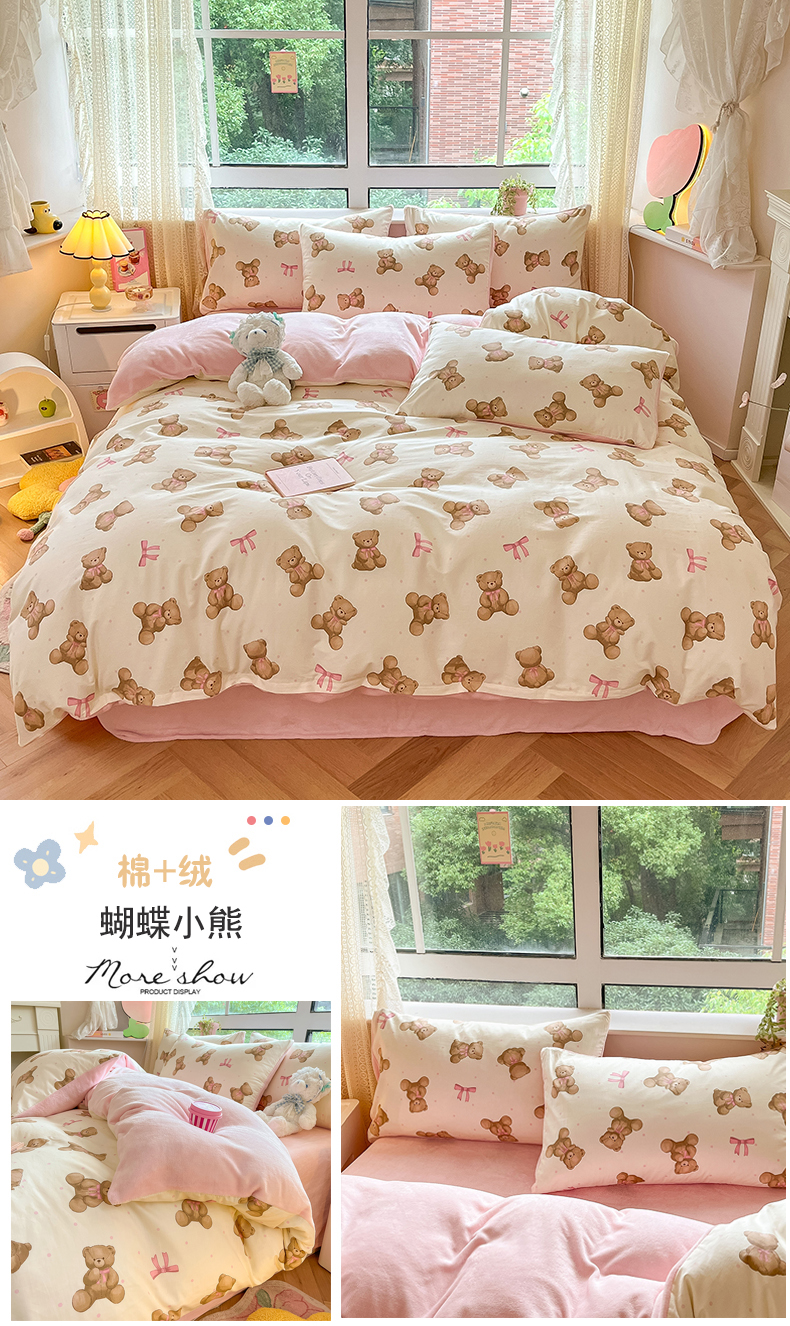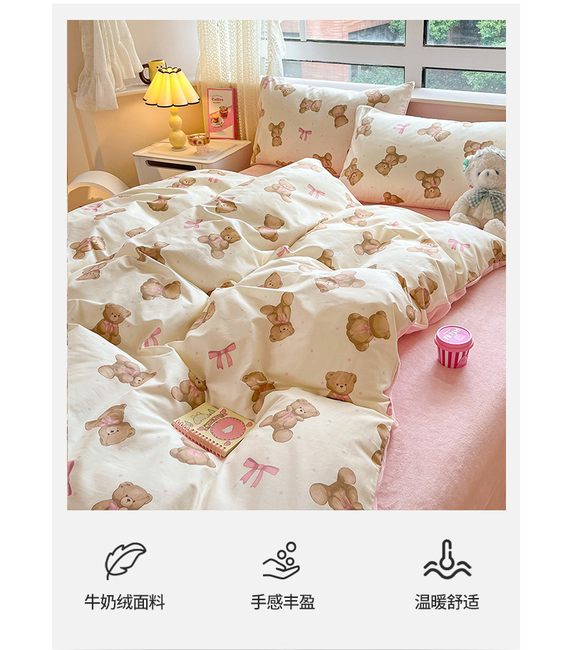 当前位置: 91家纺网 > 商品网购 > 床品套件 > 四件套 > 牛奶绒四件套 > 麦伦家居 2024秋冬新品 多功能床品全棉+牛奶绒四件套 蝴蝶结小熊