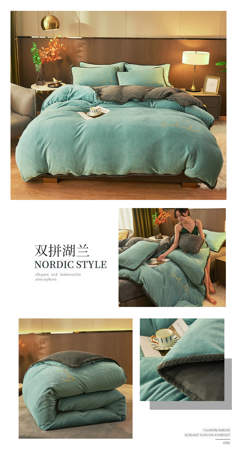 当前位置: 91家纺网 > 商品网购 > 床品套件 > 四件套 > 牛奶绒四件套 > 吾诺 2024新款双拼色牛奶绒四件套 风格一 双拼湖兰