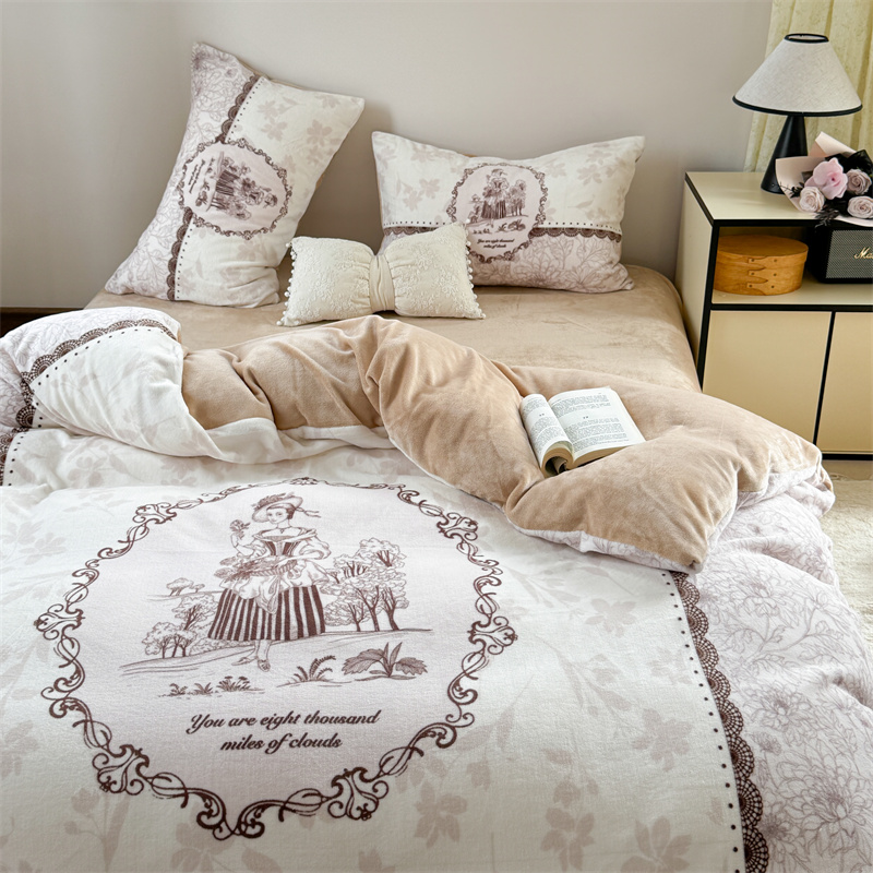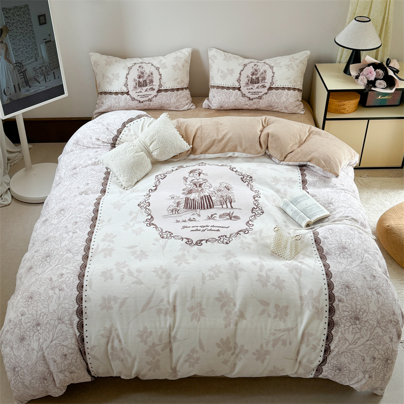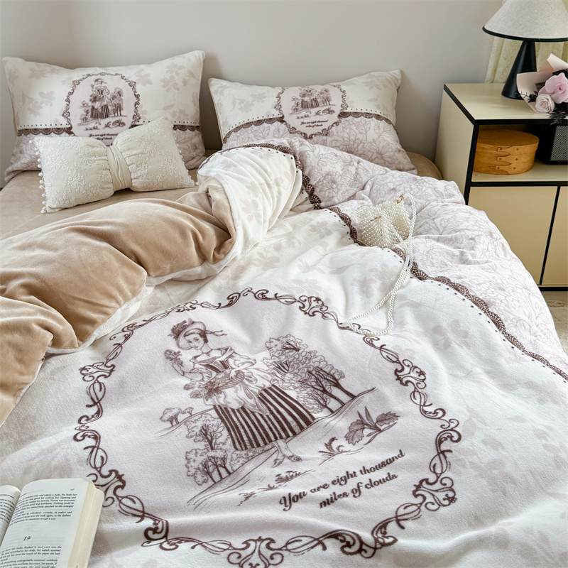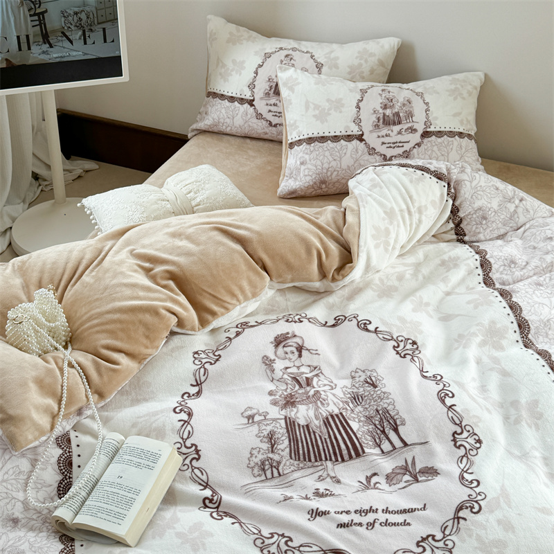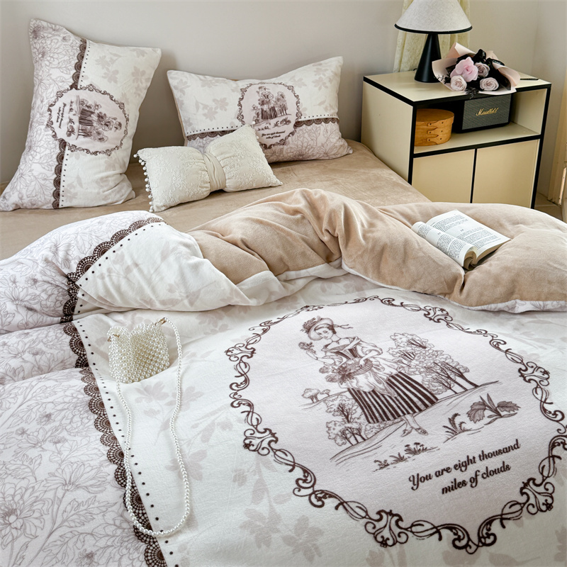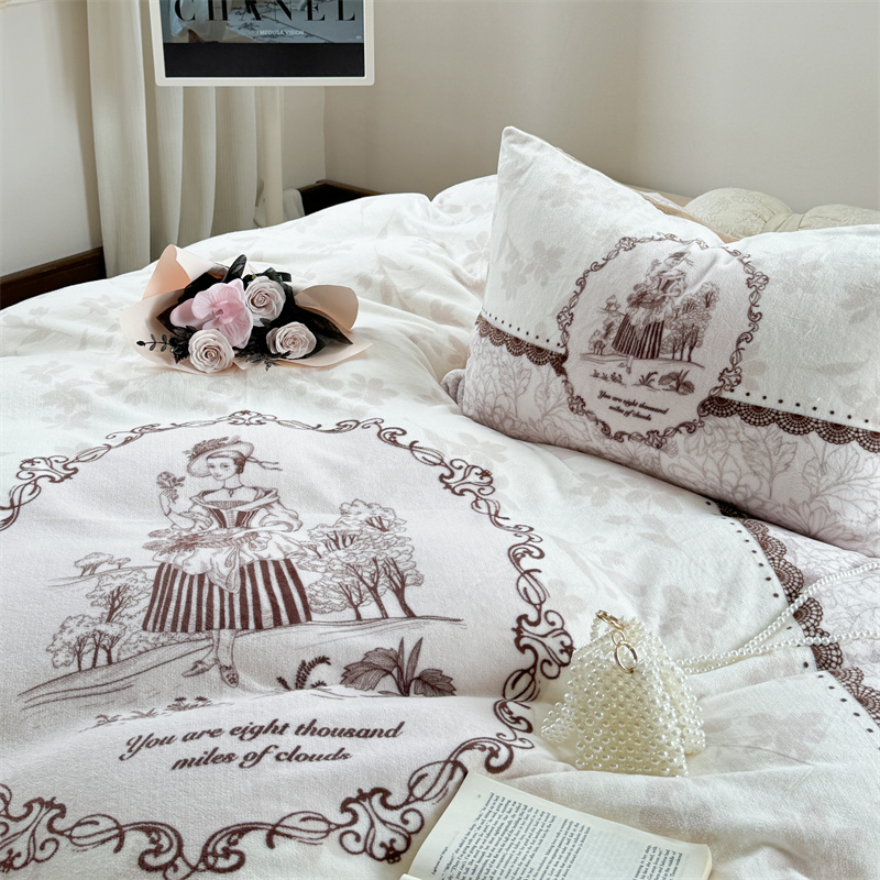 柚子YOUTH 2024新款大版印花牛奶绒四件套 庄园