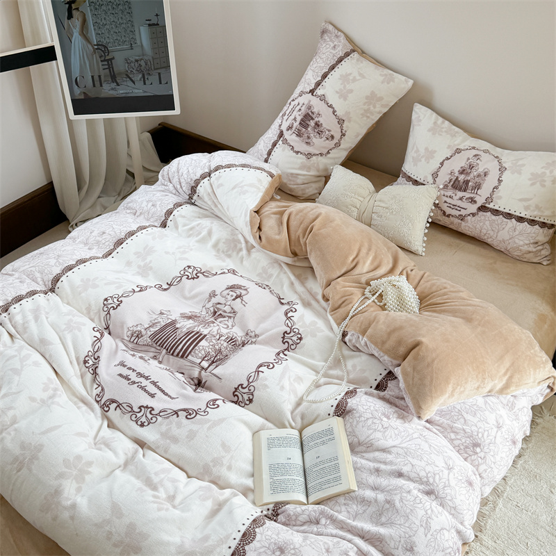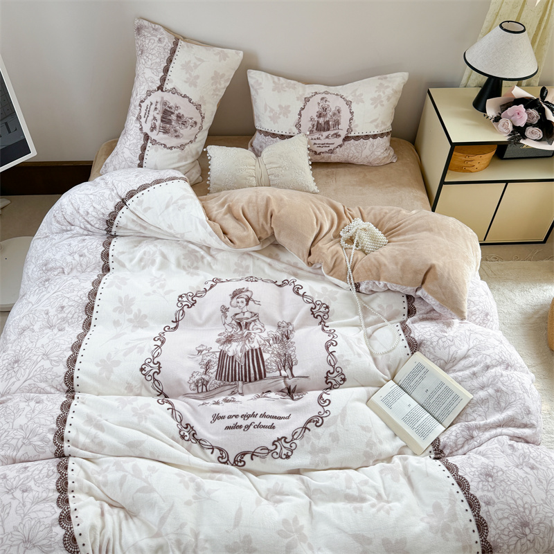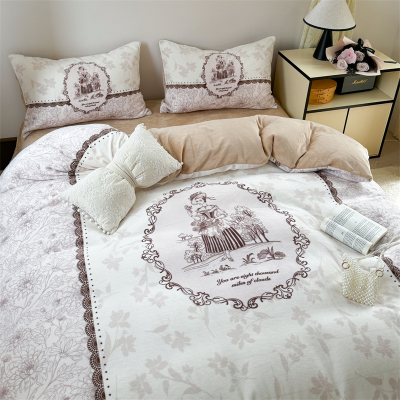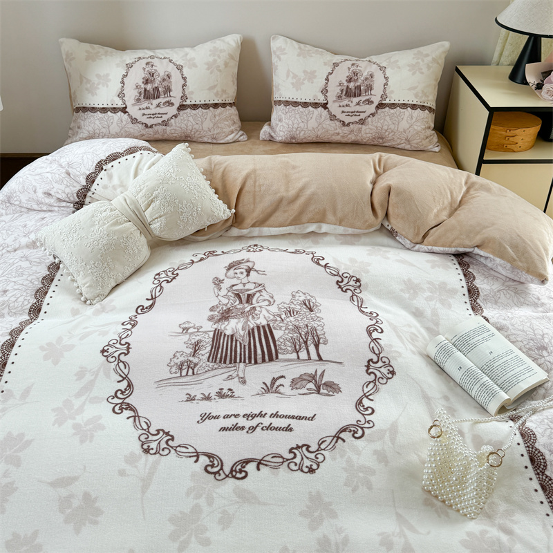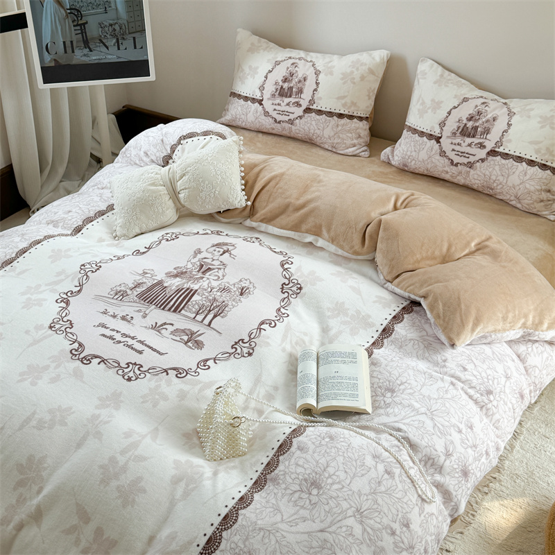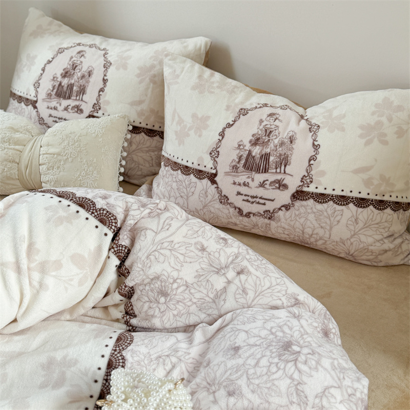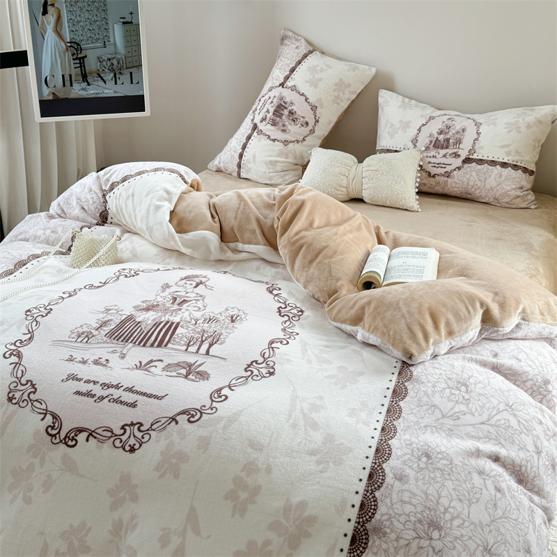 柚子YOUTH 2024新款大版印花牛奶绒四件套 庄园