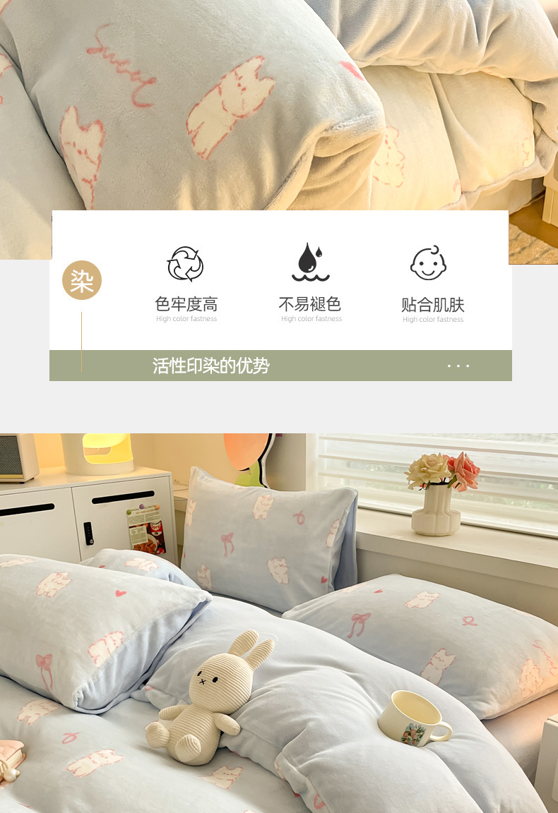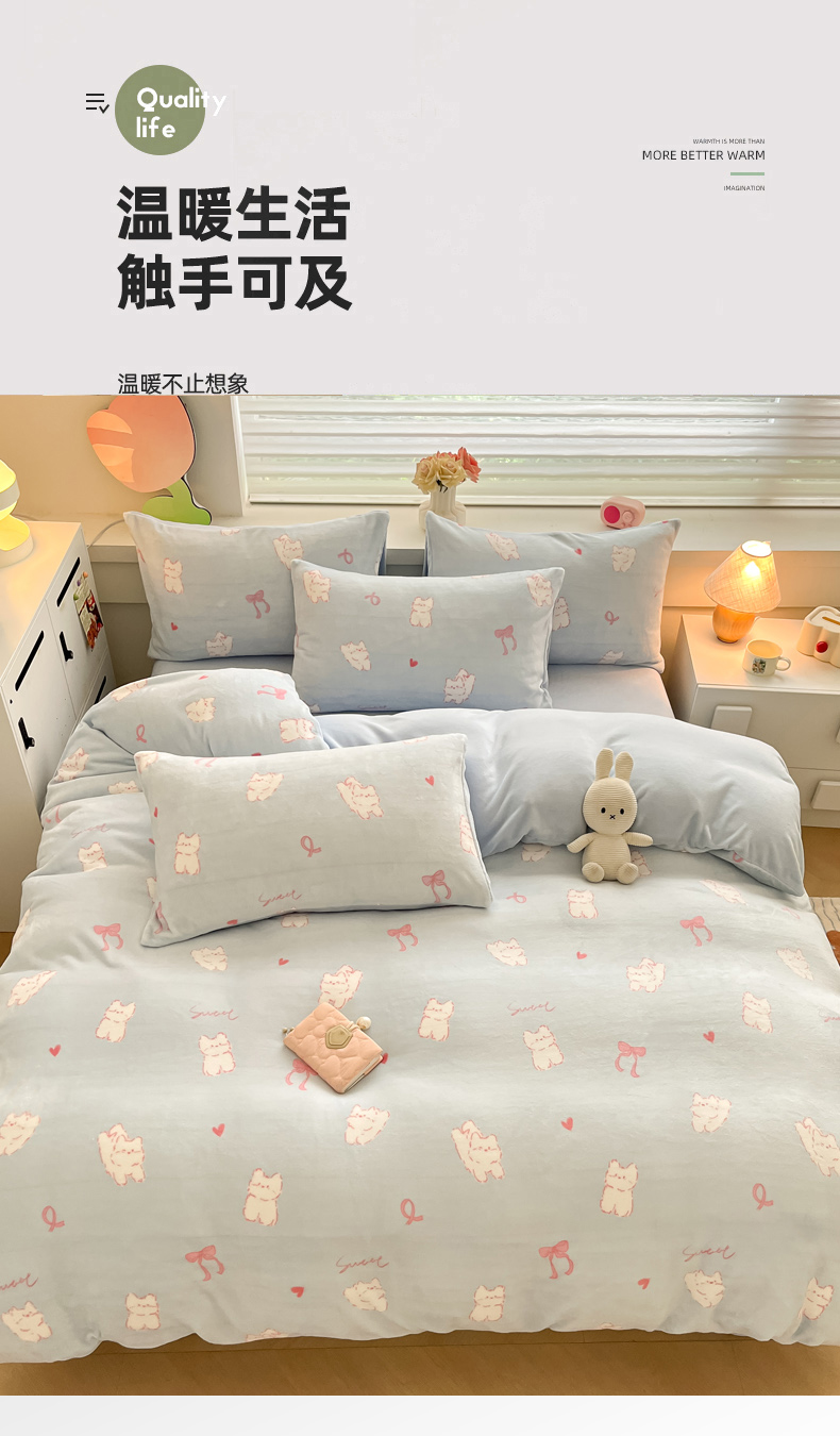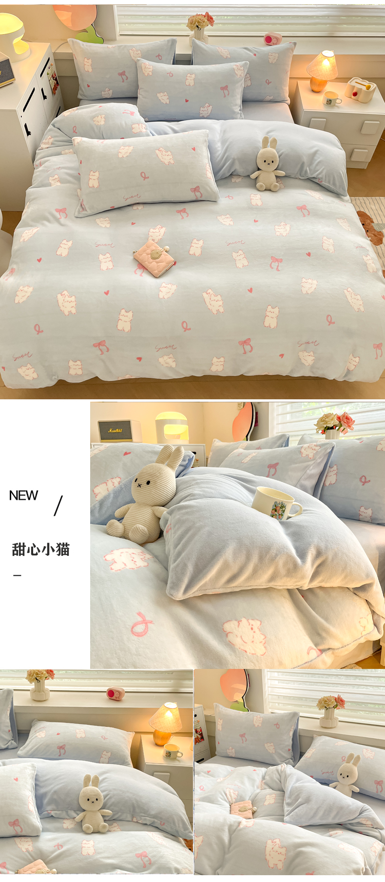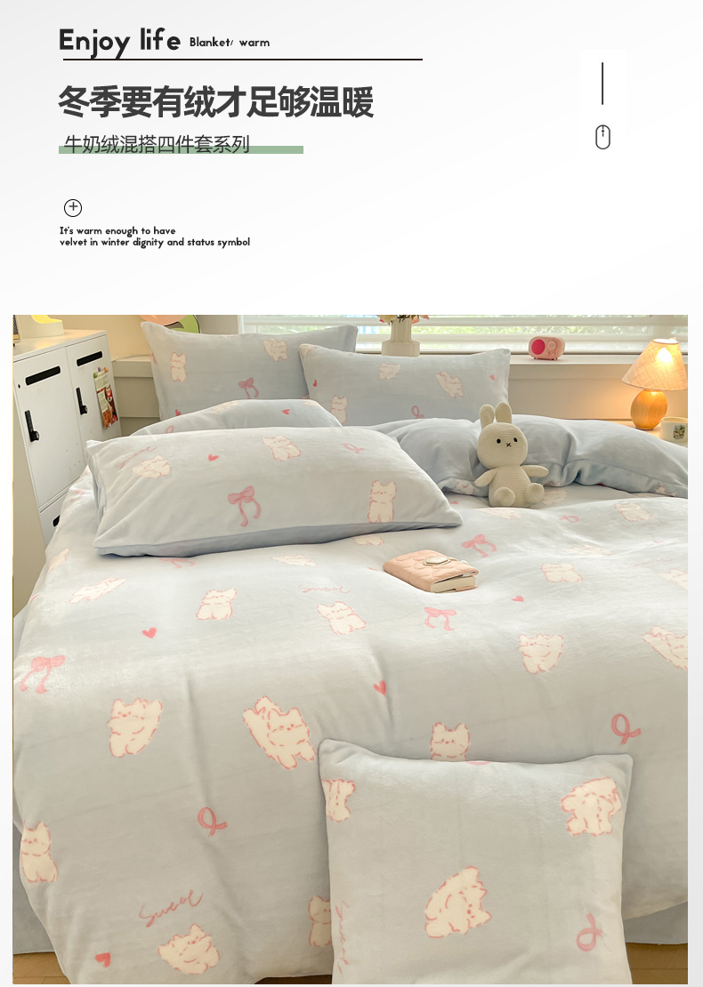 当前位置: 91家纺网 > 商品网购 > 床品套件 > 四件套 > 牛奶绒四件套 > 三朵家纺 2024新款牛奶绒混搭系列四件套 甜心小猫