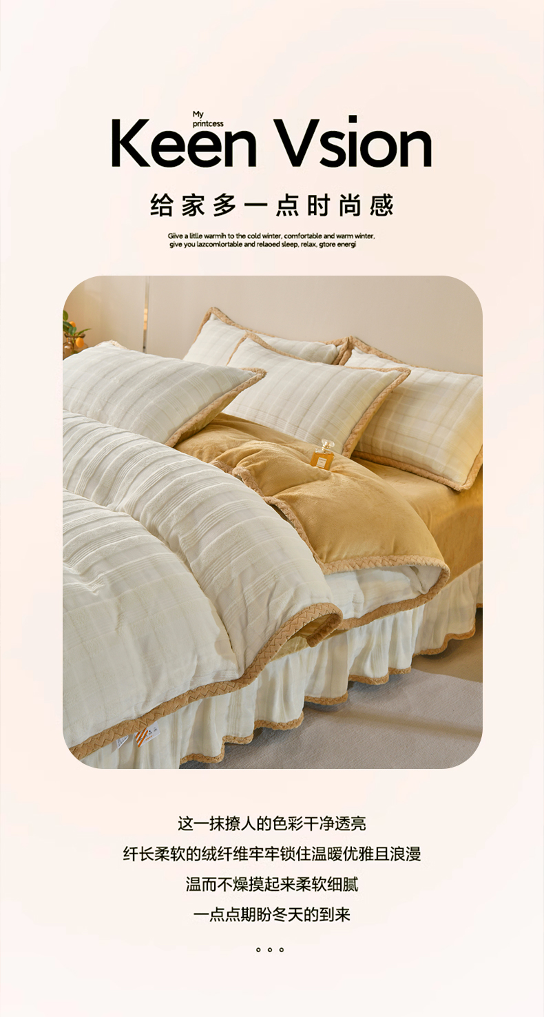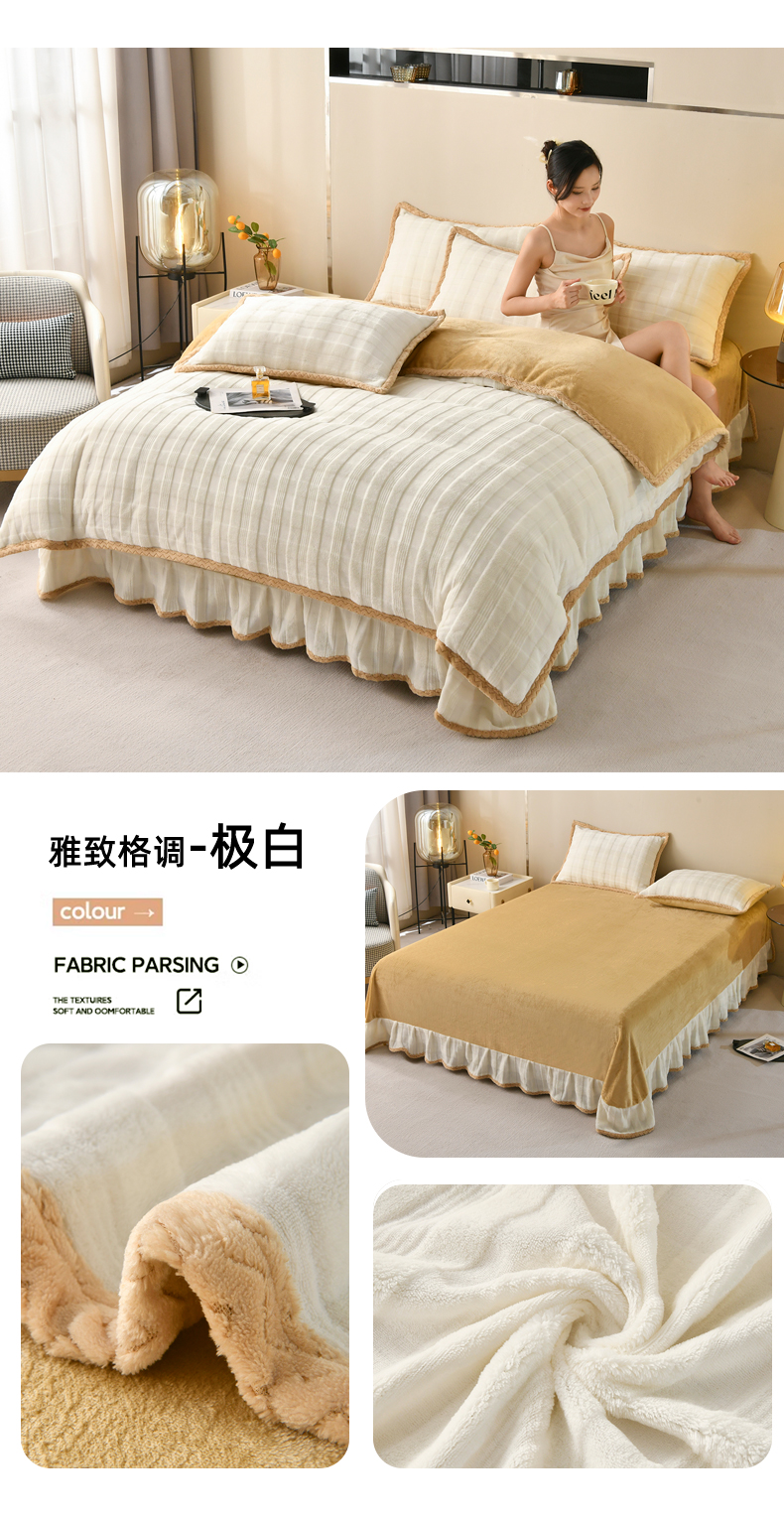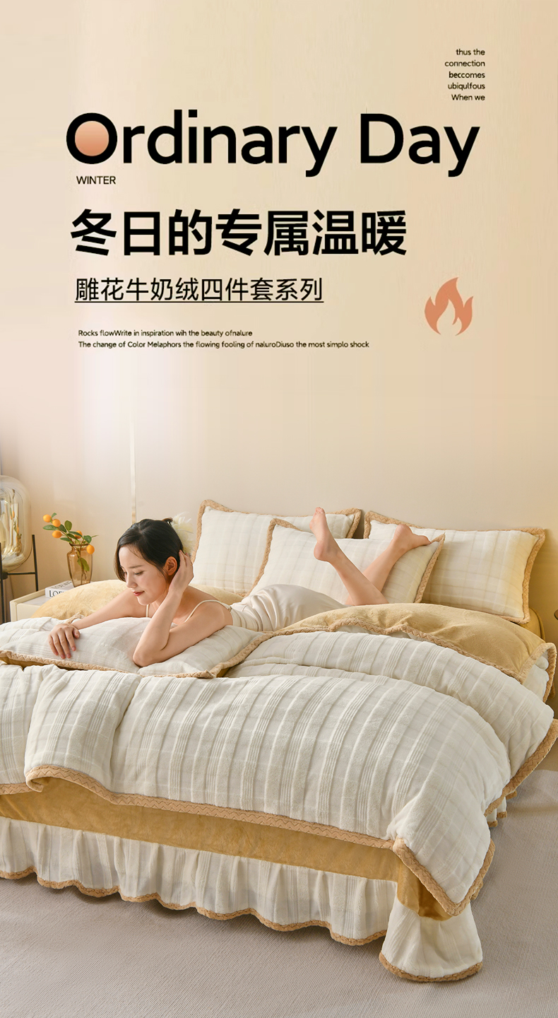满羽 2024新款雕花牛奶绒四件套 雅致格调-极白