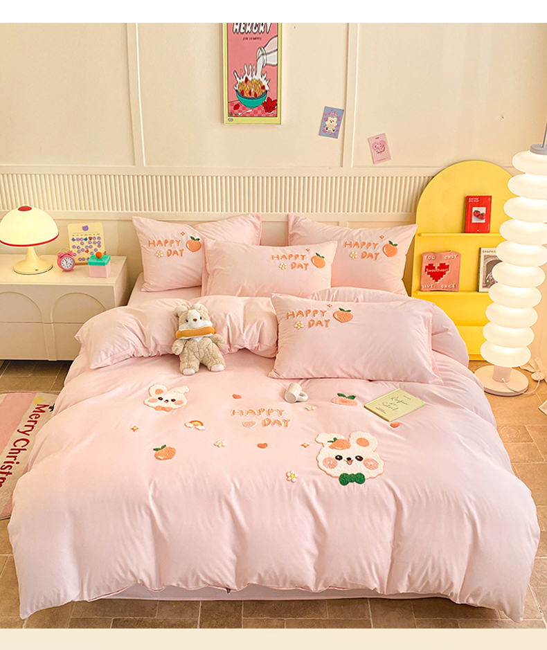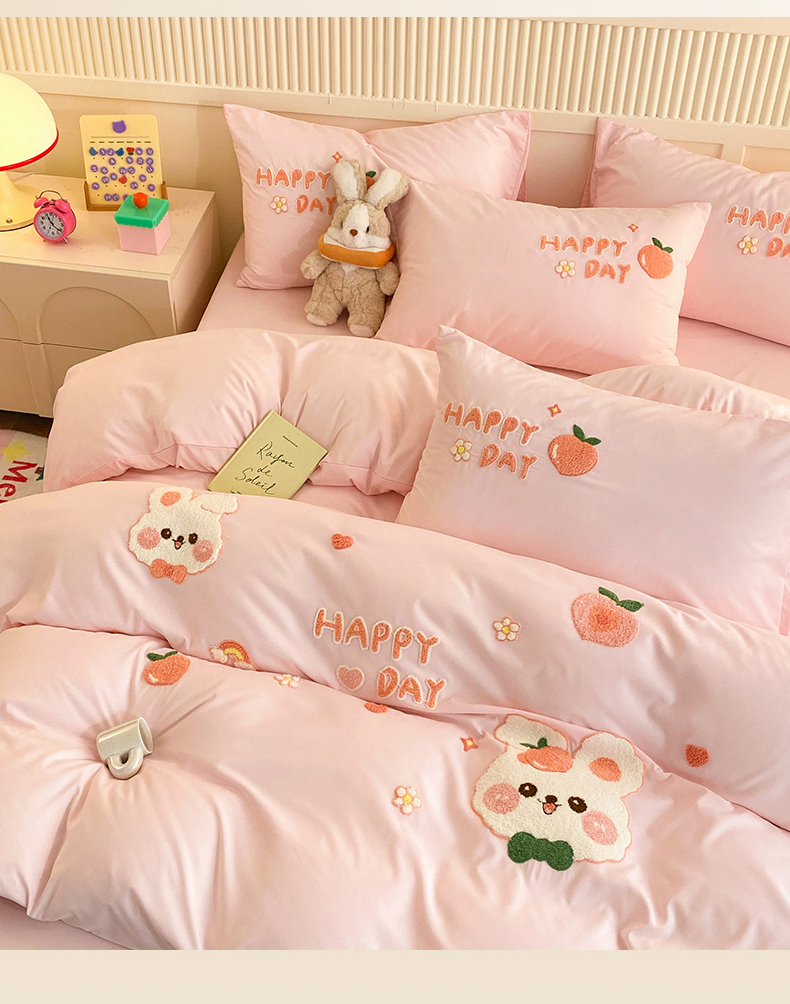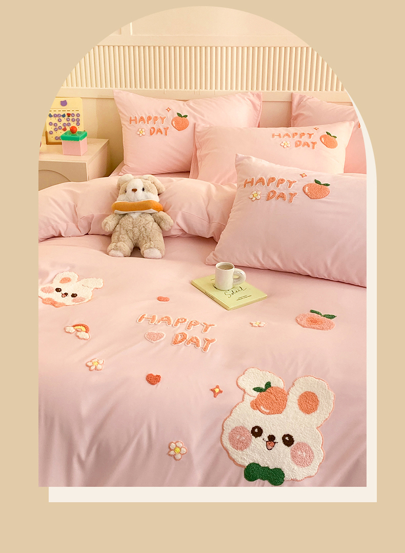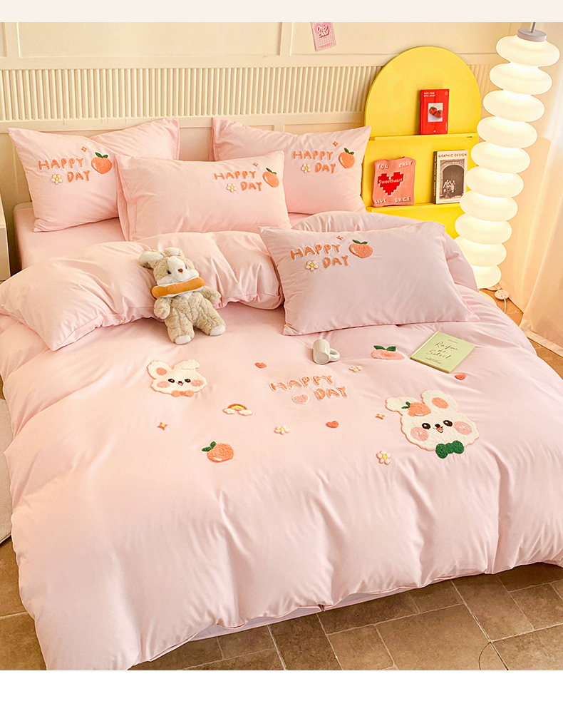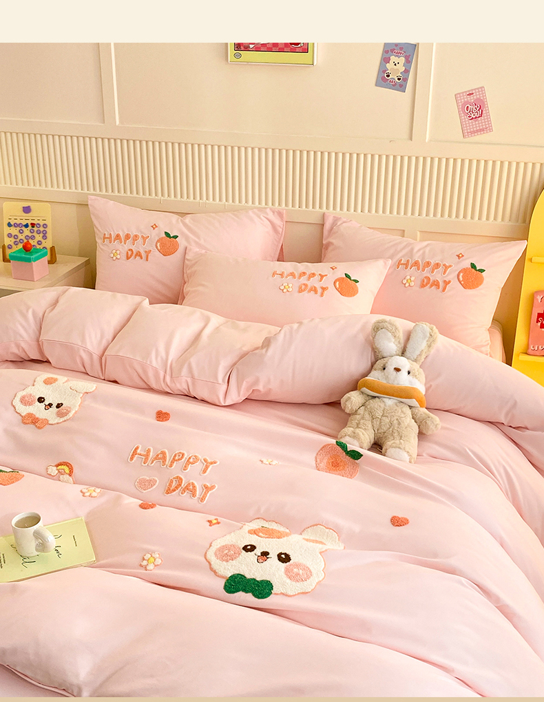 当前位置: 91家纺网 > 商品网购 > 床品套件 > 四件套 > 水洗棉四件套 > 一左一右 2024新款亲肤磨毛水洗棉立体毛巾绣花卡通四件套儿童学生三件套床笠(提供买家秀) 快乐兔兔-粉玉