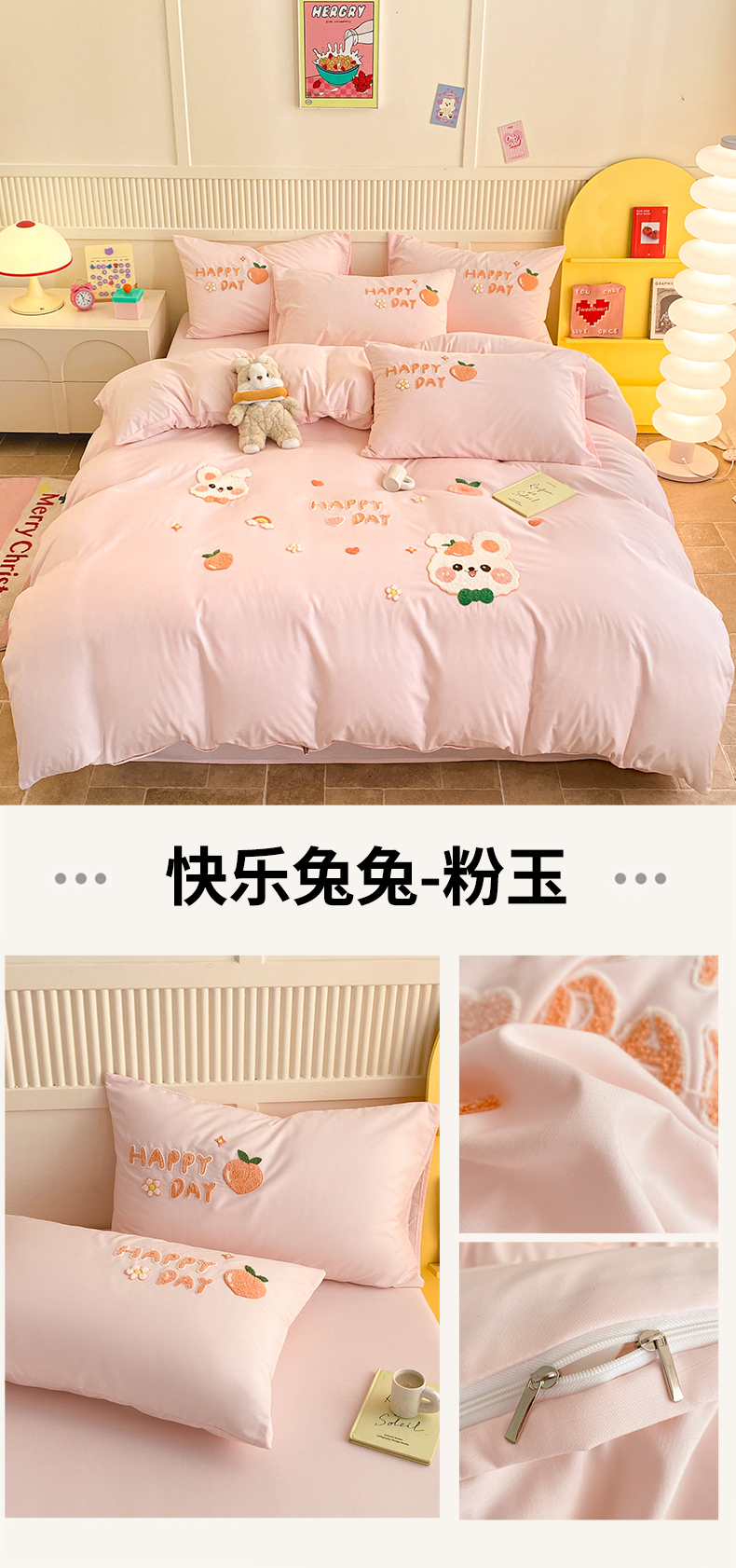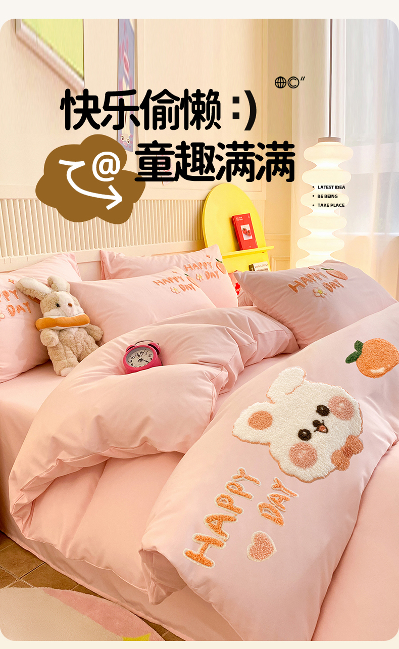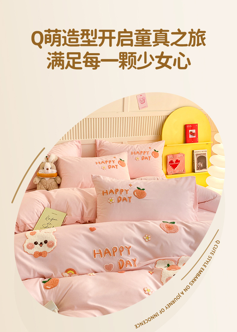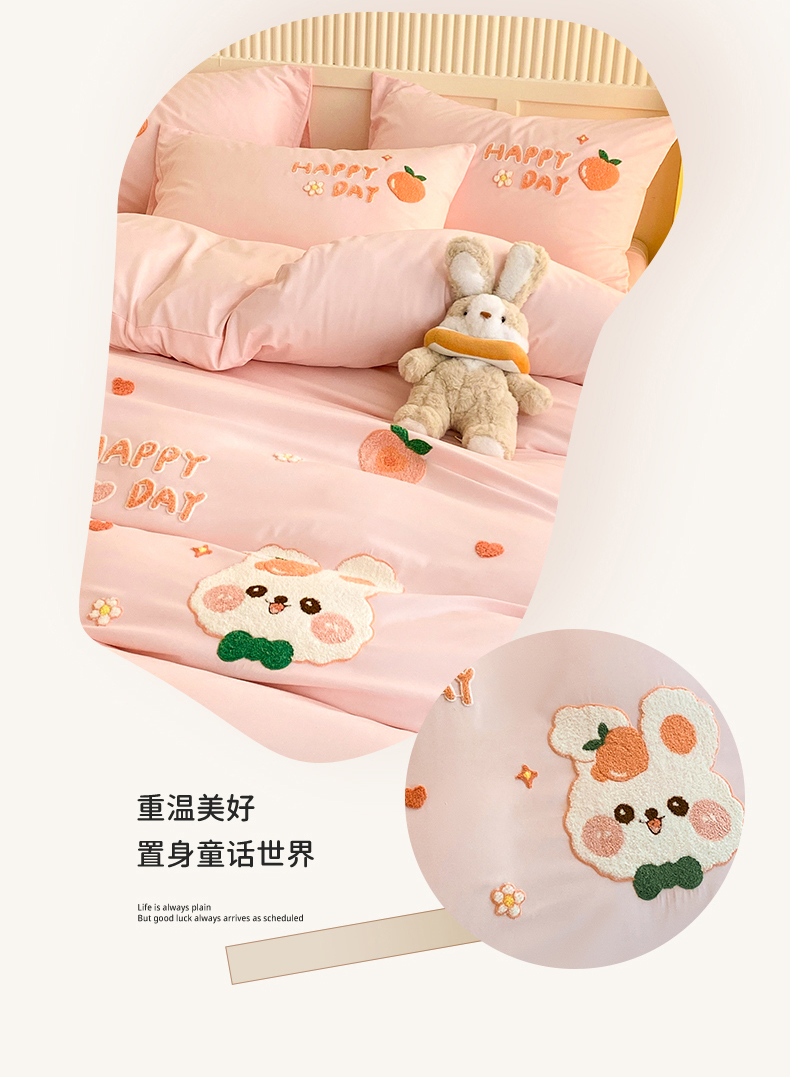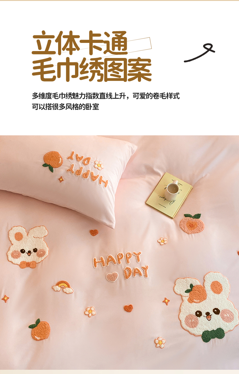 当前位置: 91家纺网 > 商品网购 > 床品套件 > 四件套 > 水洗棉四件套 > 一左一右 2024新款亲肤磨毛水洗棉立体毛巾绣花卡通四件套儿童学生三件套床笠(提供买家秀) 快乐兔兔-粉玉