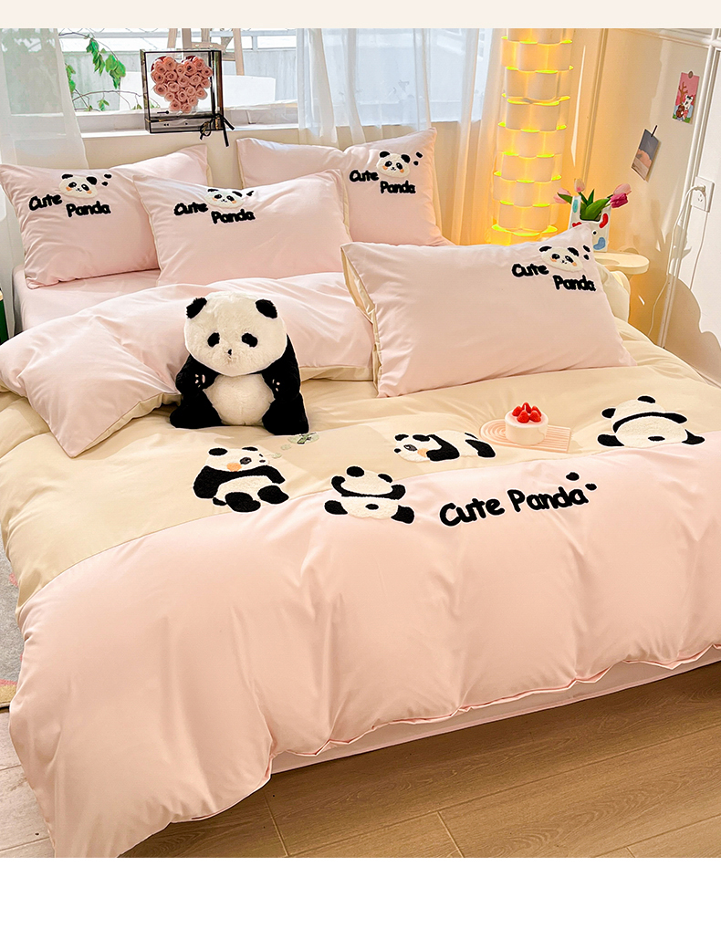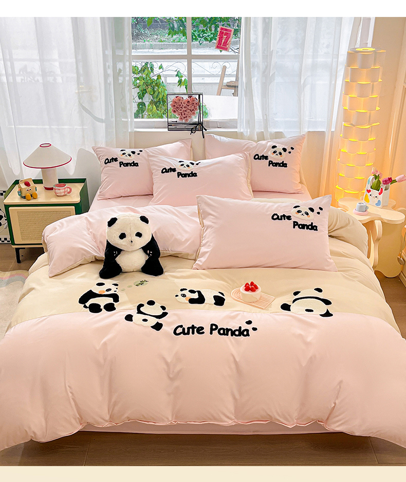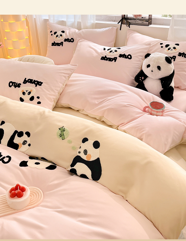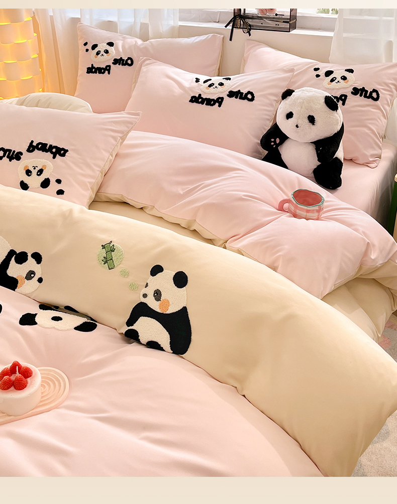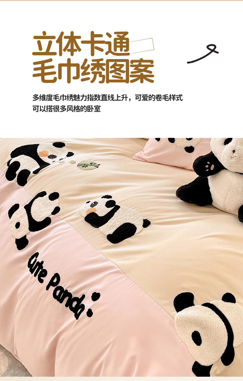 当前位置: 91家纺网 > 商品网购 > 床品套件 > 四件套 > 水洗棉四件套 > 一左一右 2024新款亲肤磨毛水洗棉拼接立体毛巾绣花卡通四件套儿童学生三件套床笠(提供买家秀) 熊猫派对-粉玉