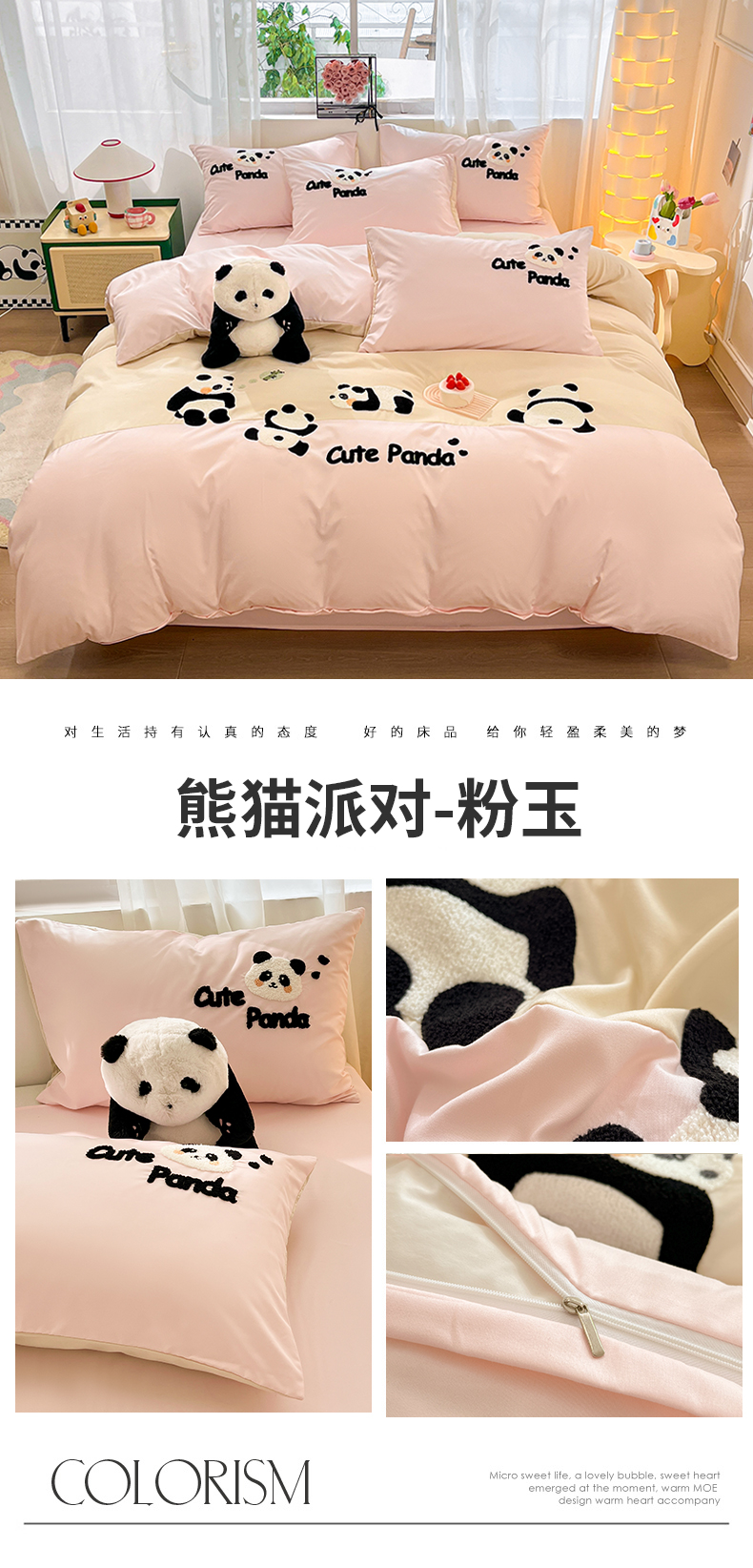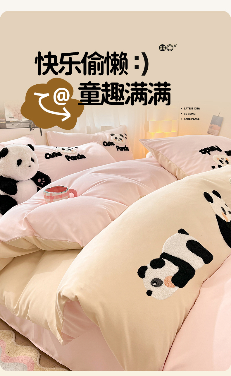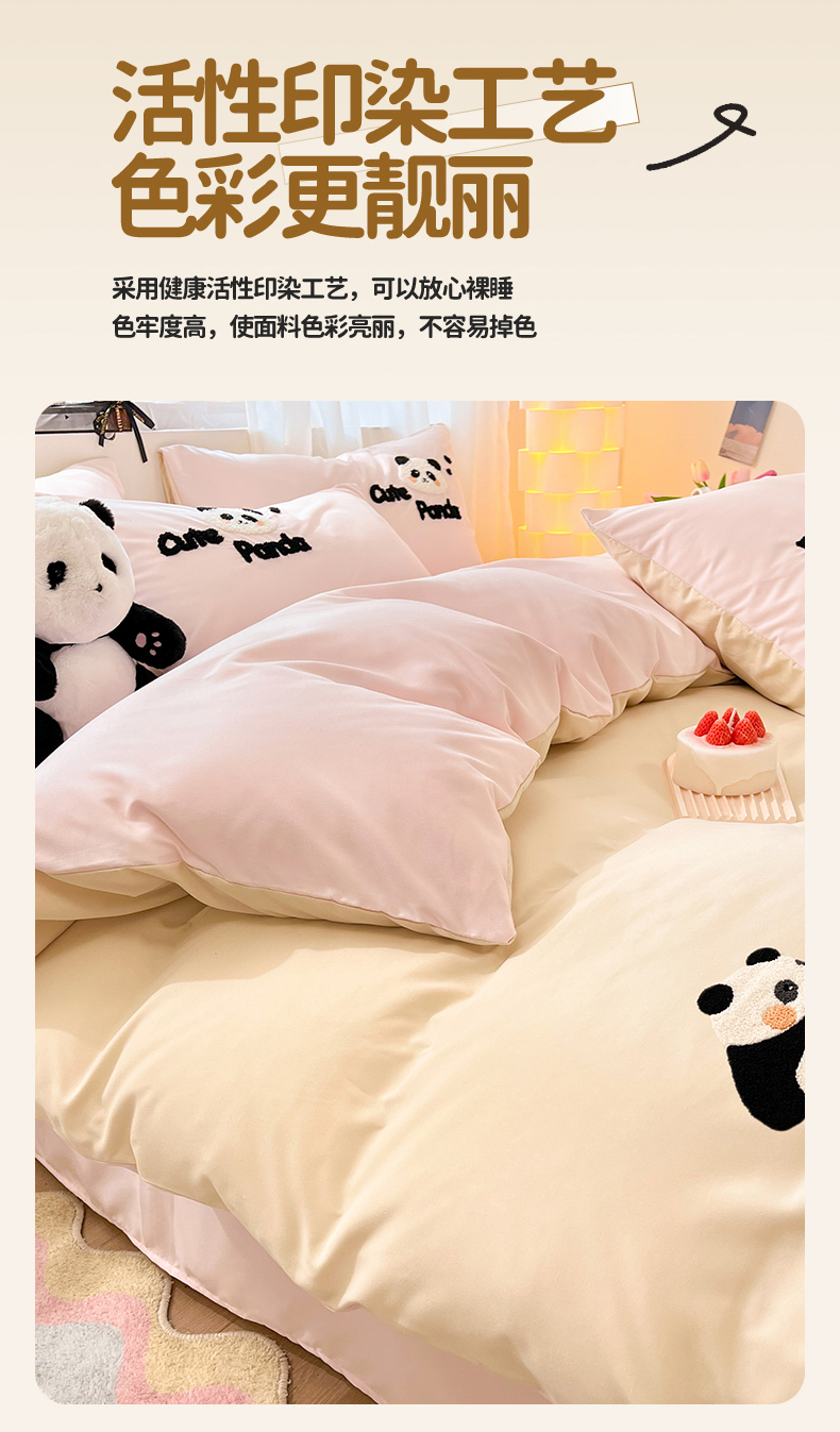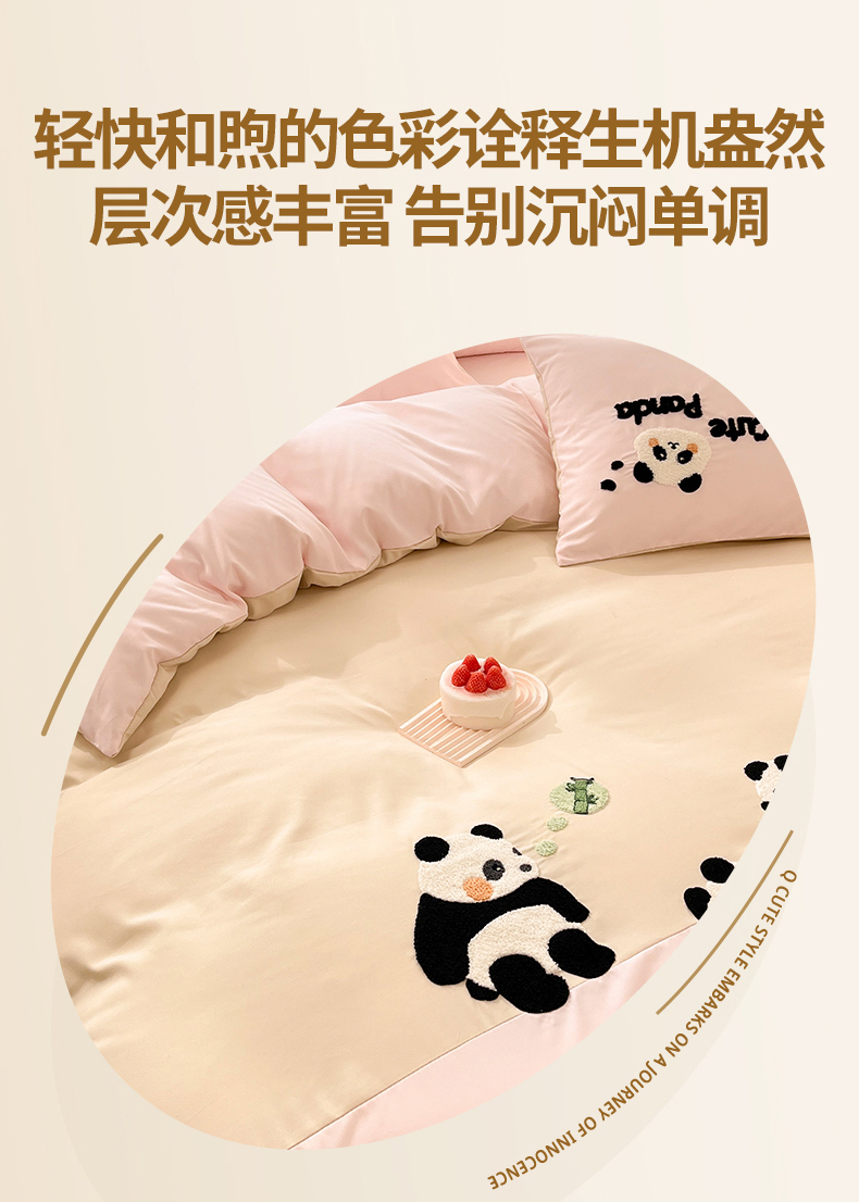 当前位置: 91家纺网 > 商品网购 > 床品套件 > 四件套 > 水洗棉四件套 > 一左一右 2024新款亲肤磨毛水洗棉拼接立体毛巾绣花卡通四件套儿童学生三件套床笠(提供买家秀) 熊猫派对-粉玉