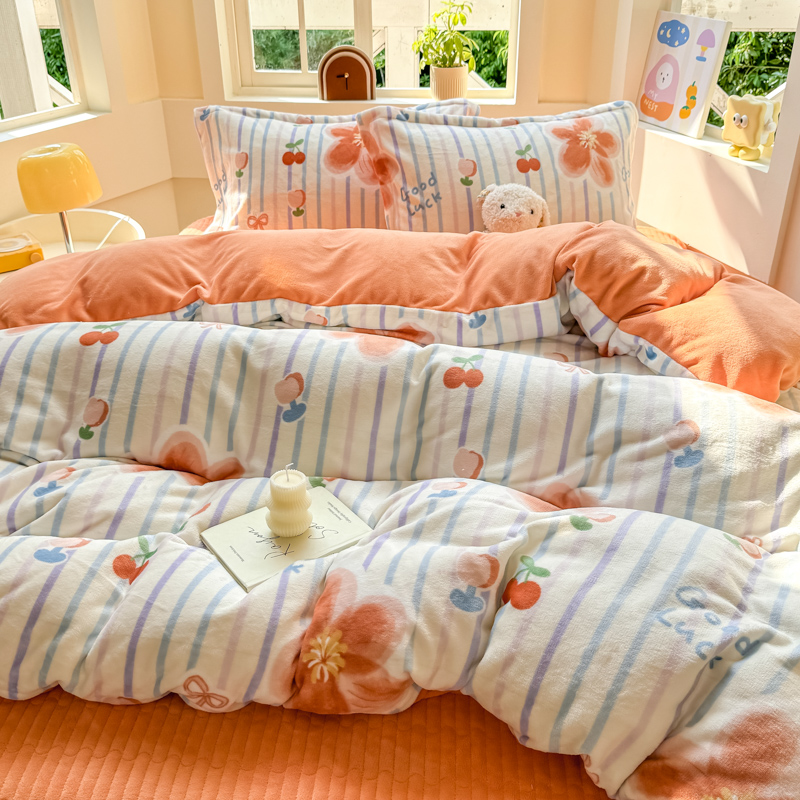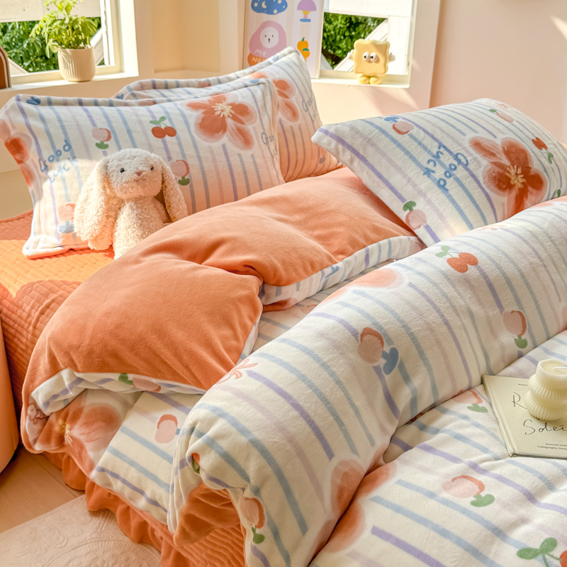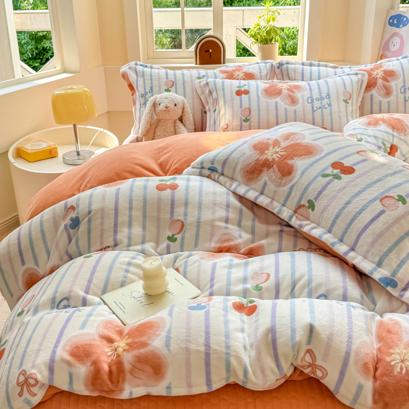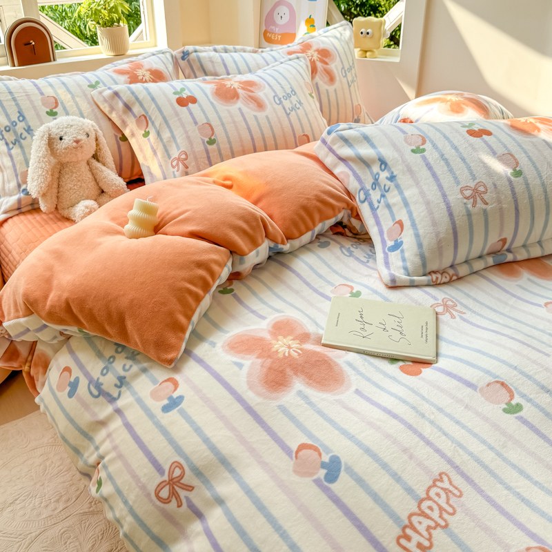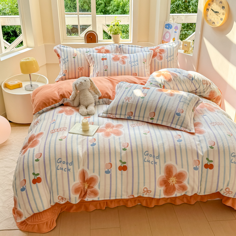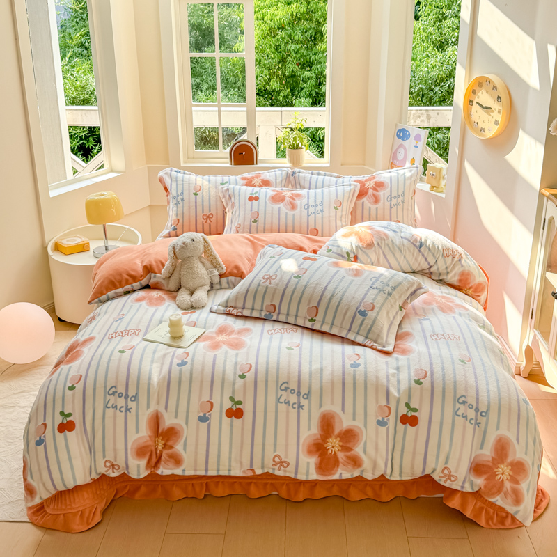 梦可莱家居 2024秋冬牛奶绒韩系ins印花床盖四件套 梦话