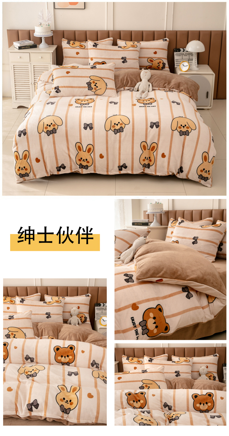 当前位置: 91家纺网 > 商品网购 > 床品套件 > 四件套 > 牛奶绒四件套 > 乐居坊 2024新款高克重牛奶绒印花保暖四件套 绅士伙伴