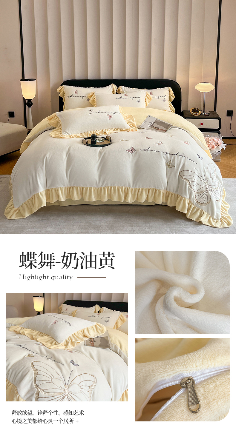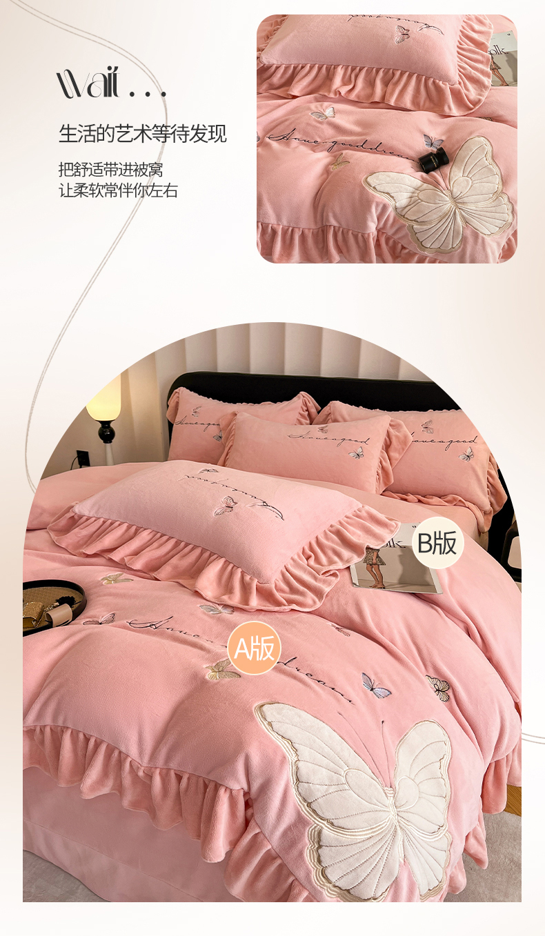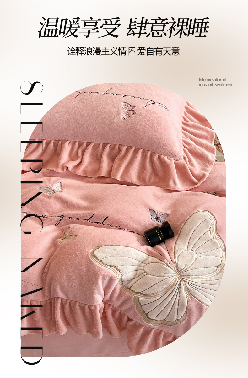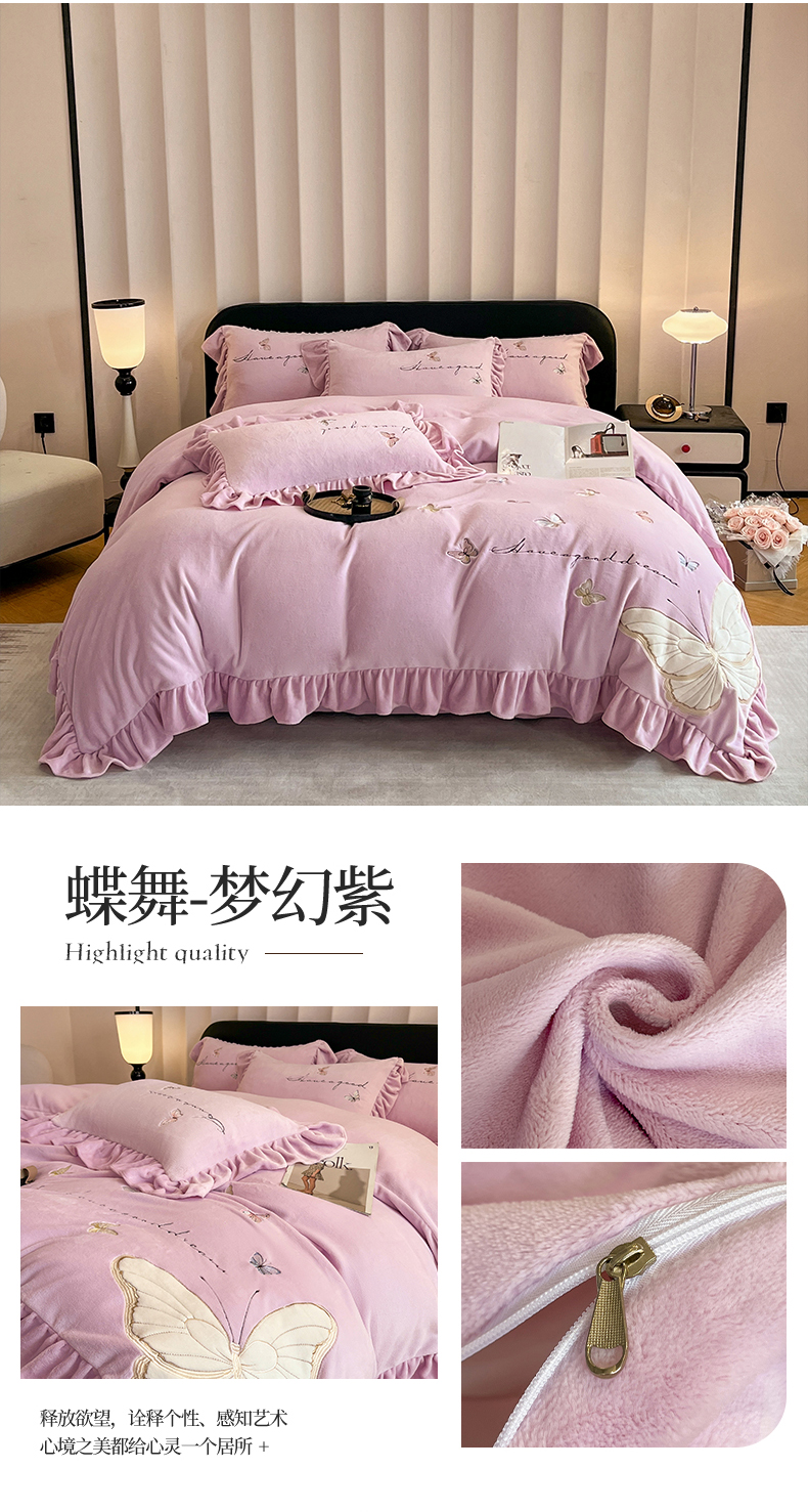 商品名称:(总)爱家(原缔乐家纺) 2024新款牛奶绒贴布绣四件套-蝶舞