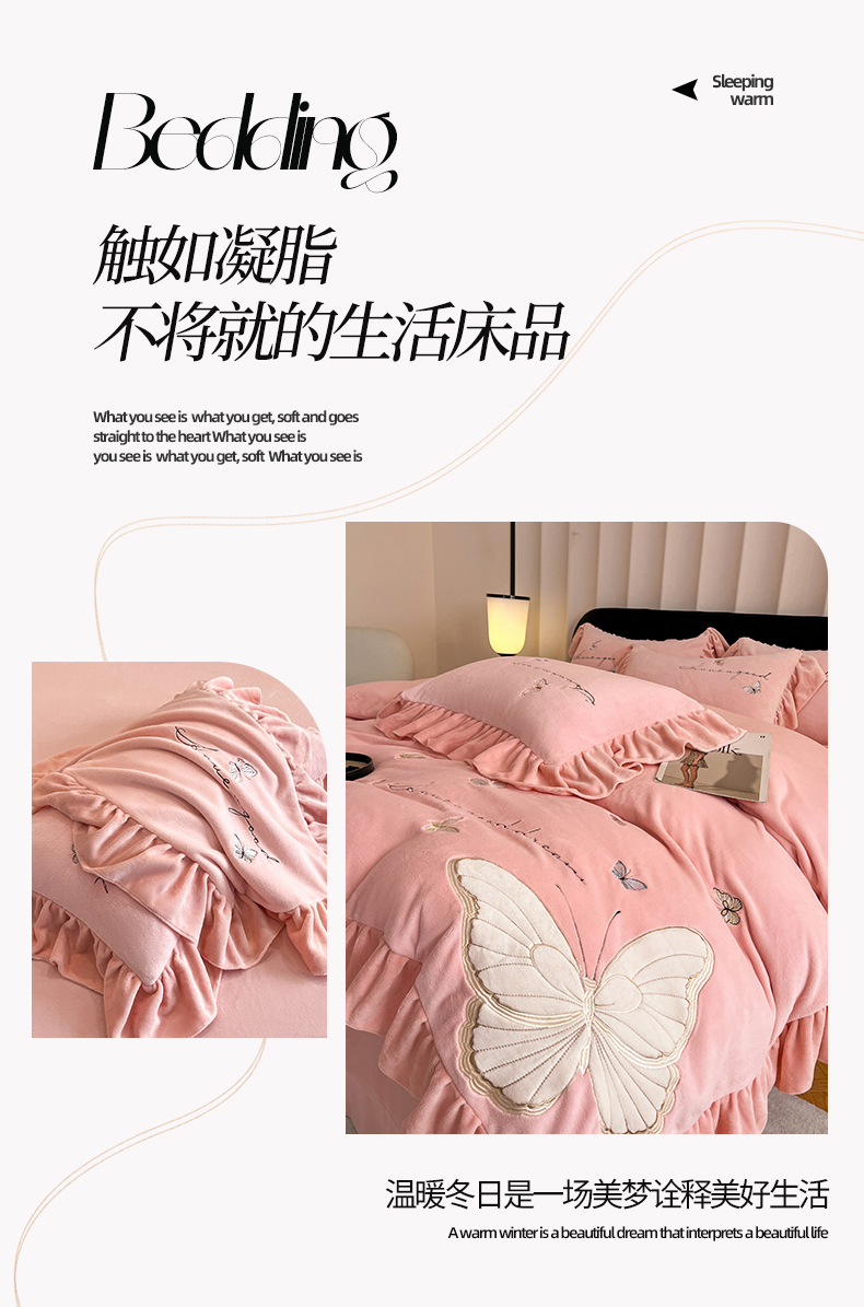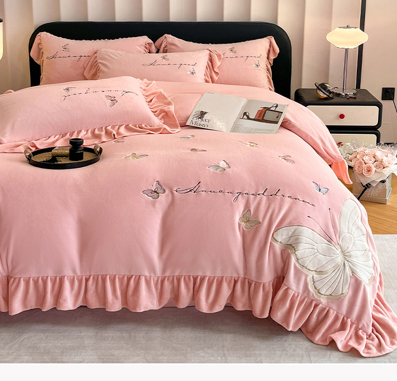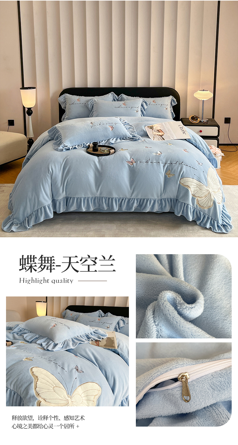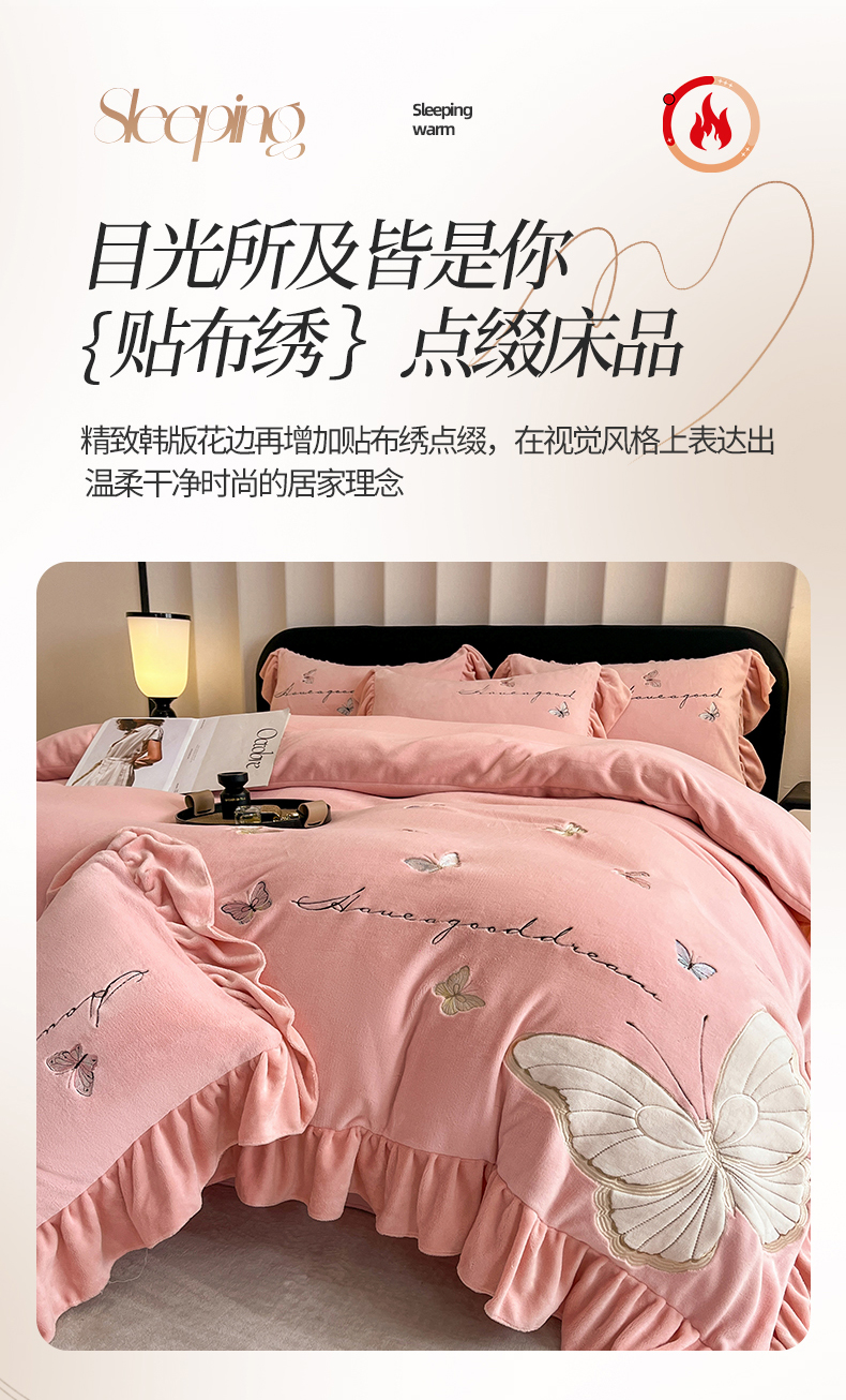商品名称:(总)爱家(原缔乐家纺) 2024新款牛奶绒贴布绣四件套-蝶舞