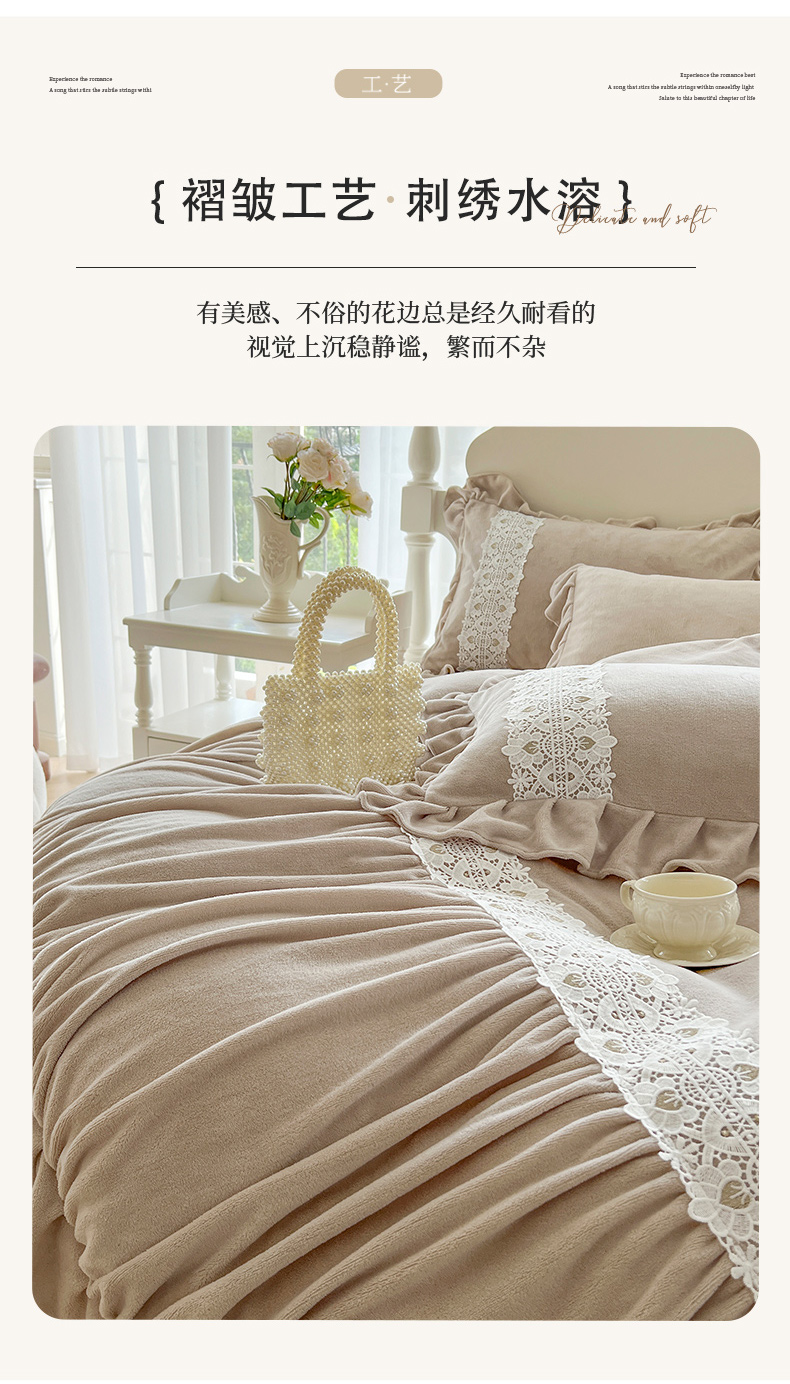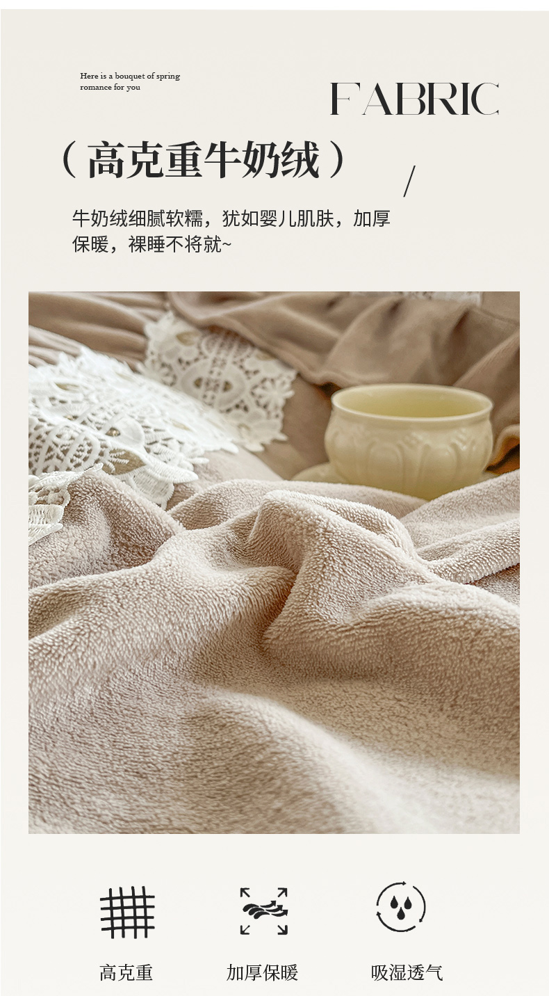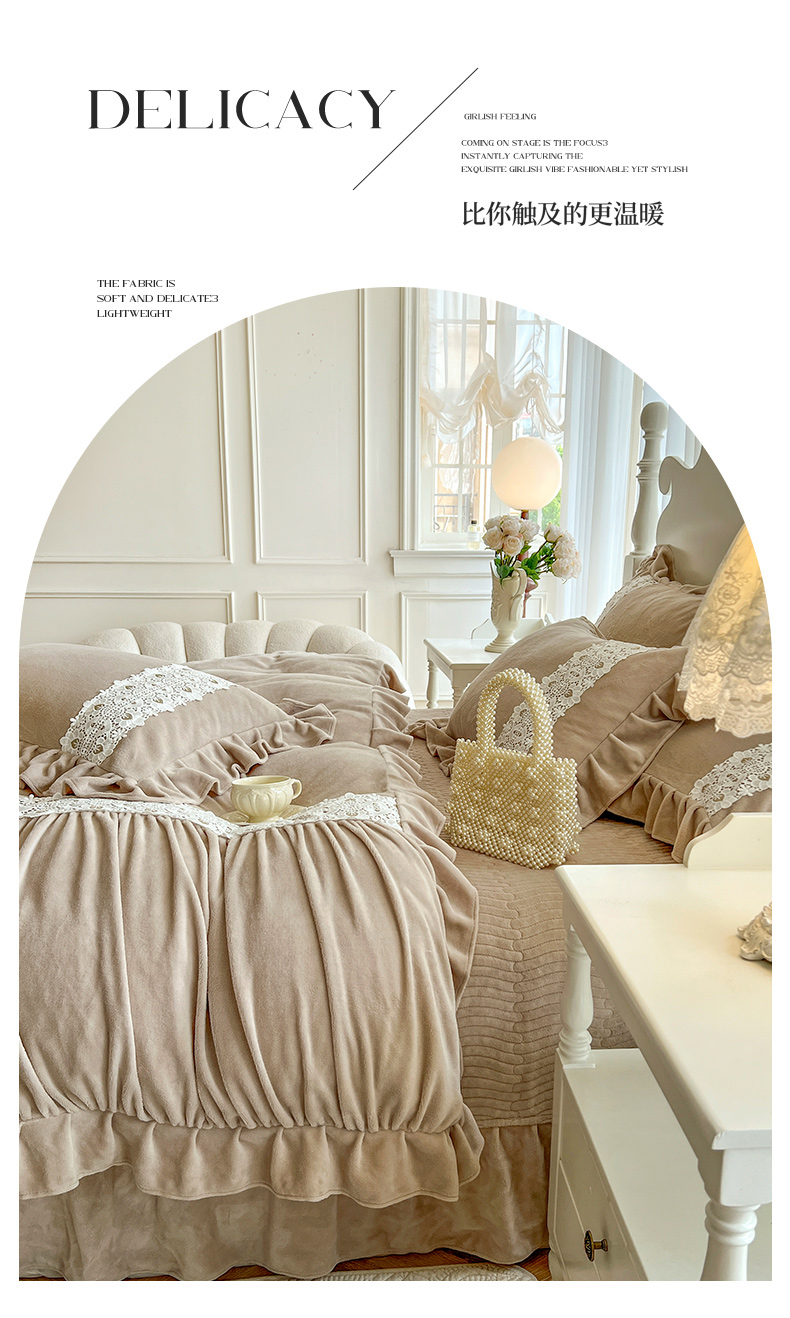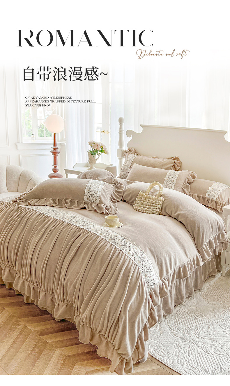 (总)乐朵家居 2025新款 伊莉莎 牛奶绒夹棉床盖四件套,奶白,粉玉
