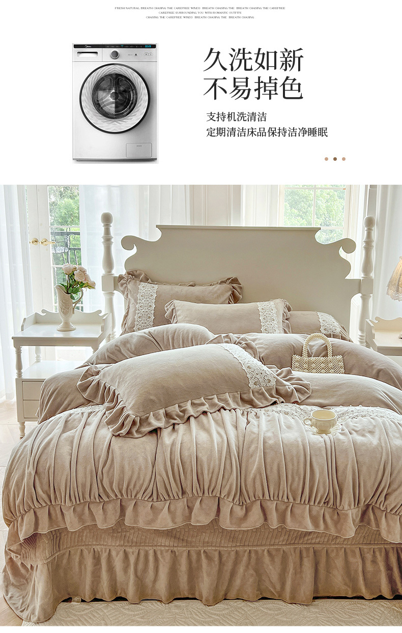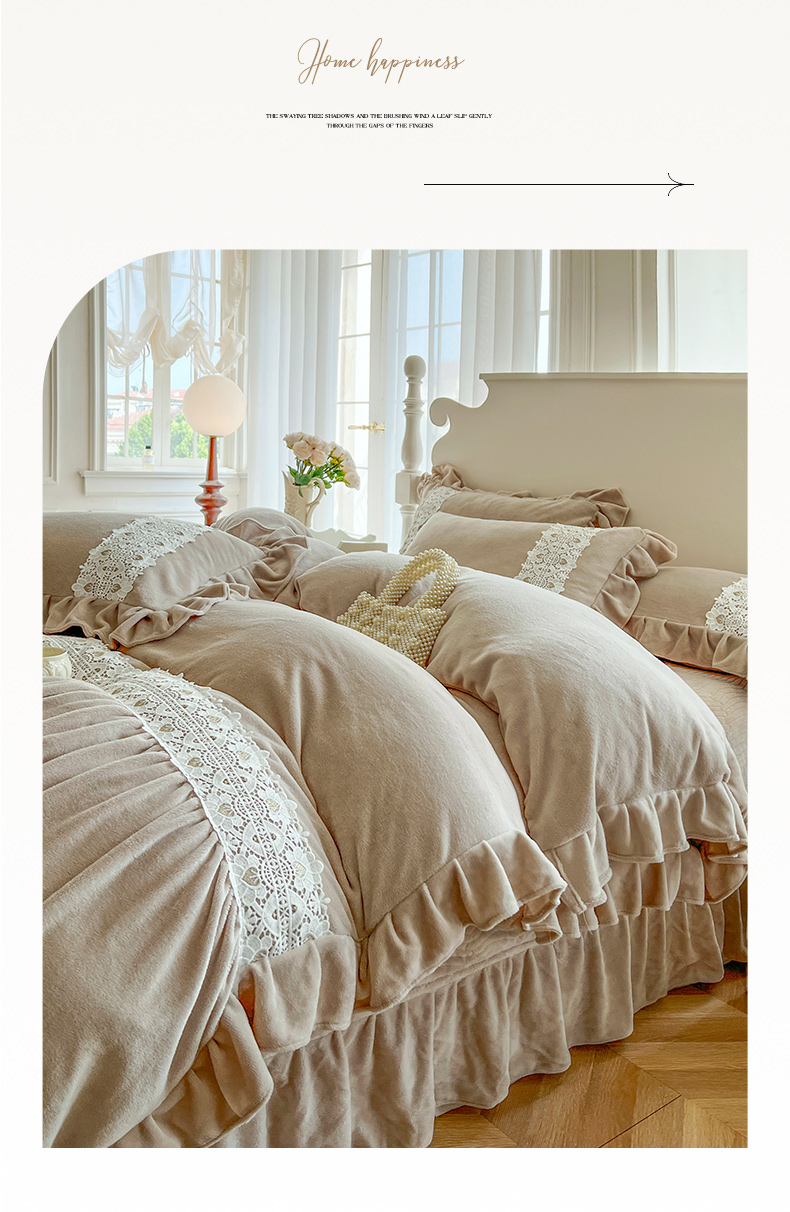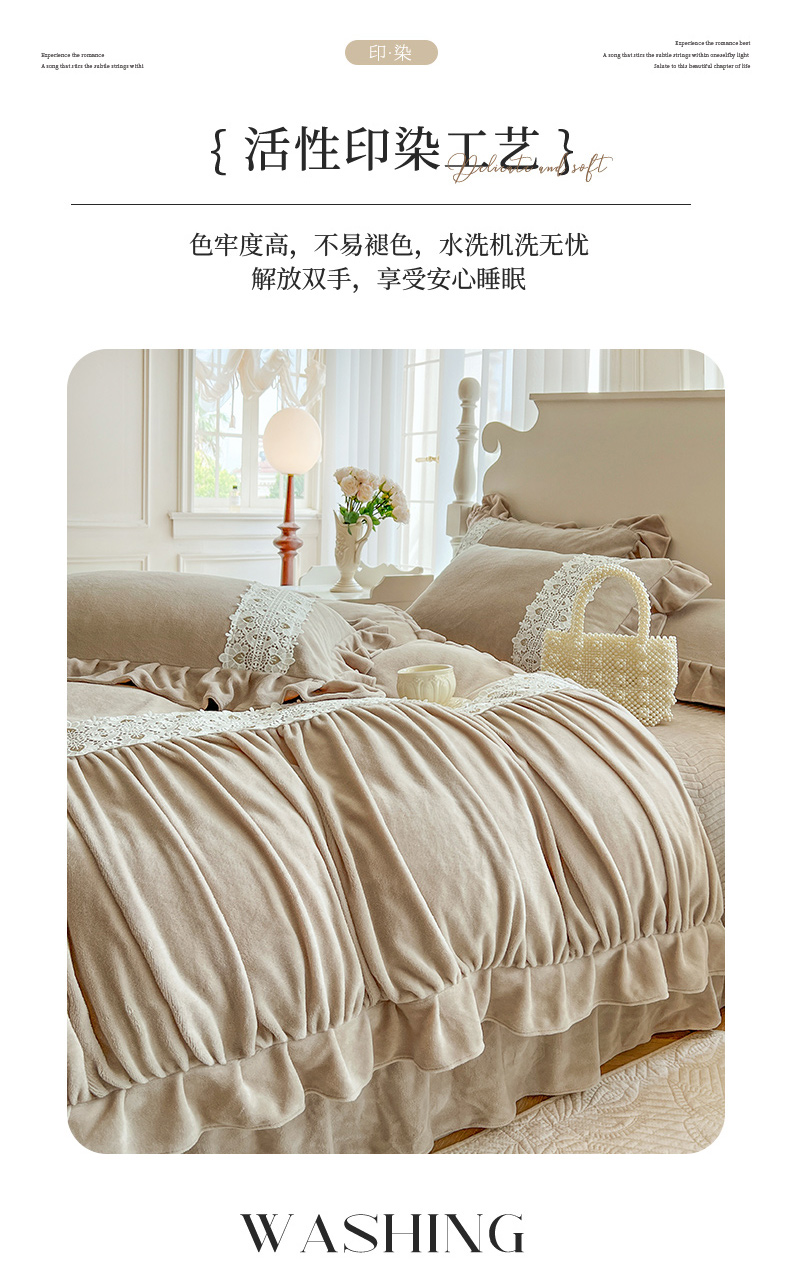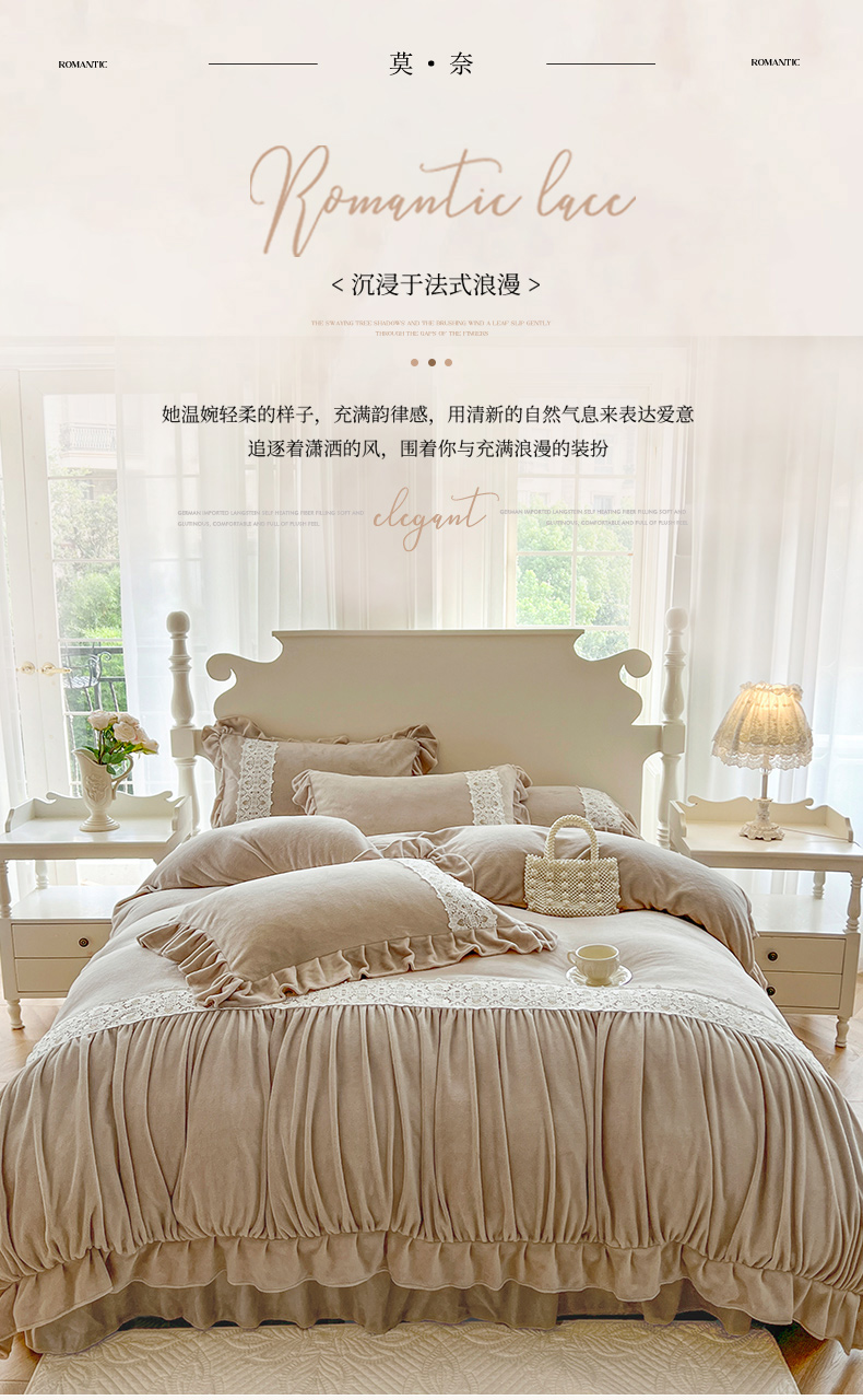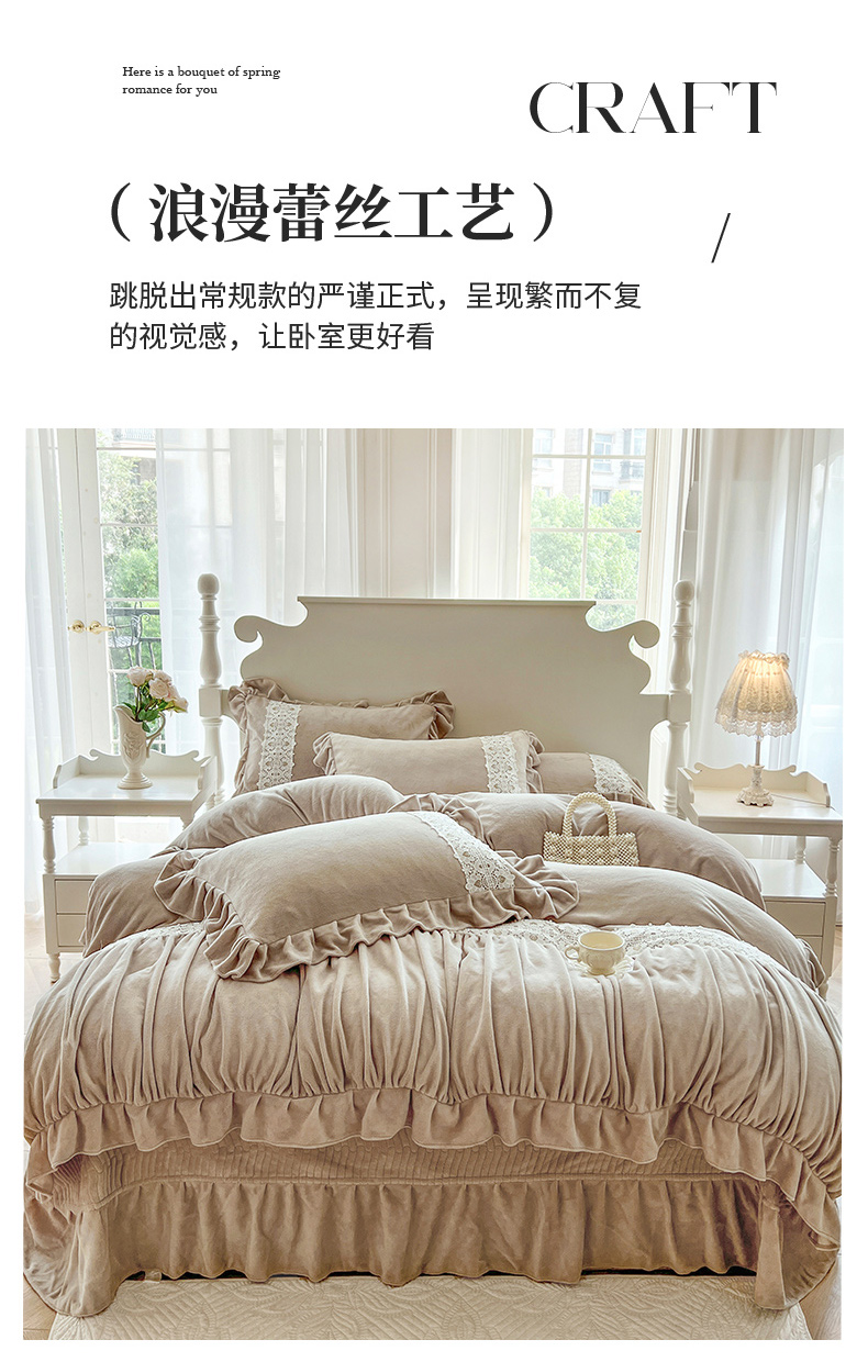 (总)乐朵家居 2025新款 伊莉莎 牛奶绒夹棉床盖四件套,奶白,粉玉