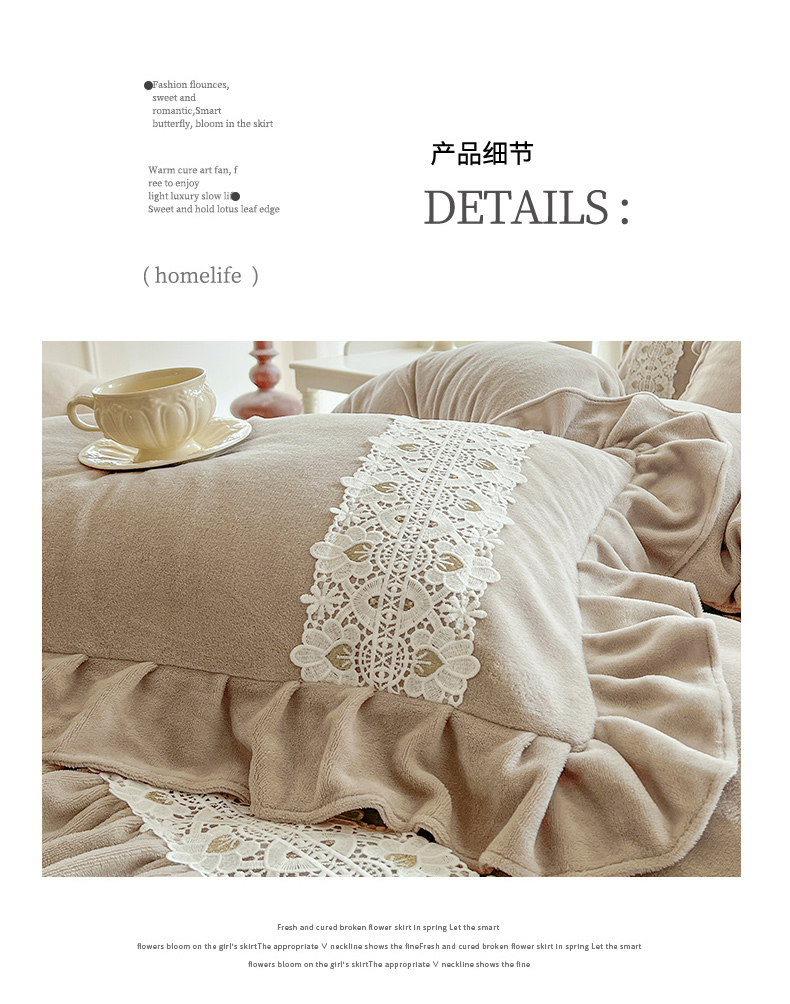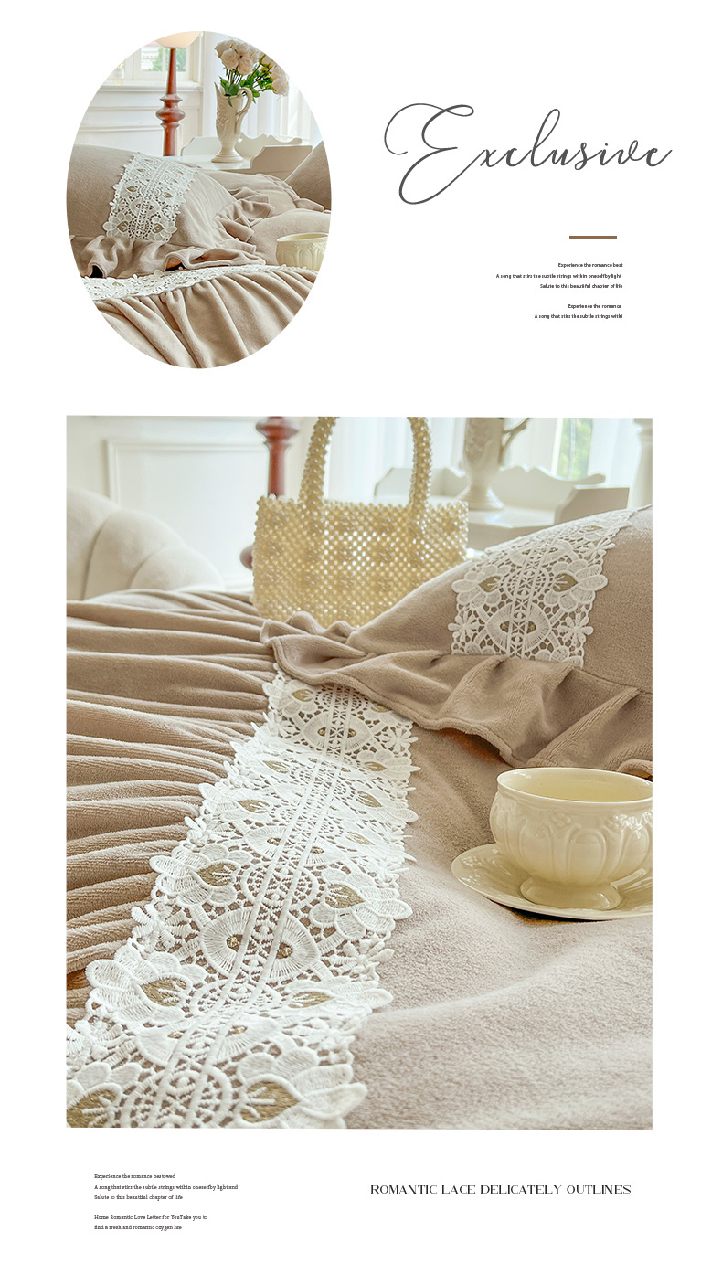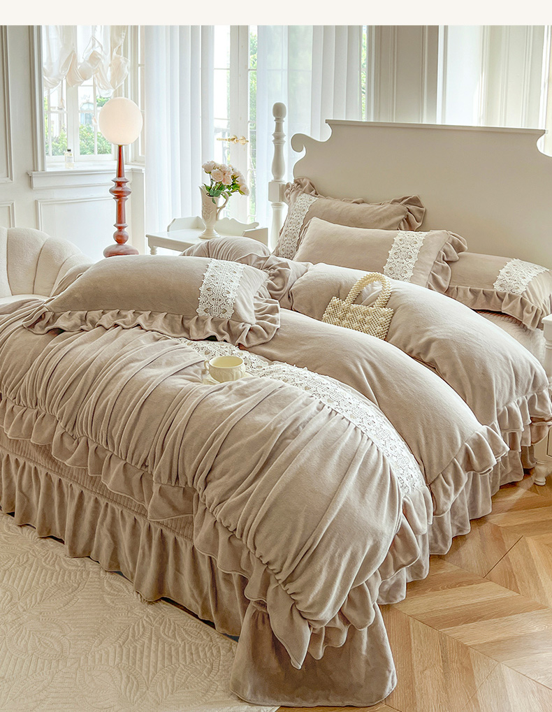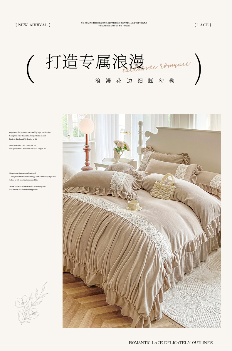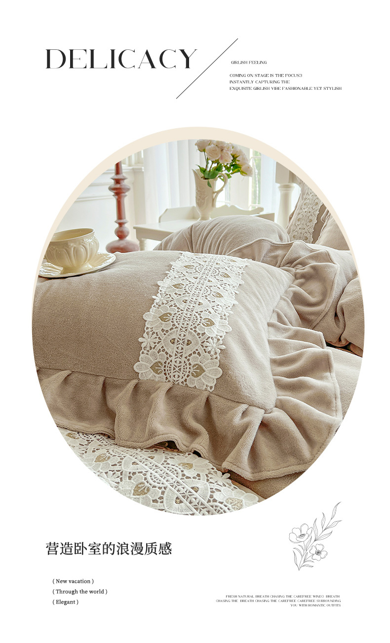 (总)乐朵家居 2025新款 伊莉莎 牛奶绒夹棉床盖四件套,奶白,粉玉